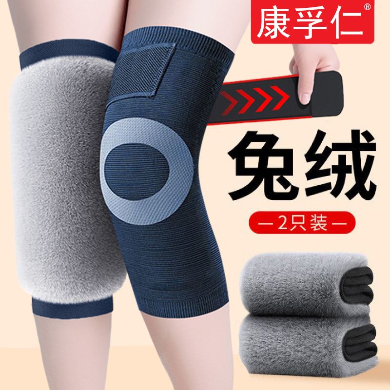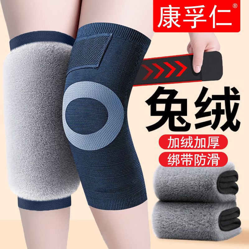 护膝盖保暖兔毛加绒加厚骑车防风男女同款老寒腿防寒保护关节老人