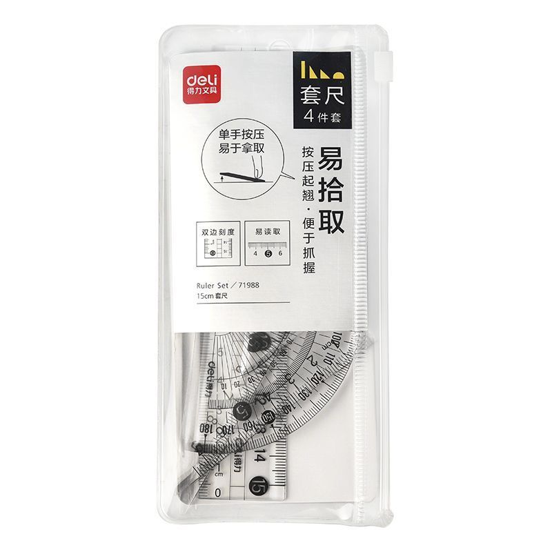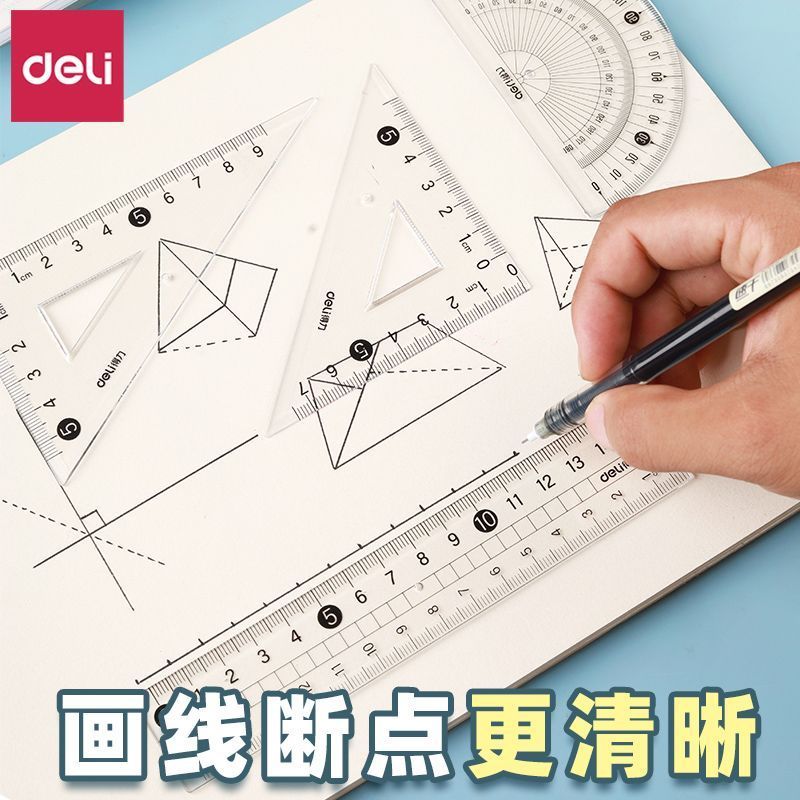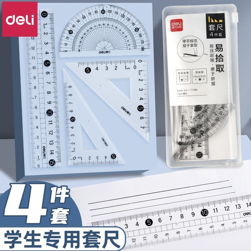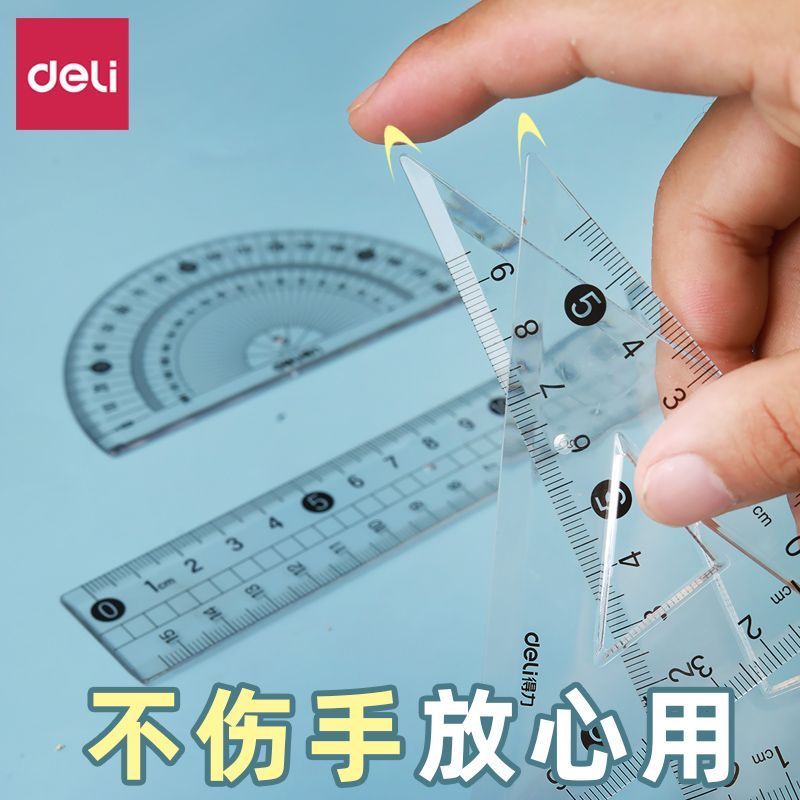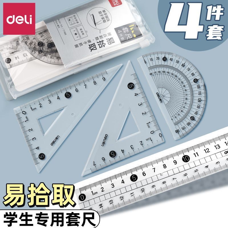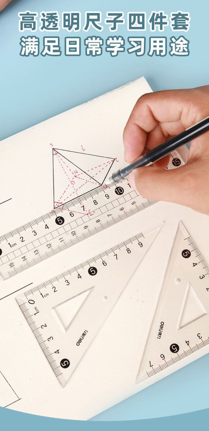 得力透明套尺ins高颜值学生直尺三角尺量角器尺子四件套考试套装