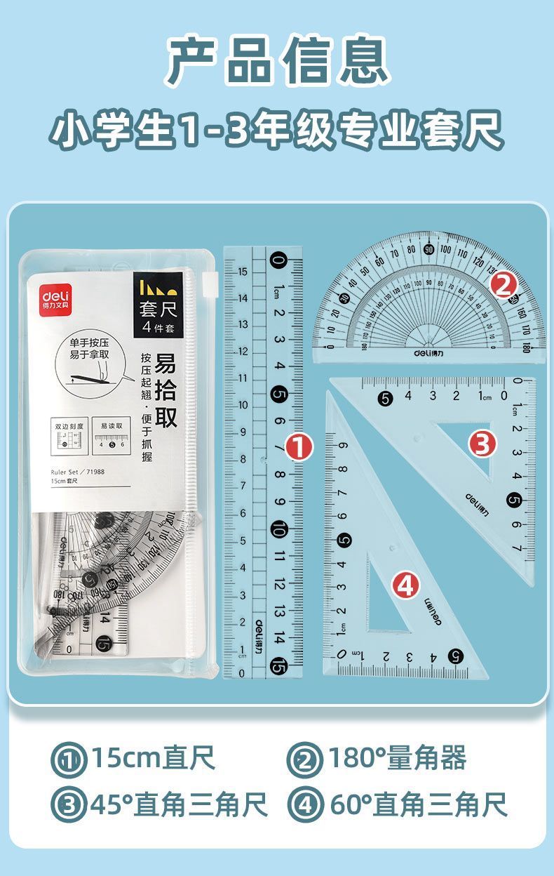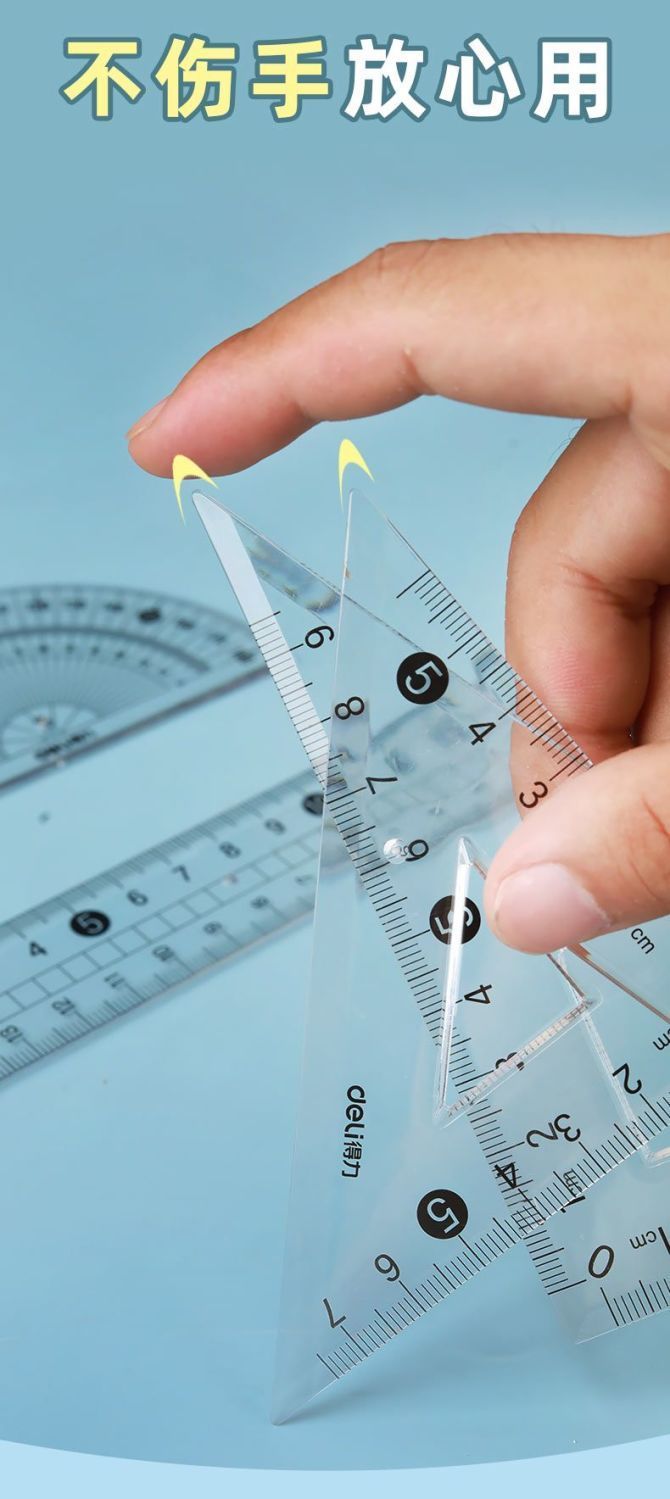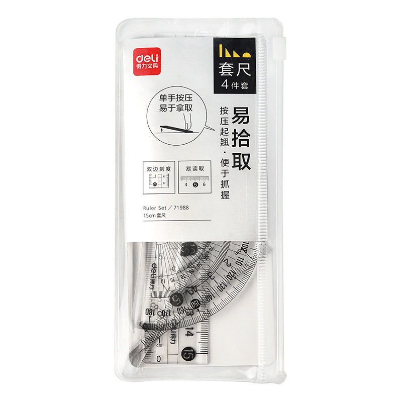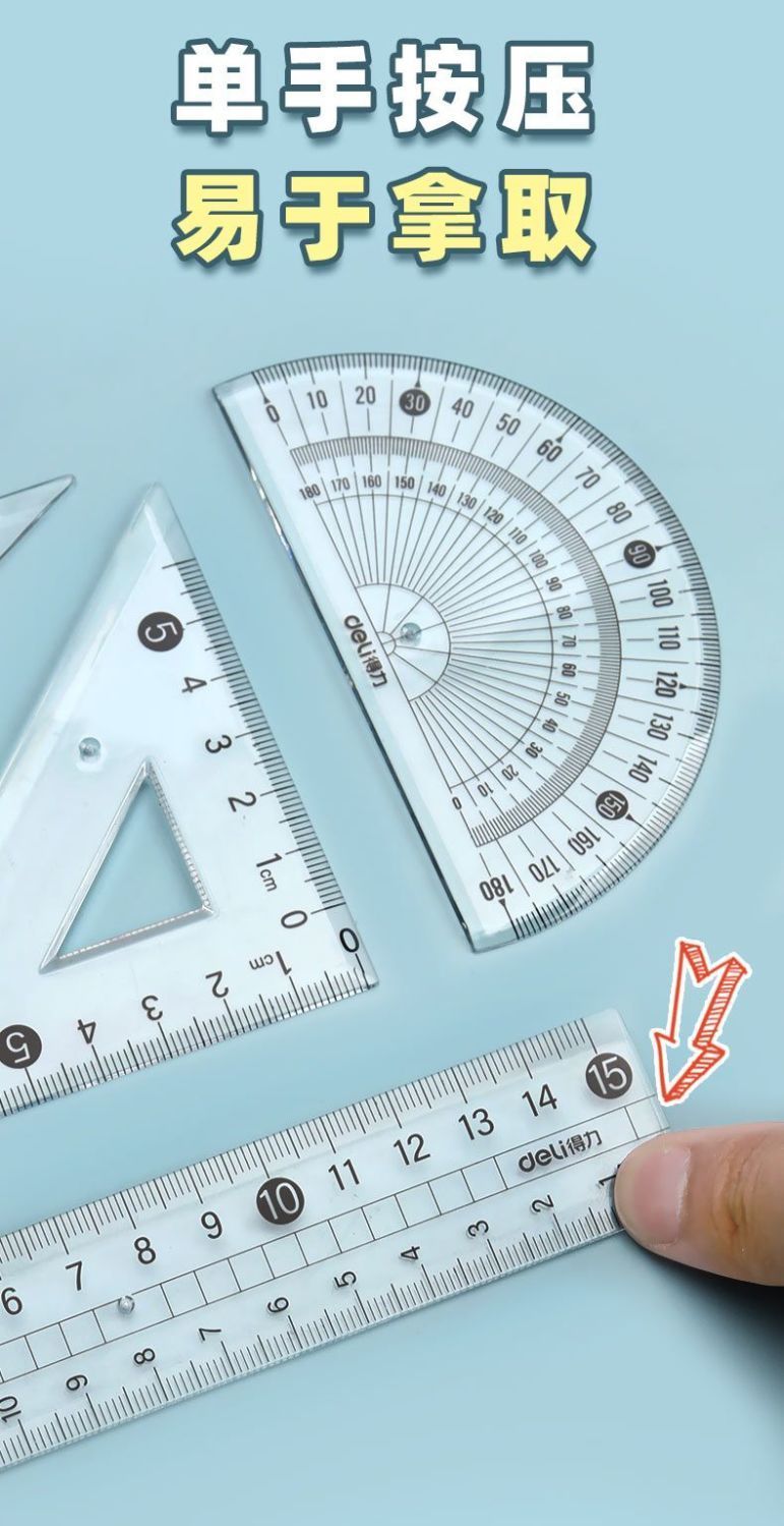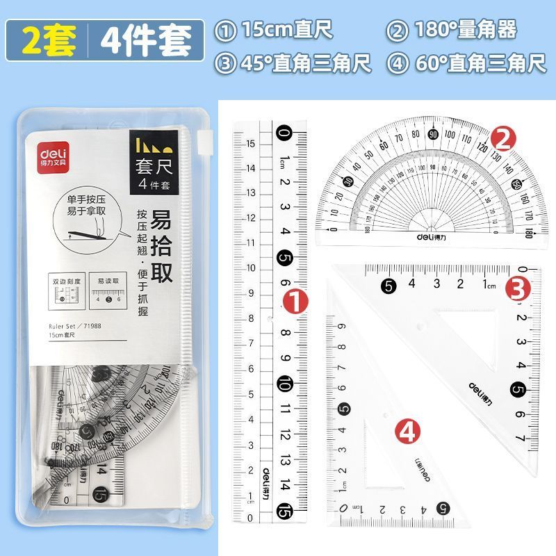 得力透明套尺ins高颜值学生直尺三角尺量角器尺子四件套考试套装