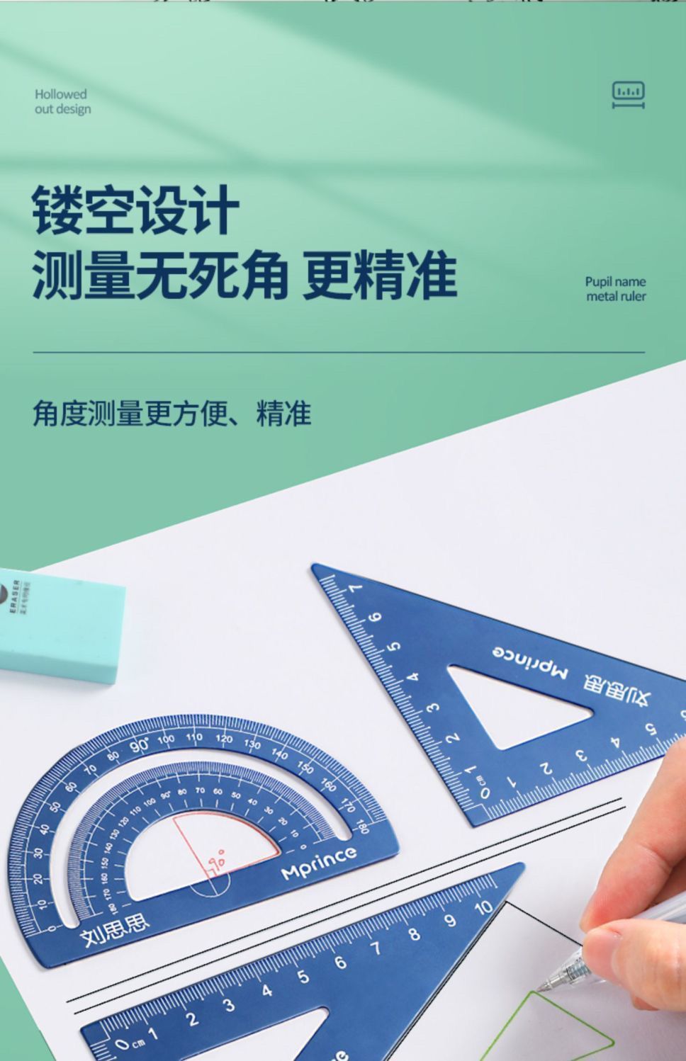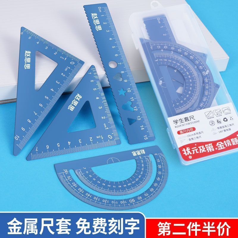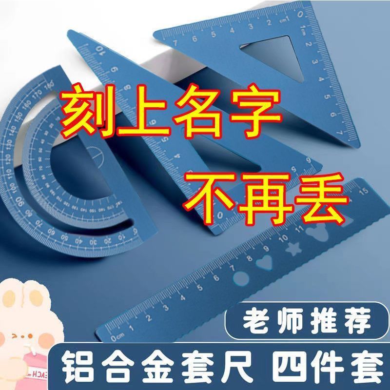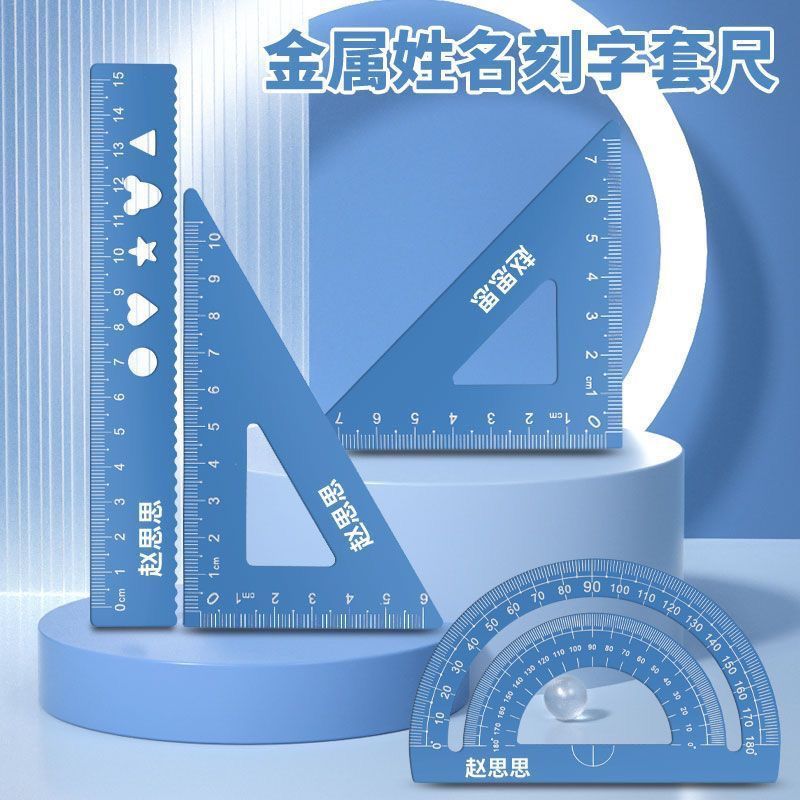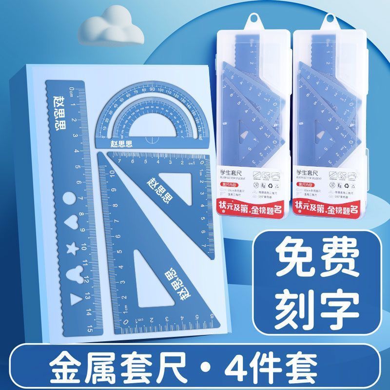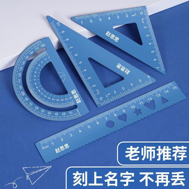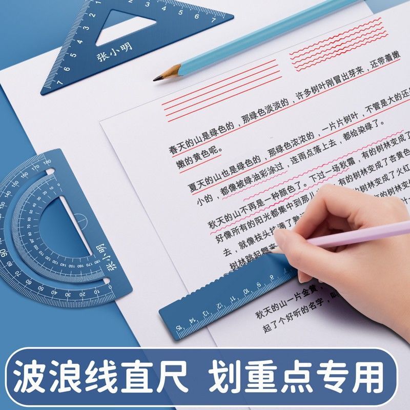 免费刻名字中小学生专用尺子学生专用三角尺套装波浪线直尺四件套