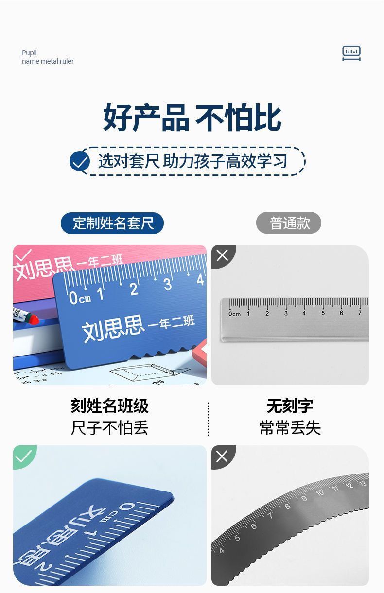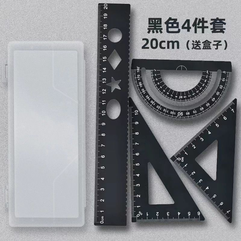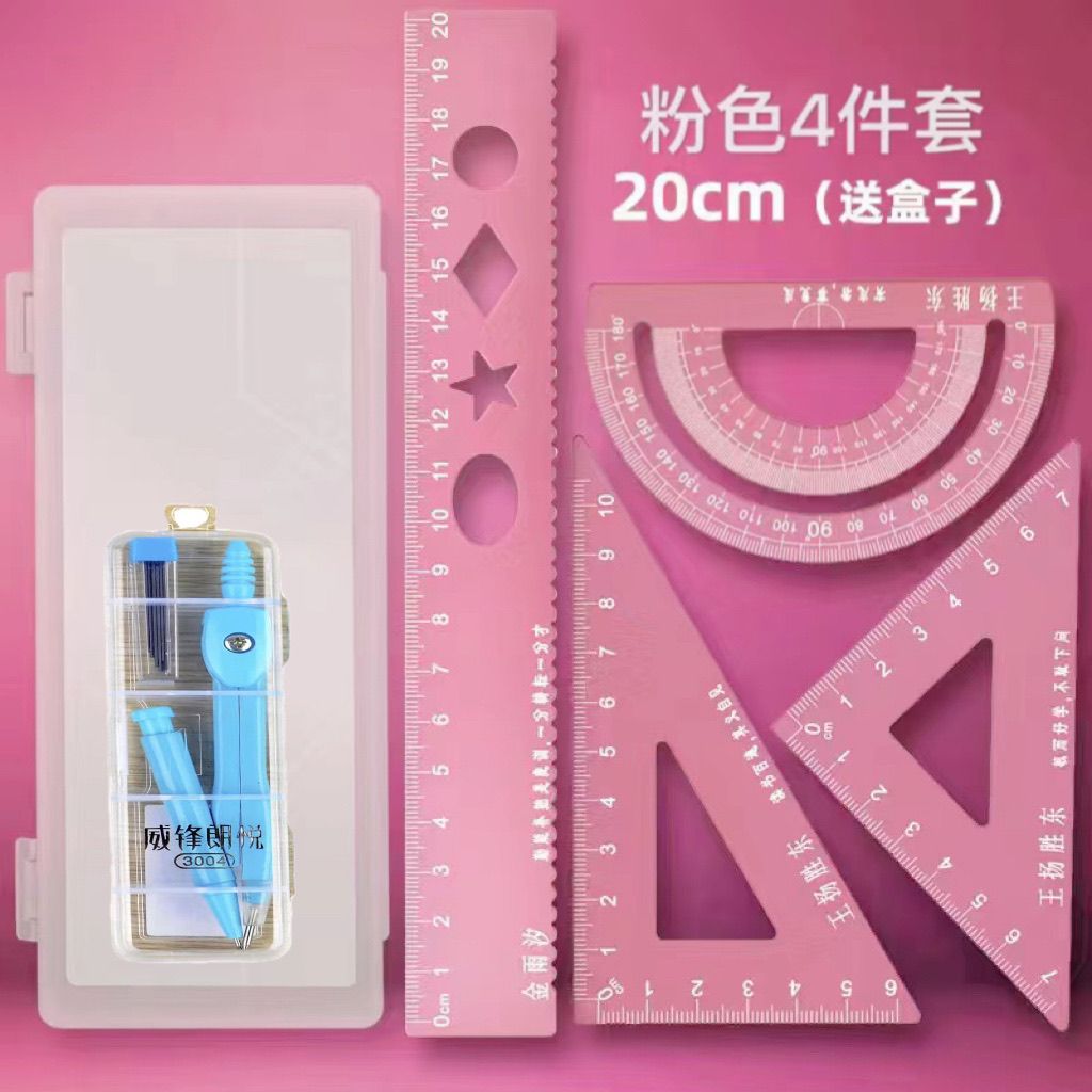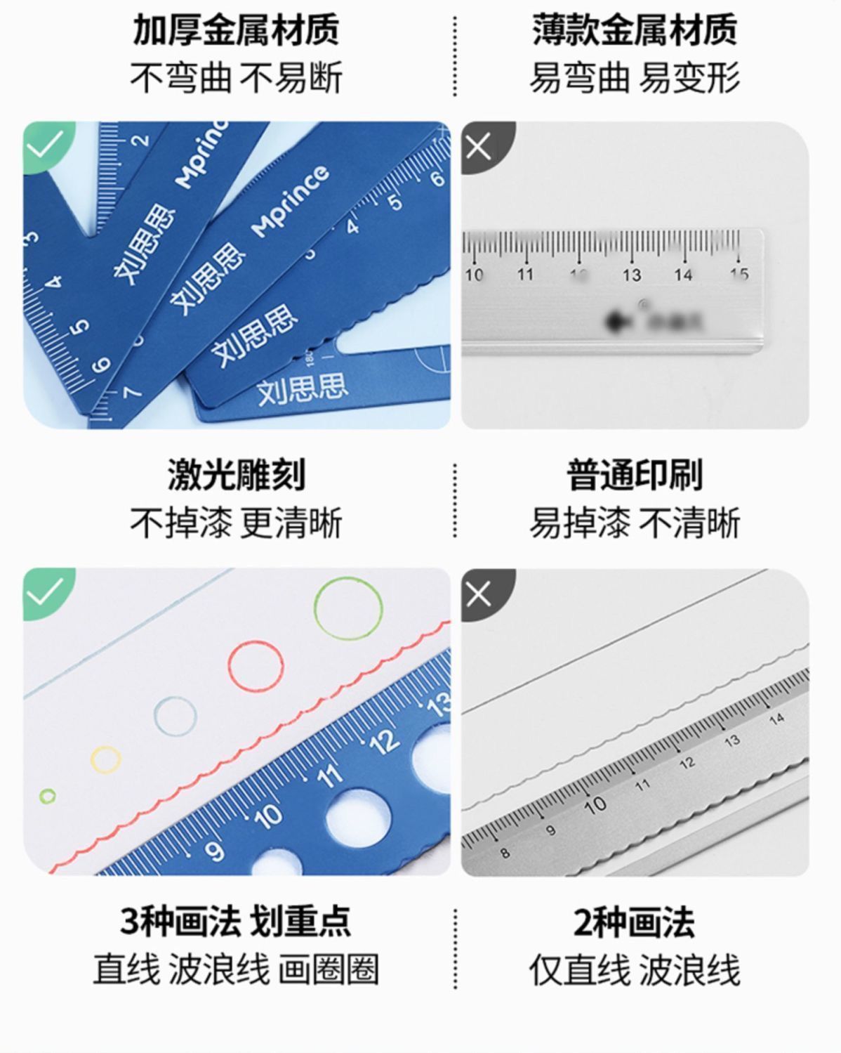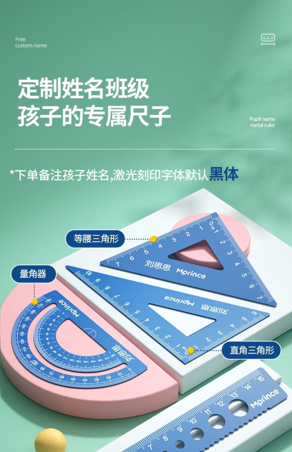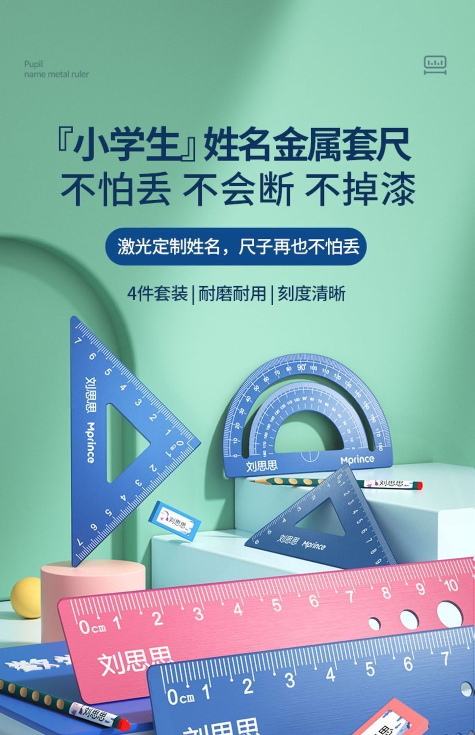 免费刻名字中小学生专用尺子学生专用三角尺套装波浪线直尺四件套
