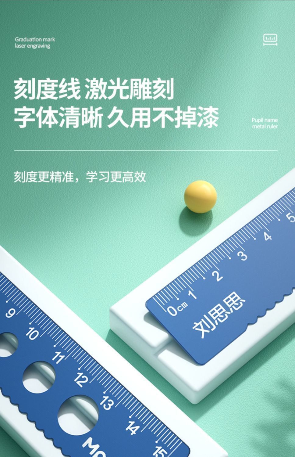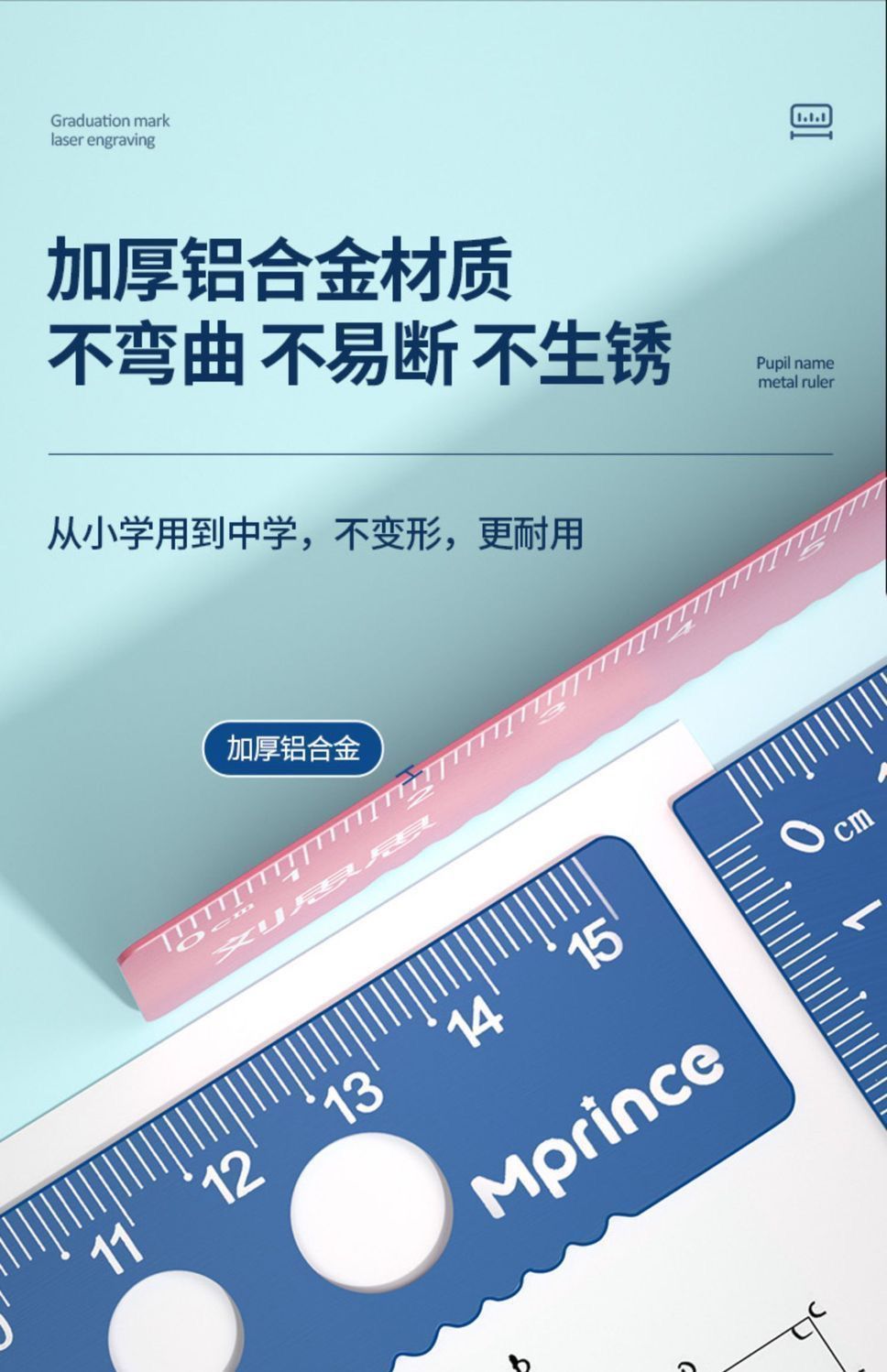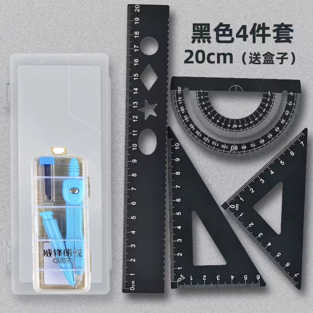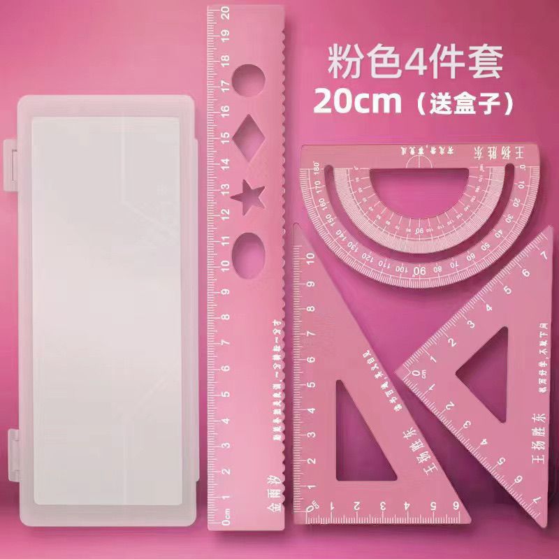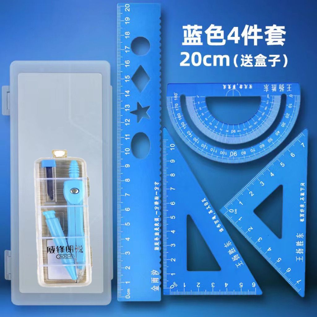 免费刻名字中小学生专用尺子学生专用三角尺套装波浪线直尺四件套
