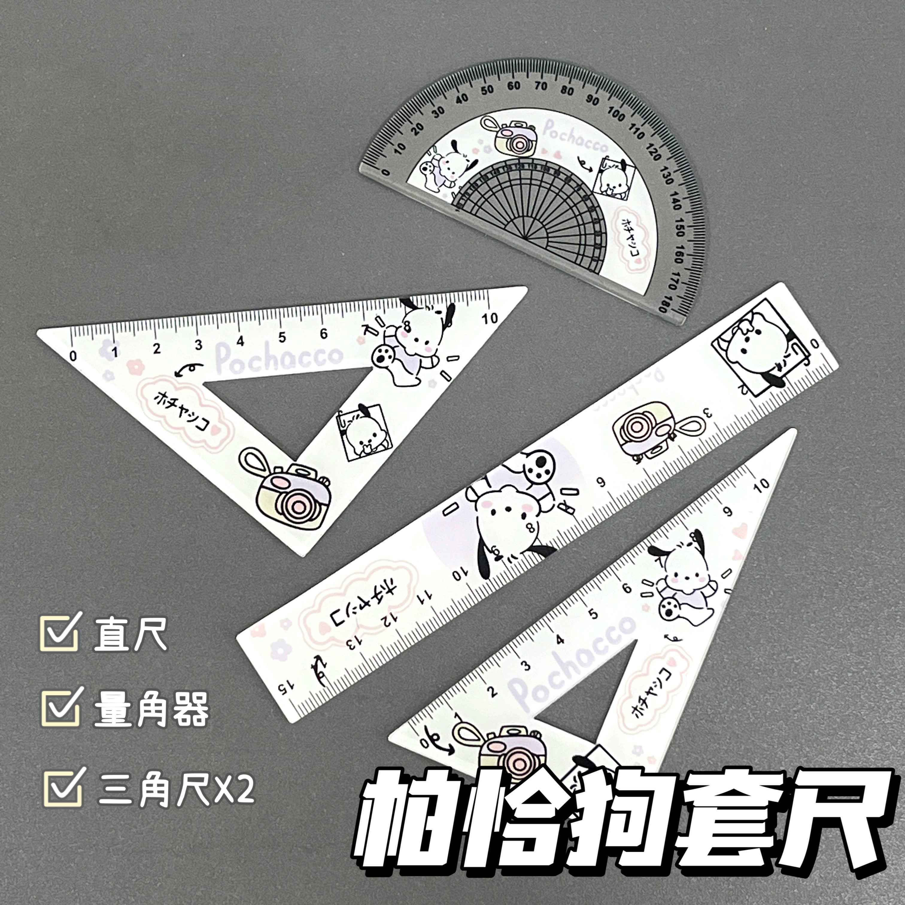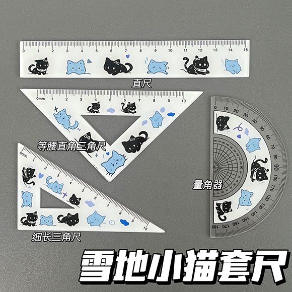 可爱尺子四件套装新款雪地小猫小学生多功能专用男女孩三角直圆尺