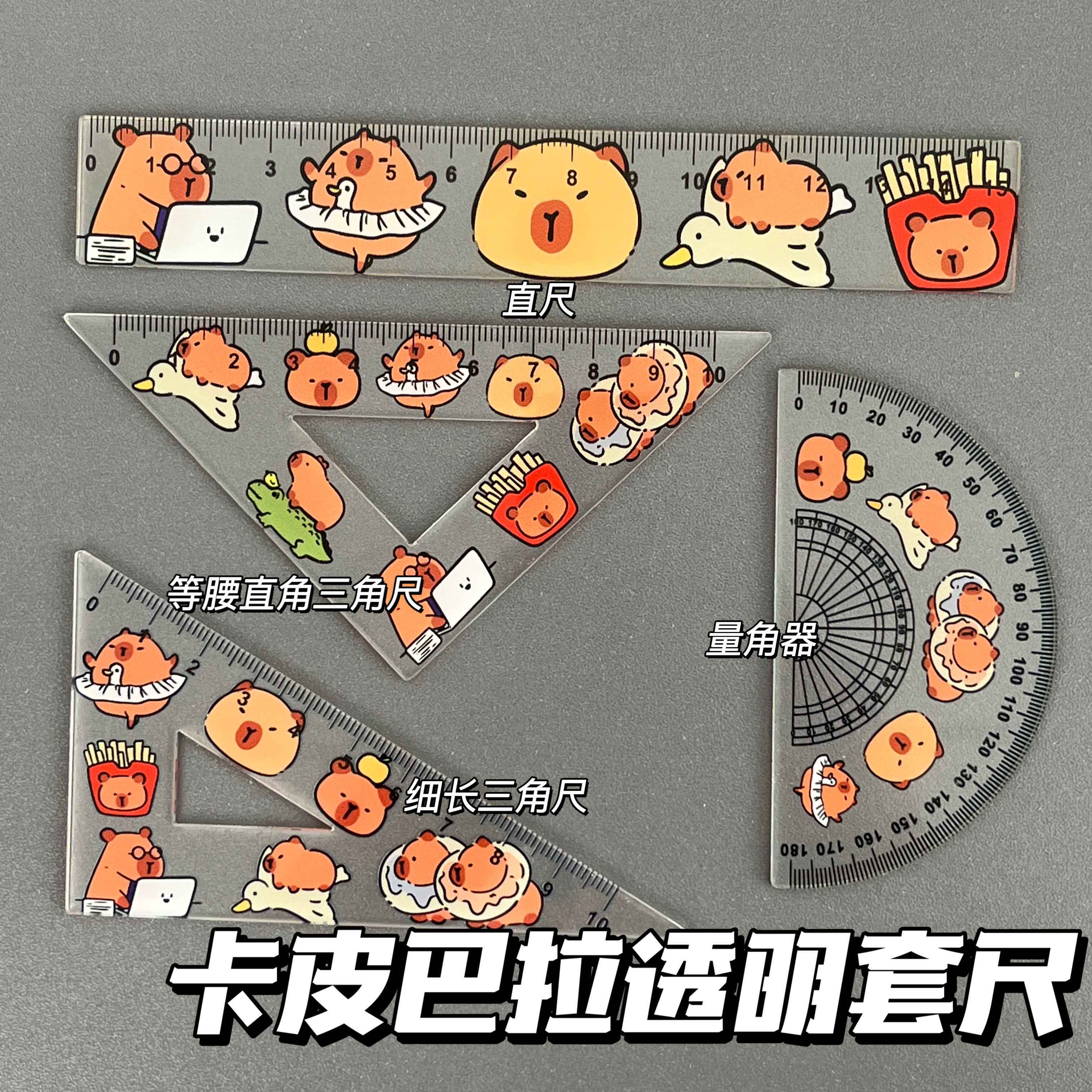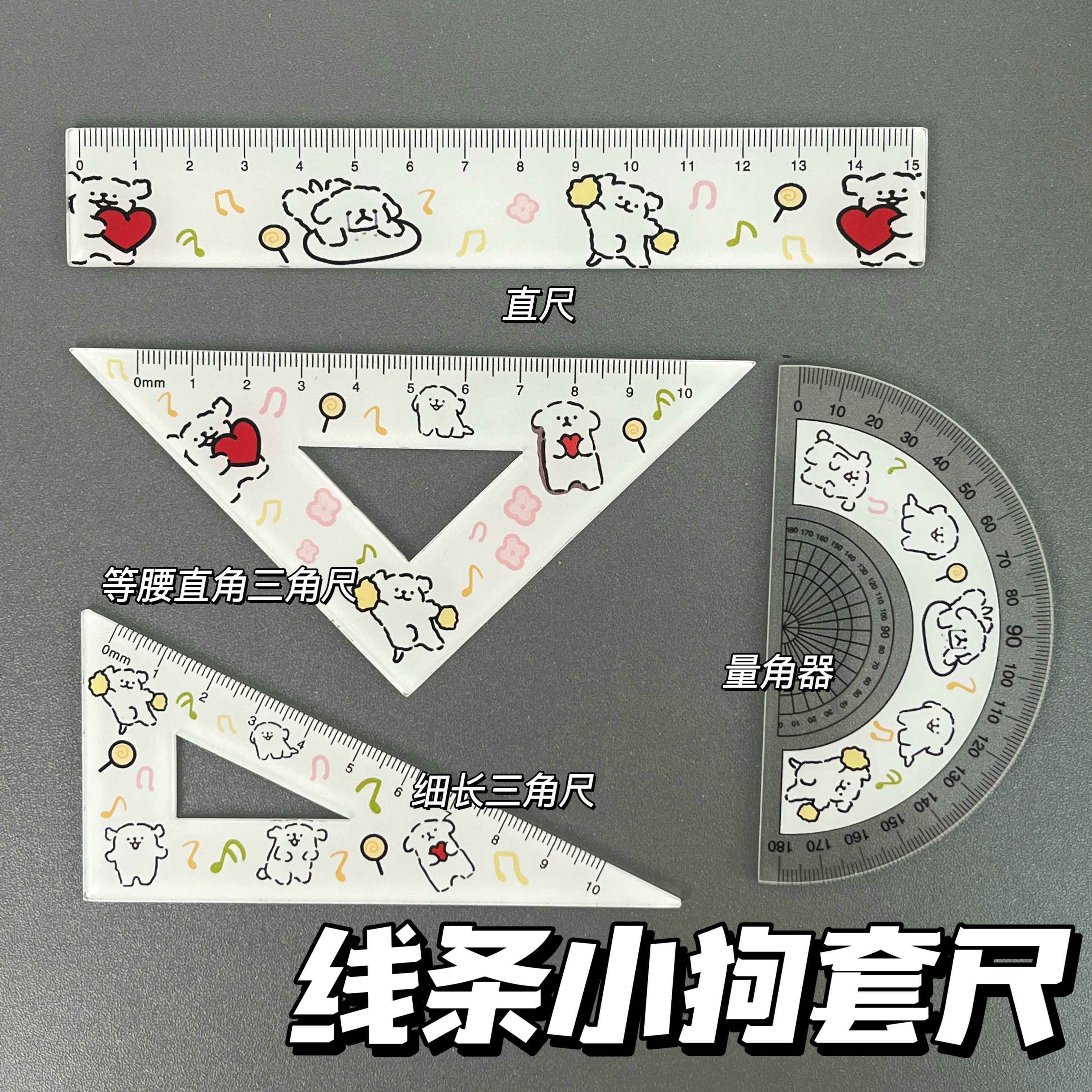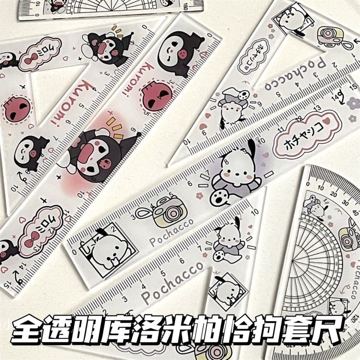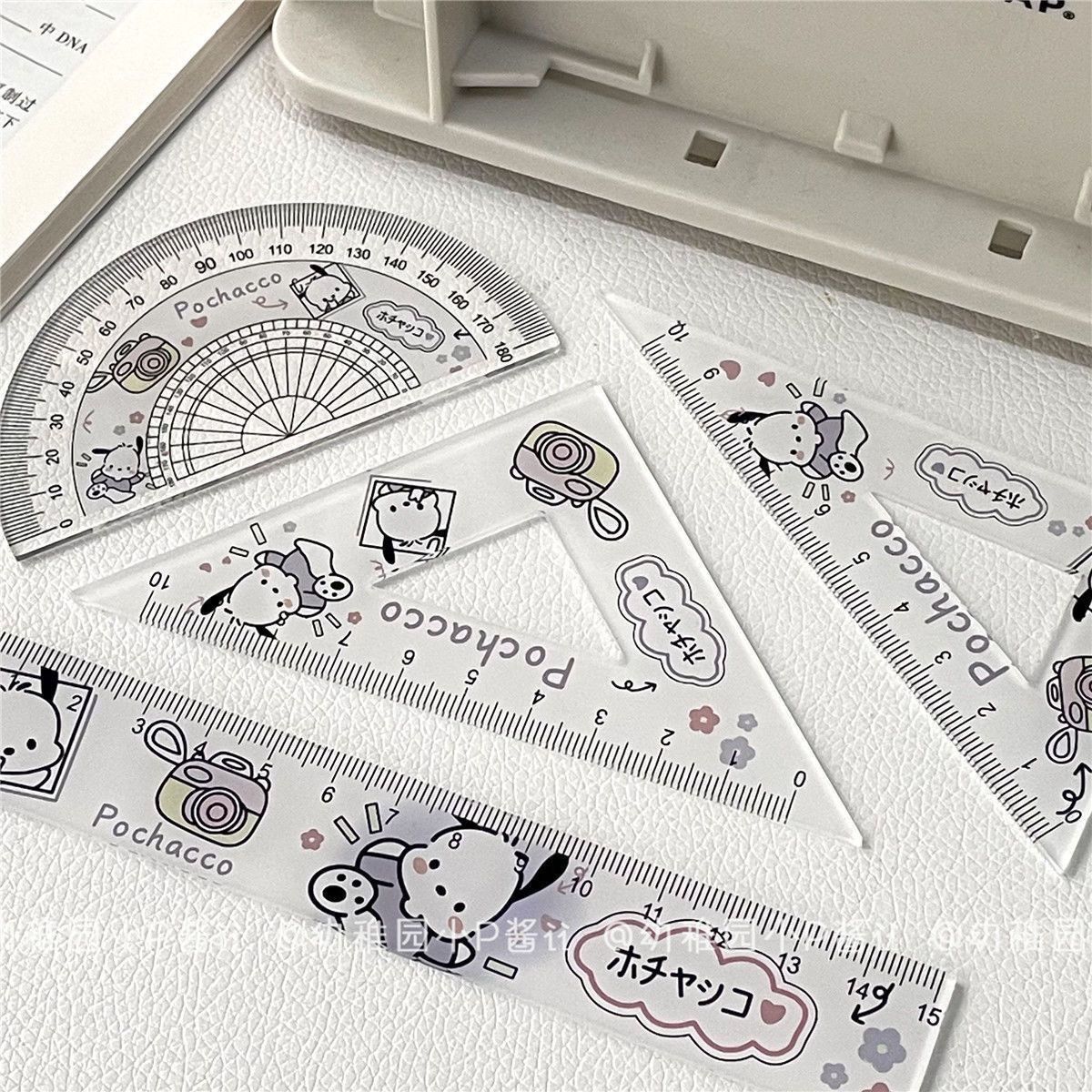 可爱透明尺子四件套装ins风亚克力高颜值男女学生三角尺直尺圆尺