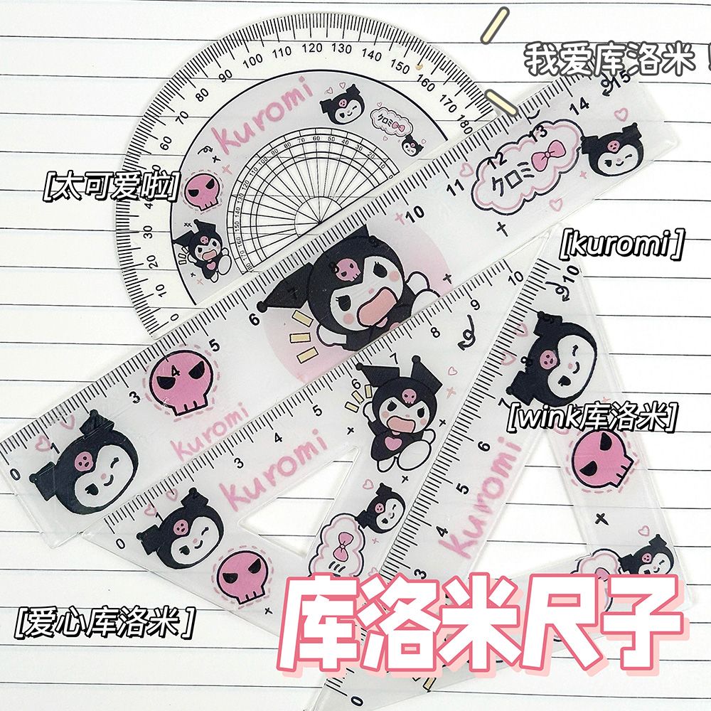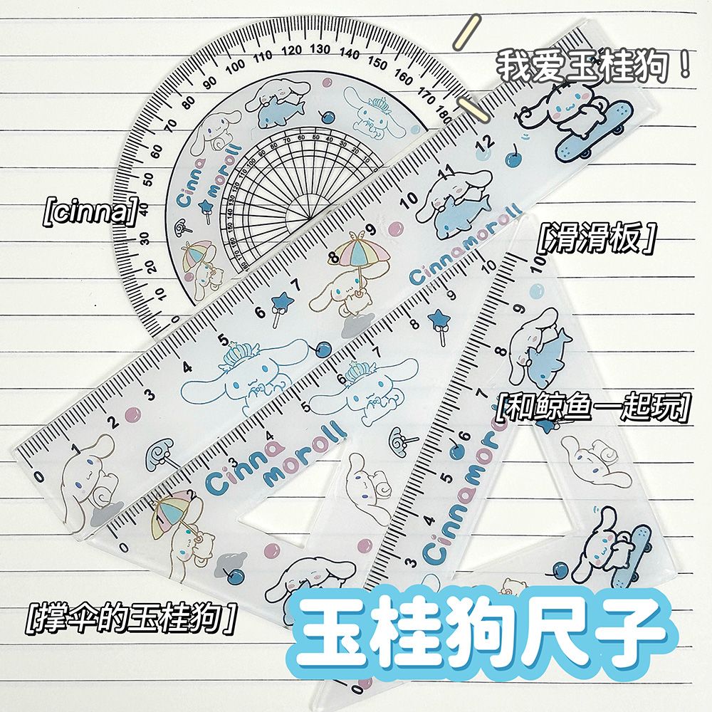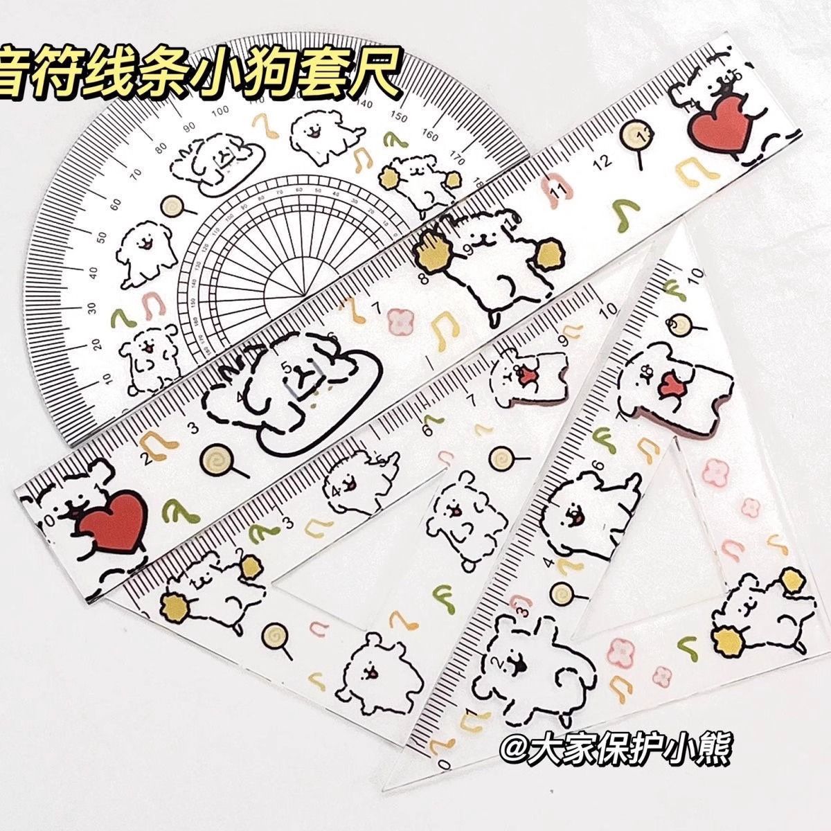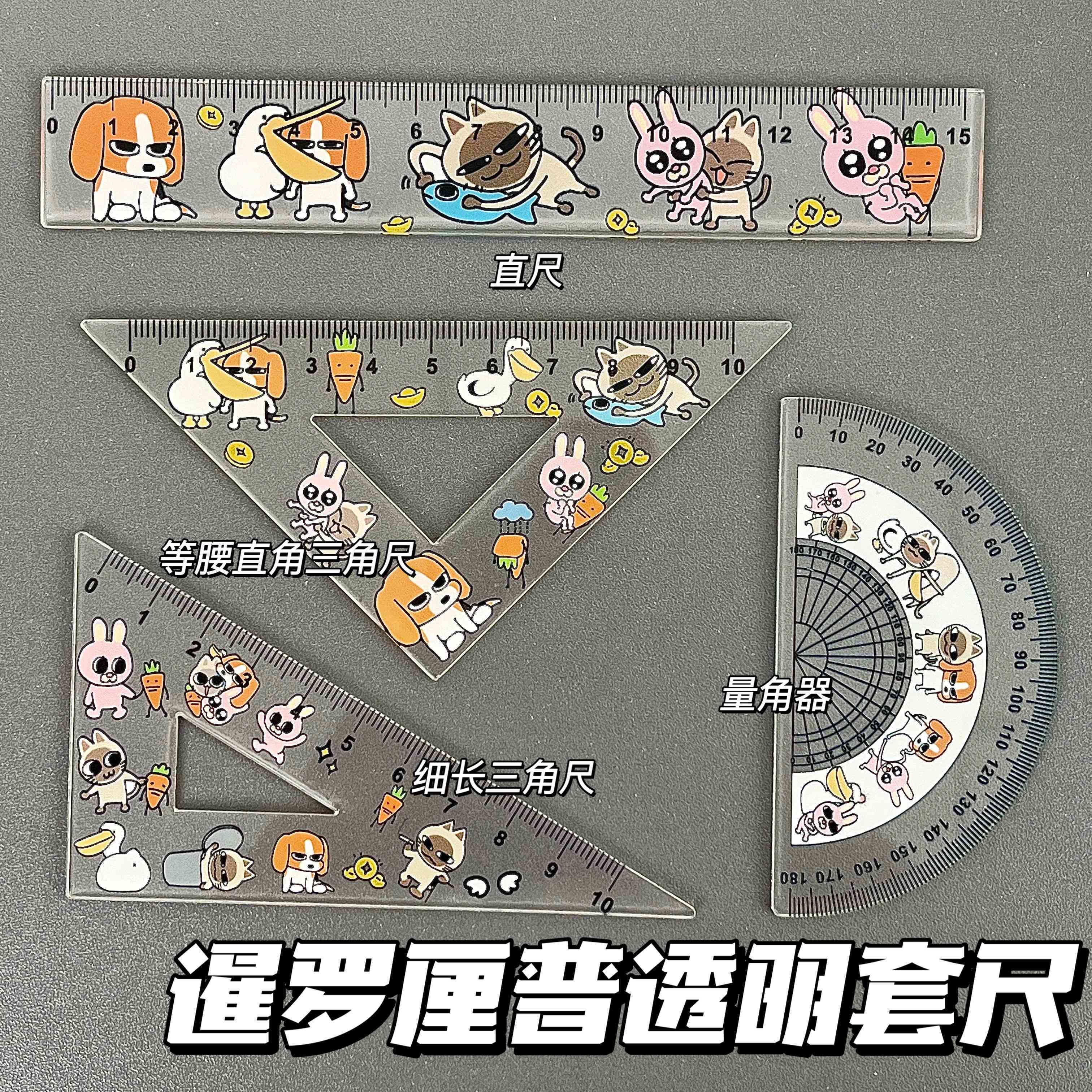 可爱透明尺子四件套装ins风亚克力高颜值男女学生三角尺直尺圆尺