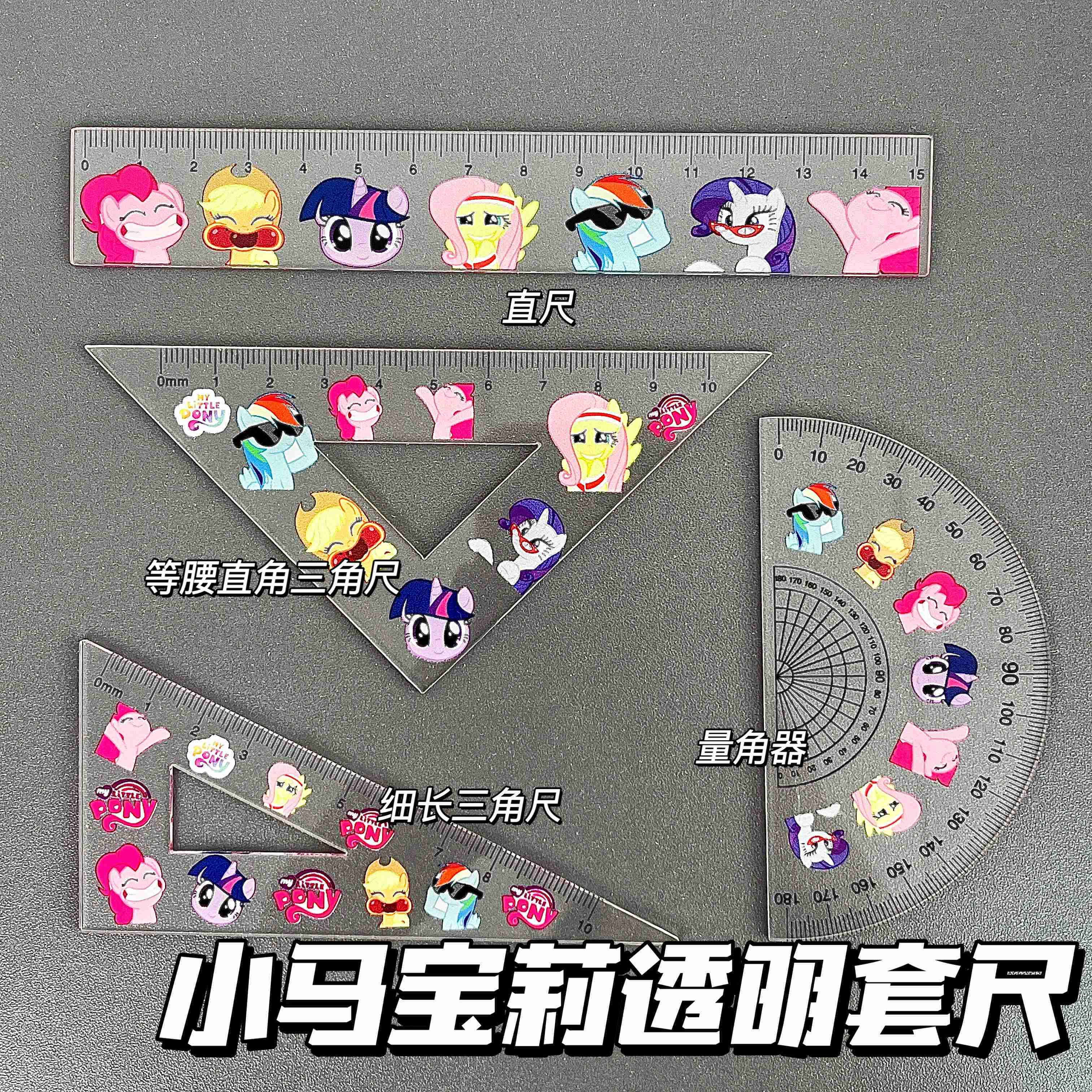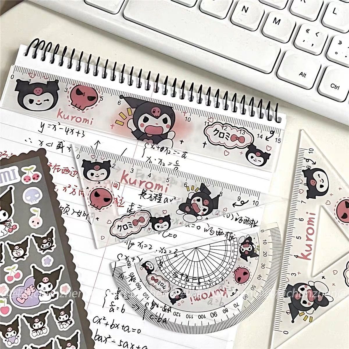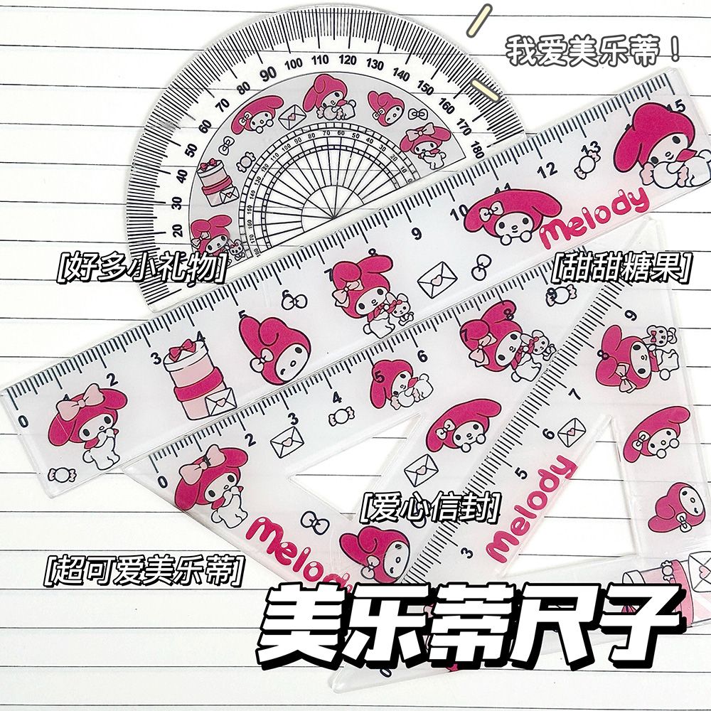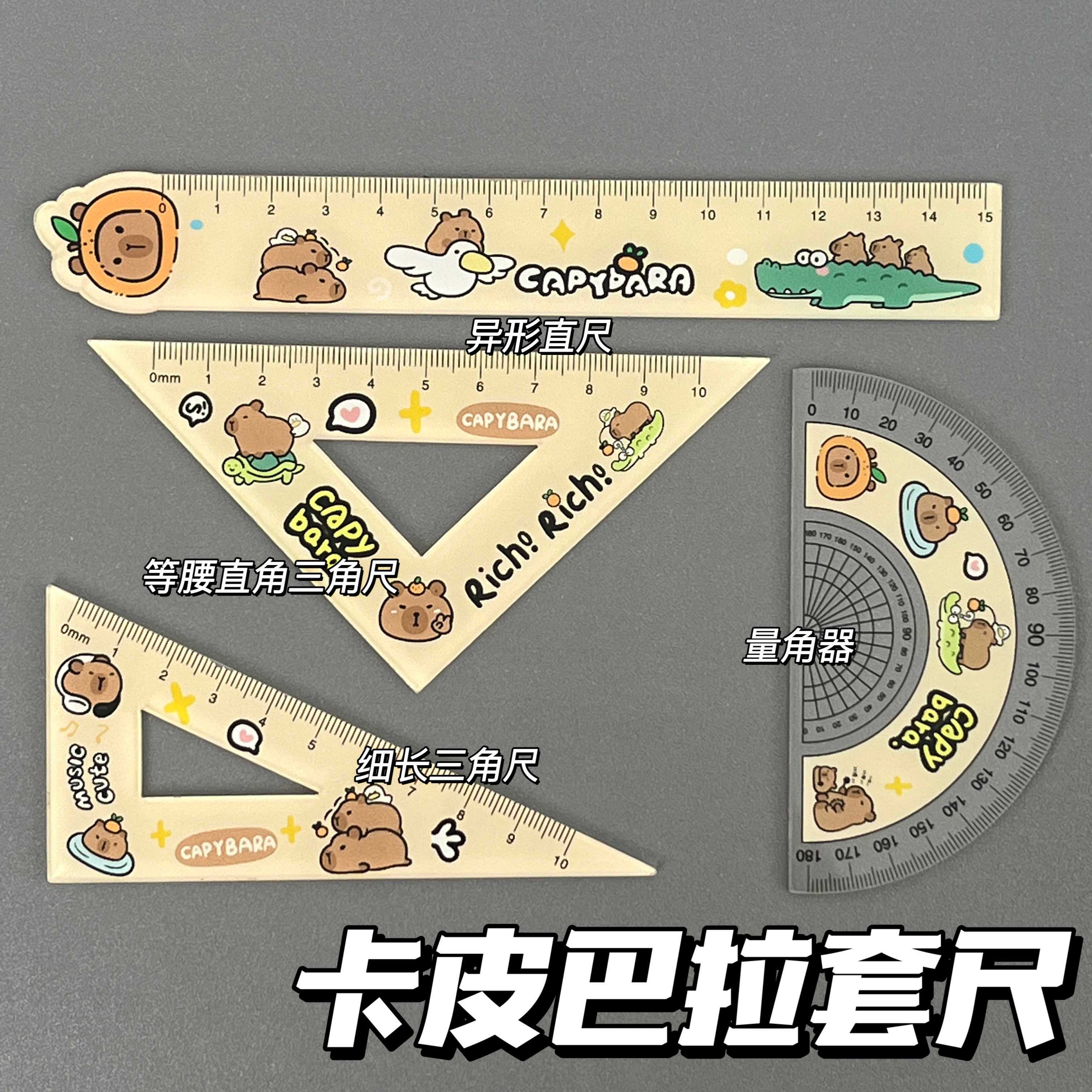 可爱透明尺子四件套装ins风亚克力高颜值男女学生三角尺直尺圆尺