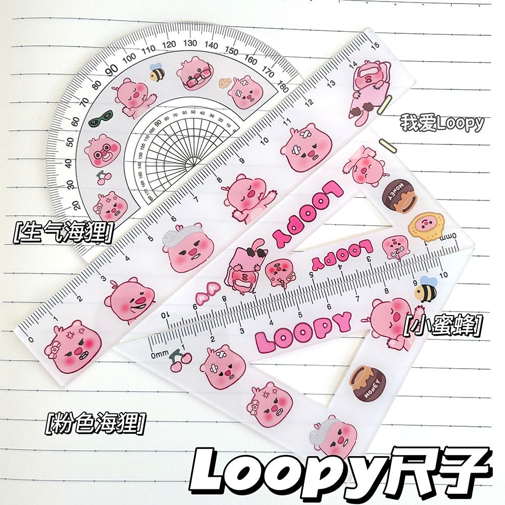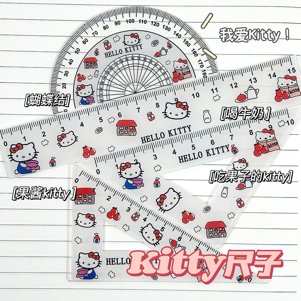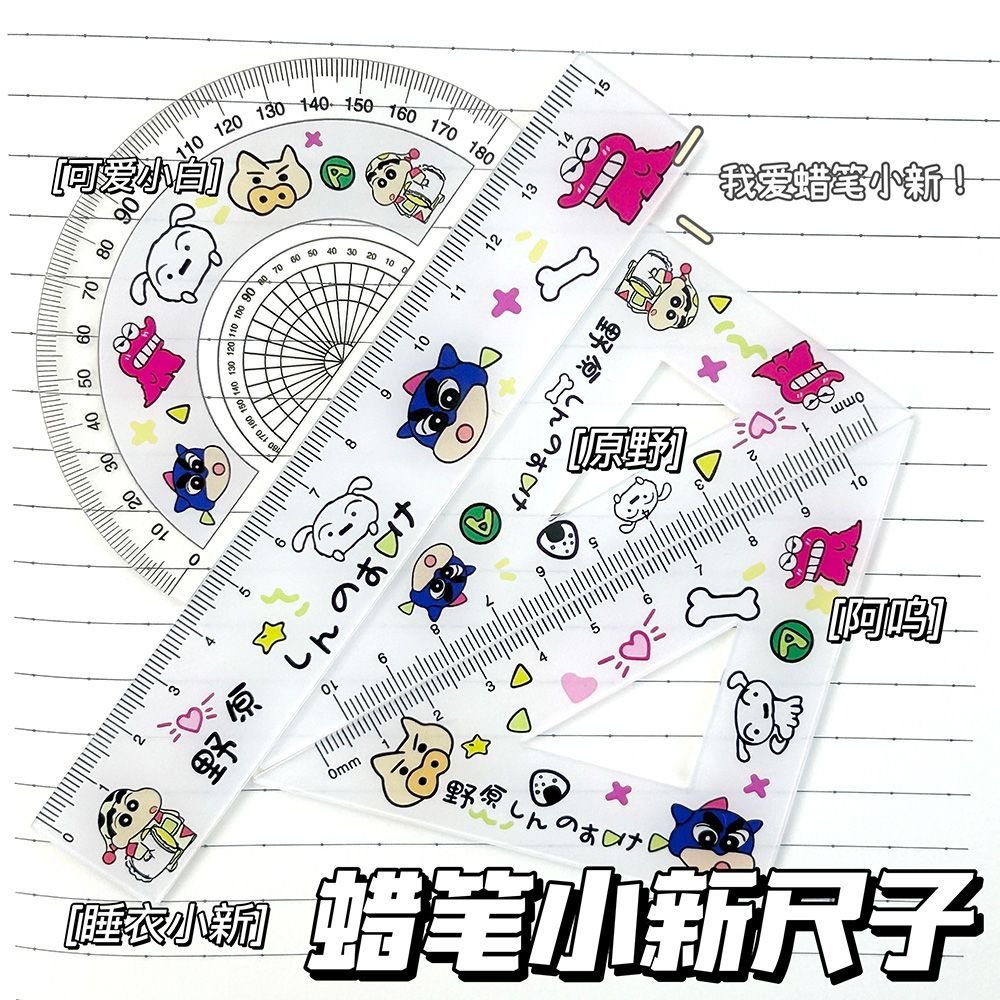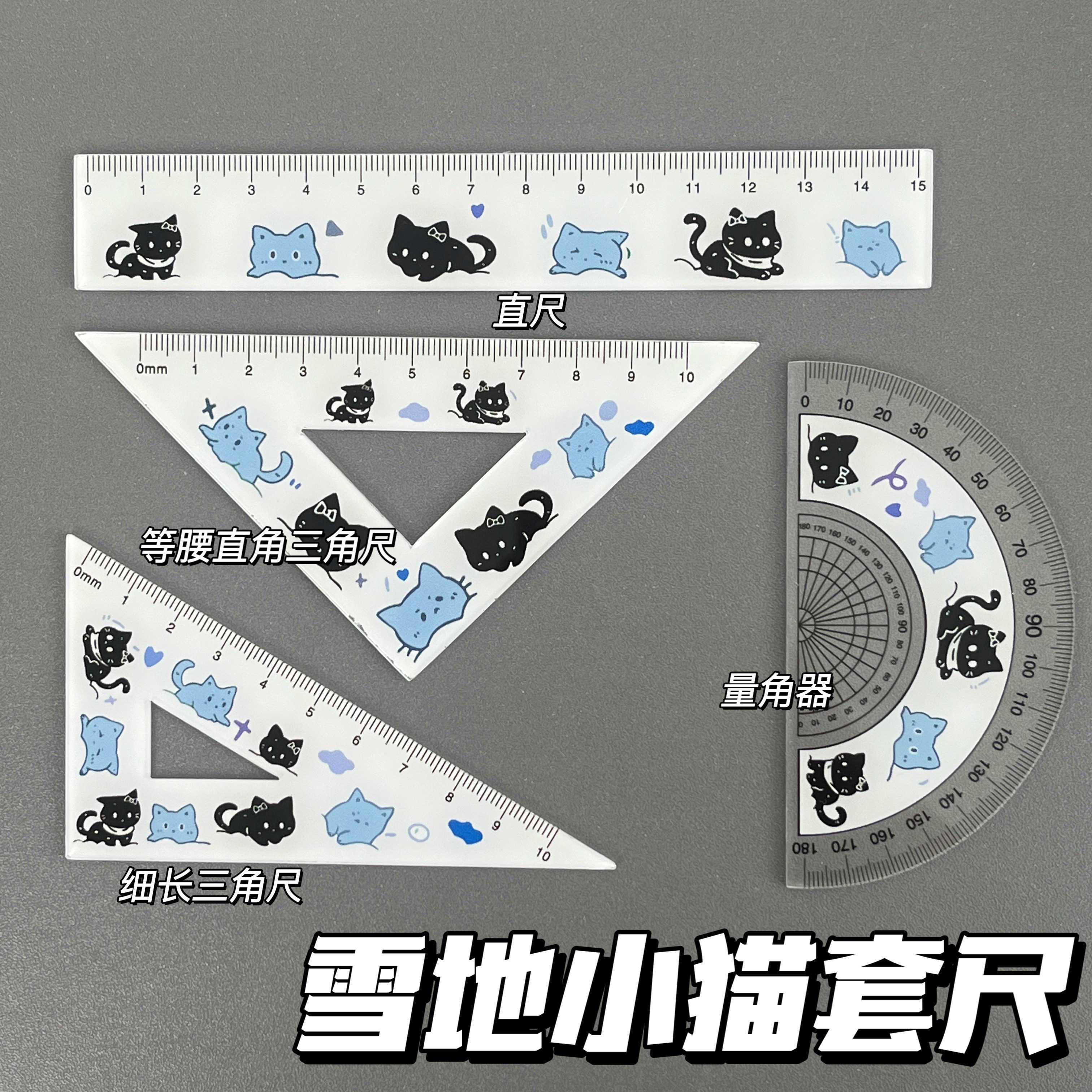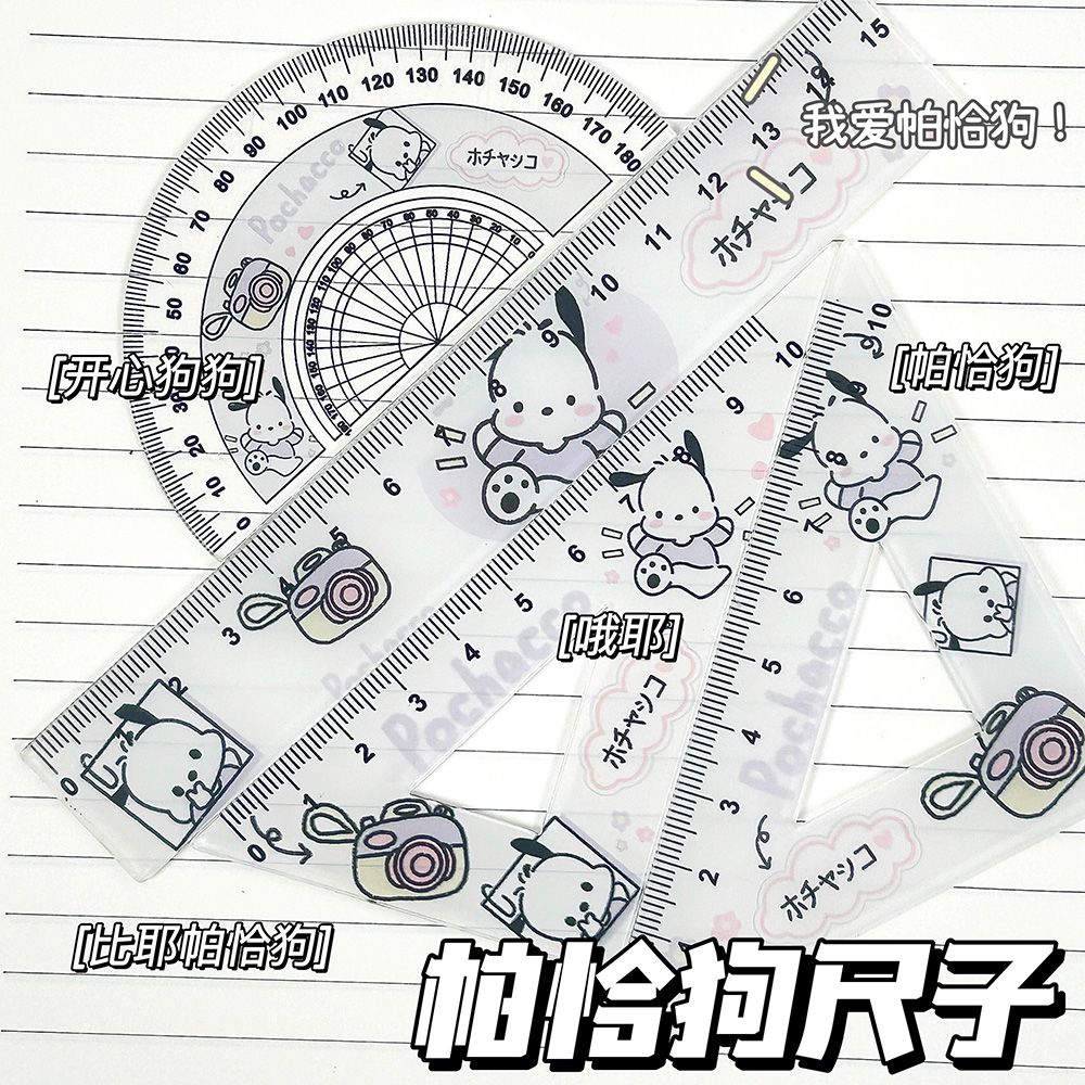 可爱透明尺子四件套装ins风亚克力高颜值男女学生三角尺直尺圆尺