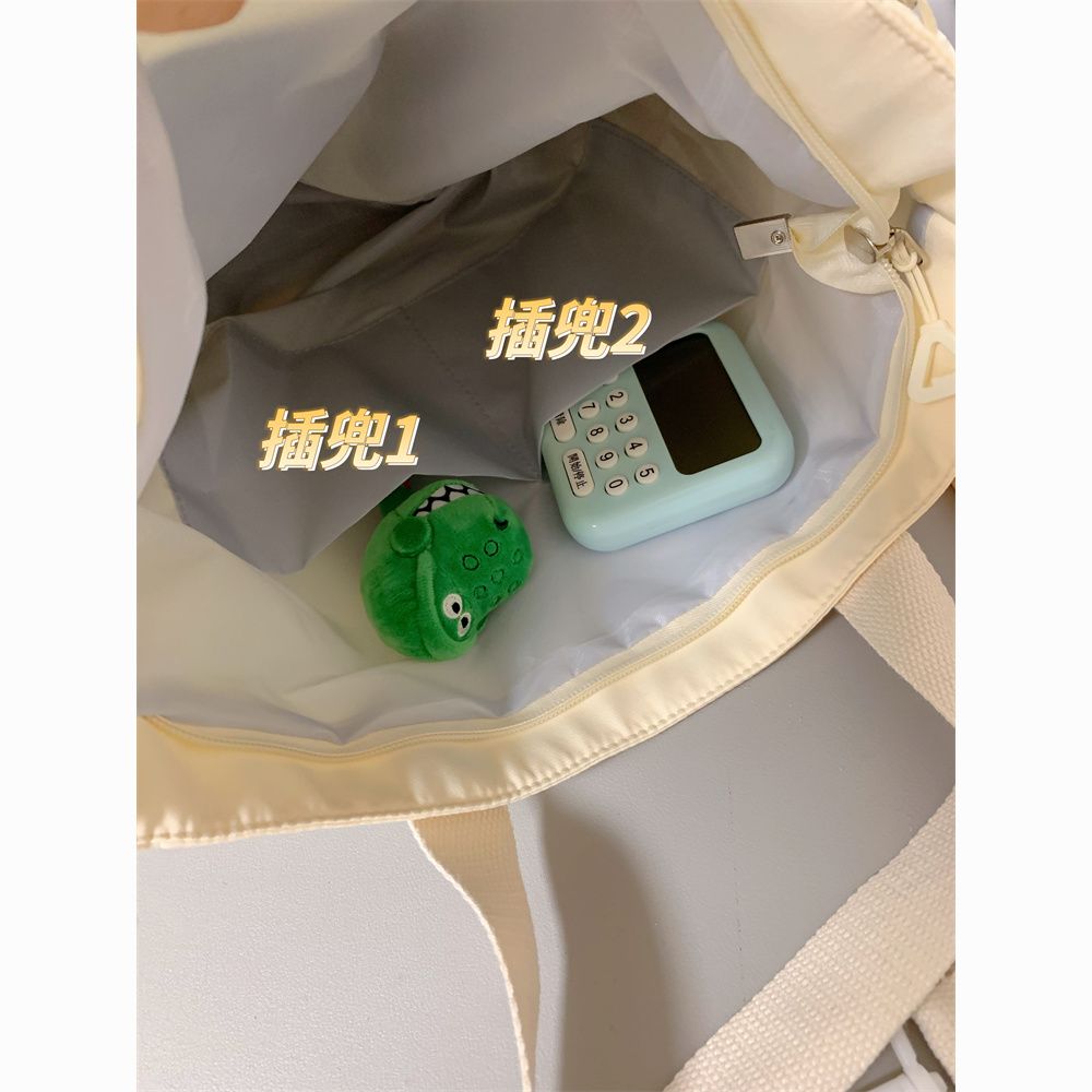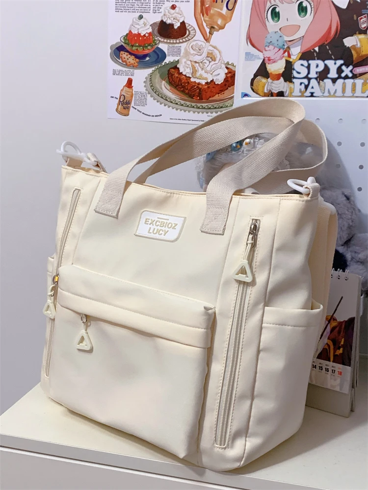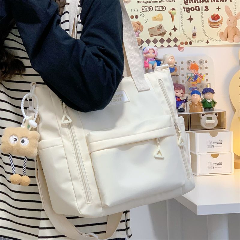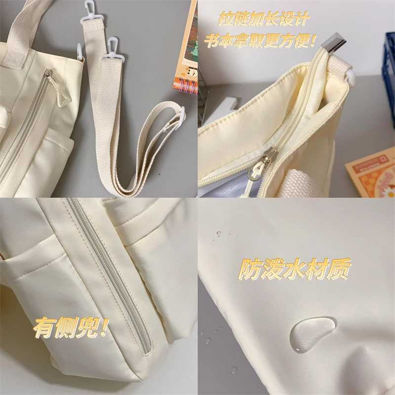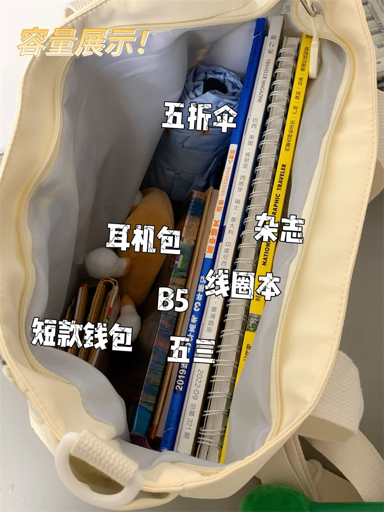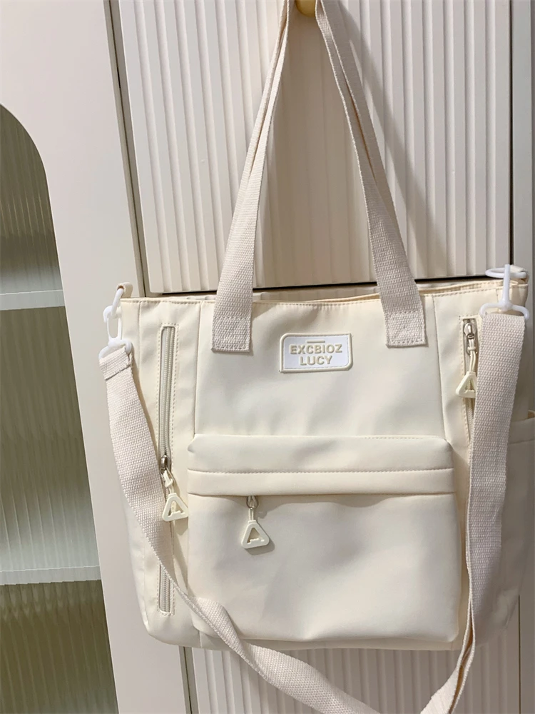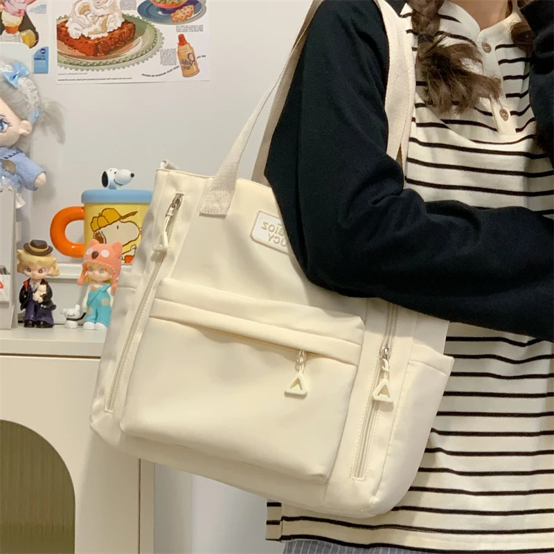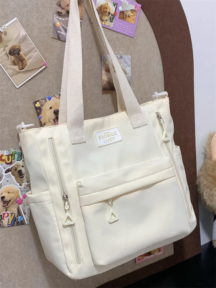 ins奶油色简约纯色百搭通勤单肩托特包学生大容量手提上课斜挎包