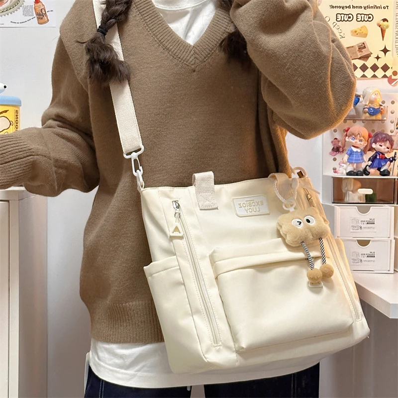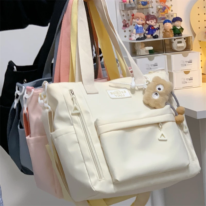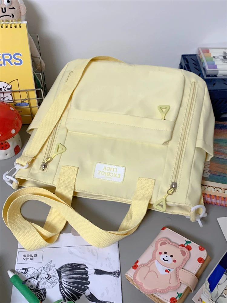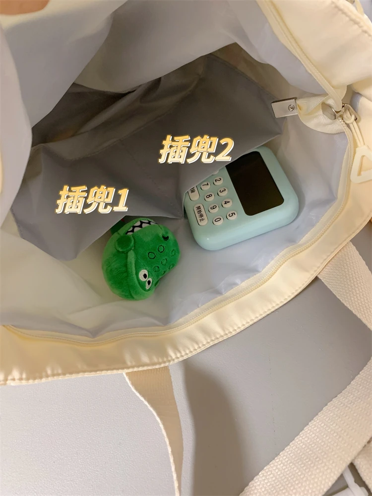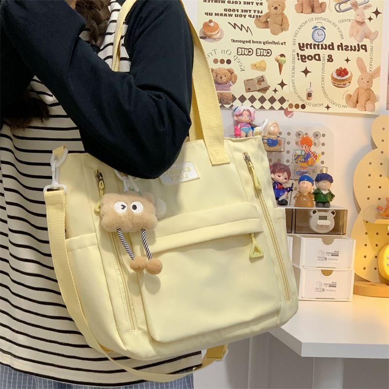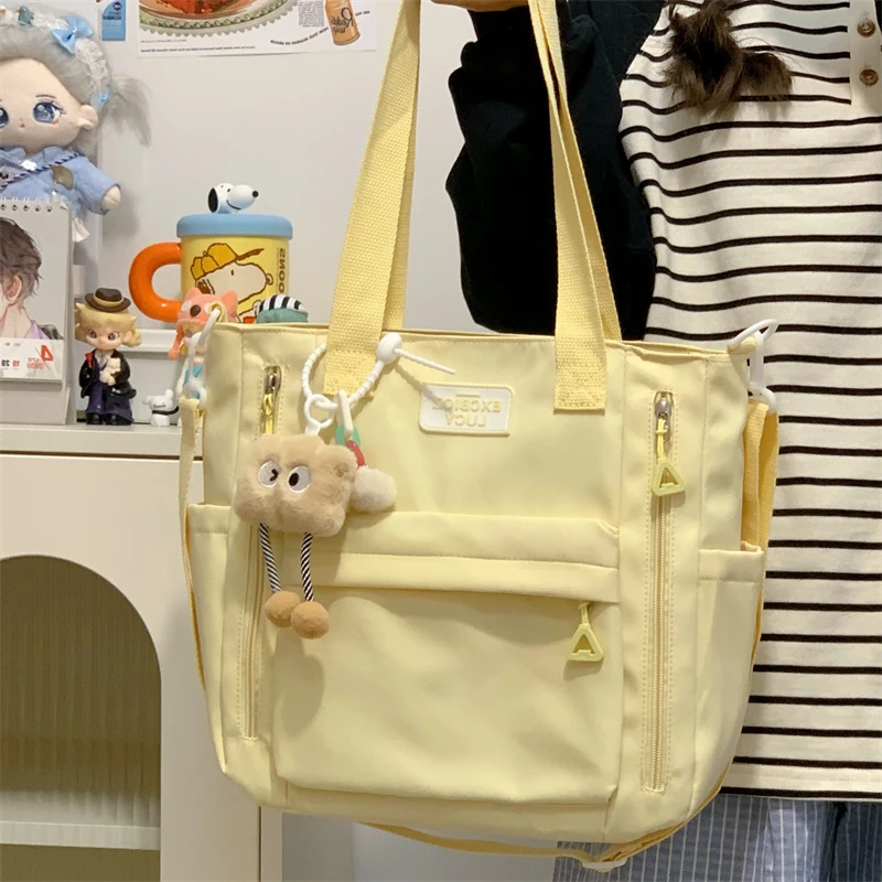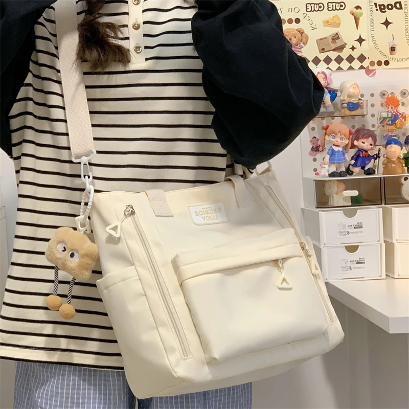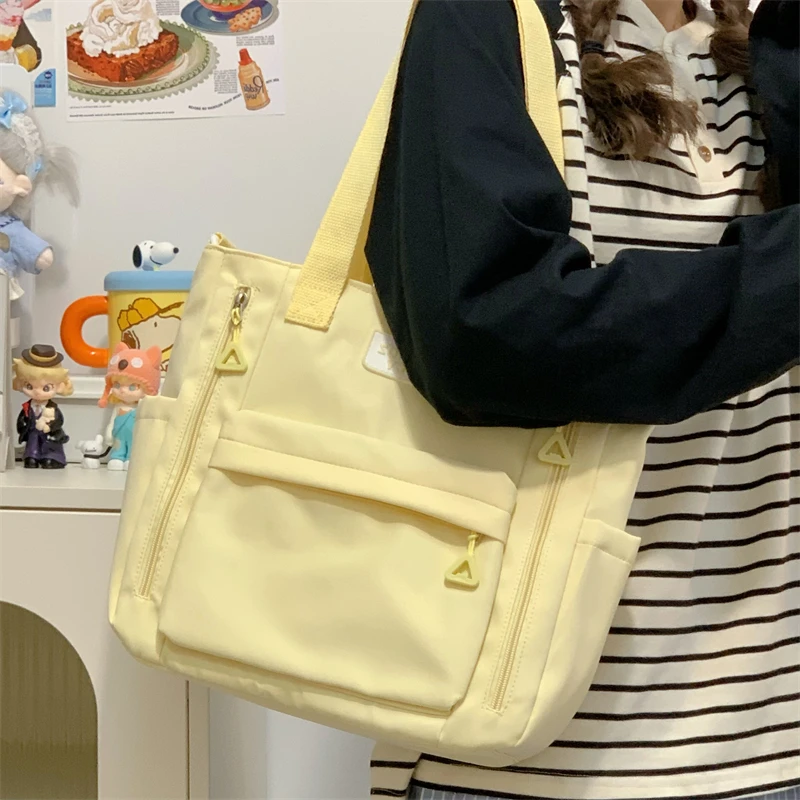 ins奶油色简约纯色百搭通勤单肩托特包学生大容量手提上课斜挎包