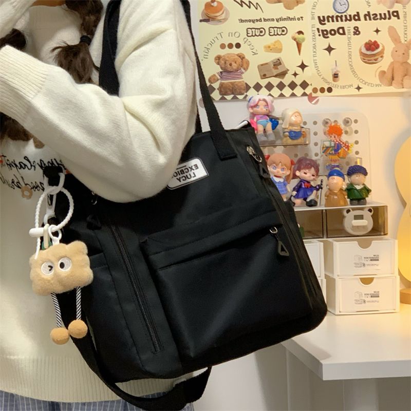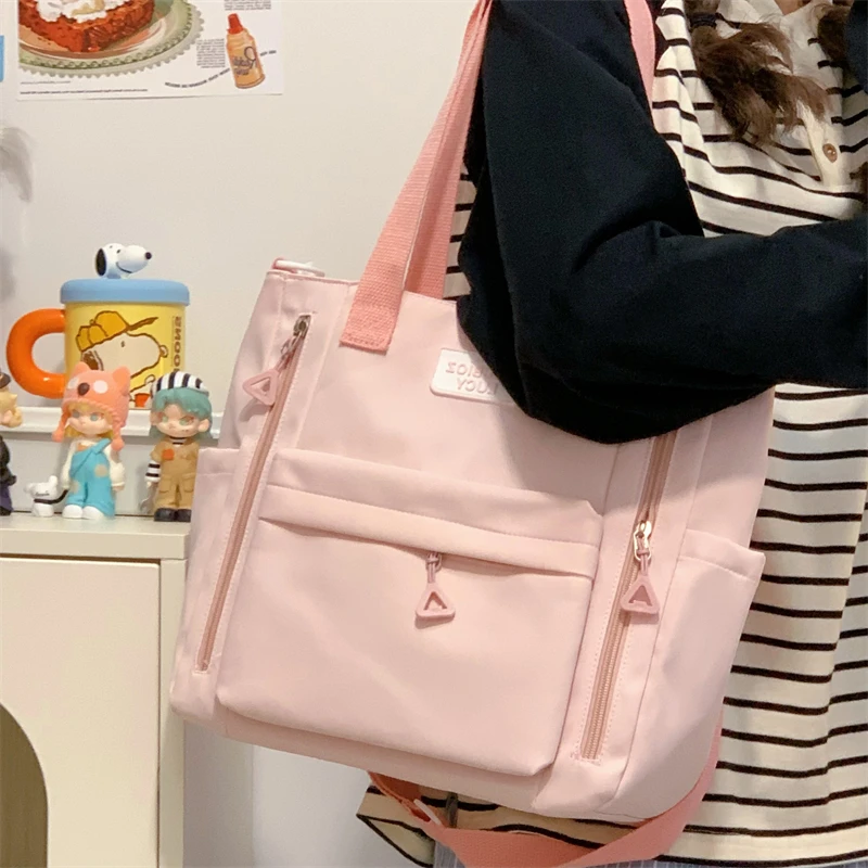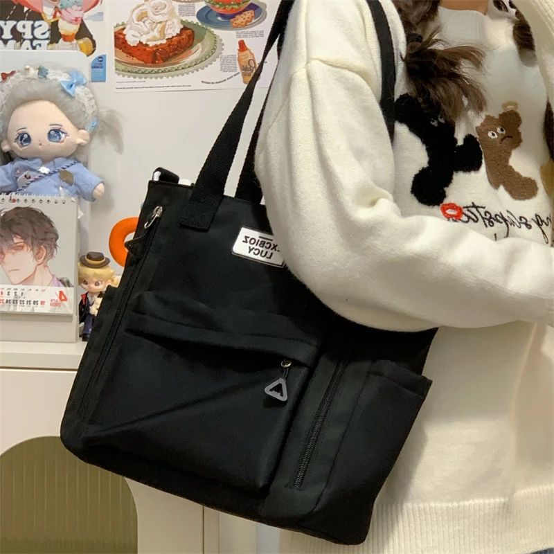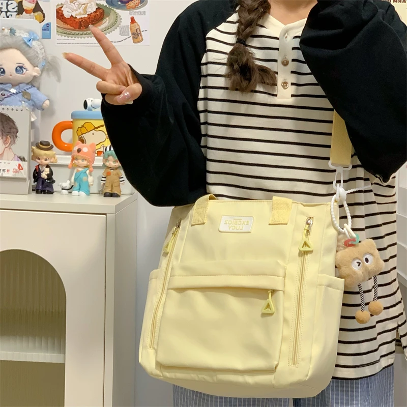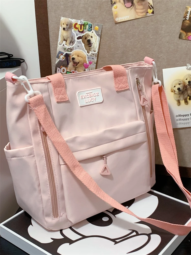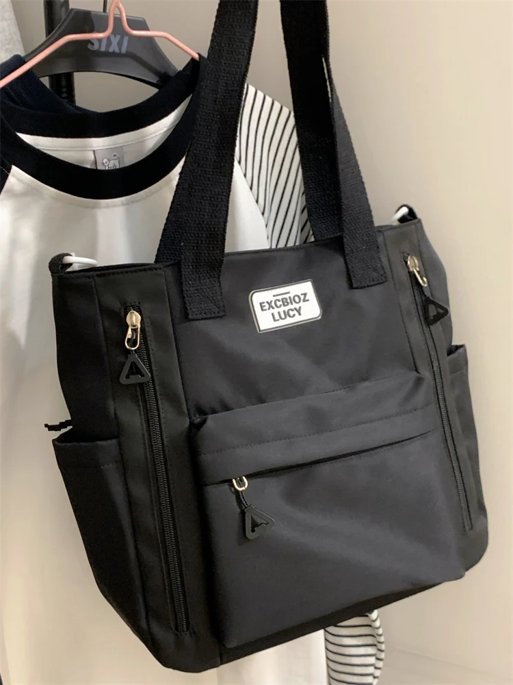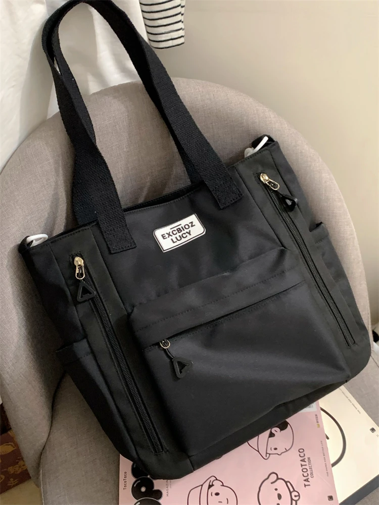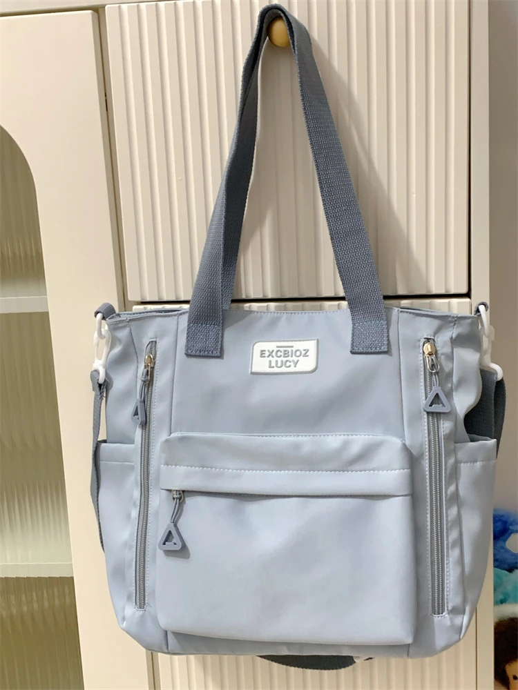ins奶油色简约纯色百搭通勤单肩托特包学生大容量手提上课斜挎包
