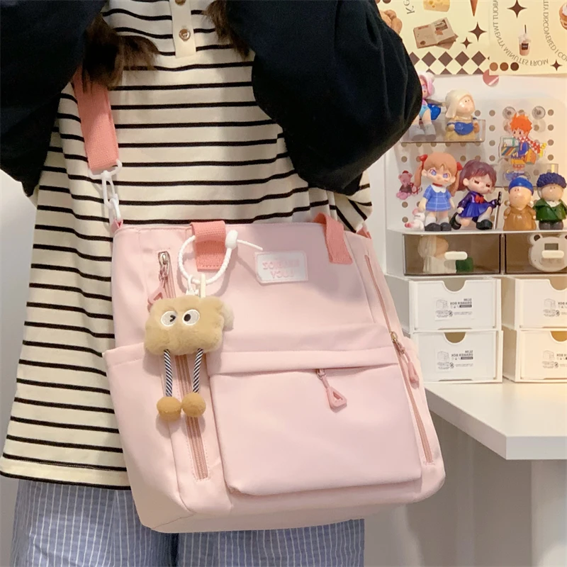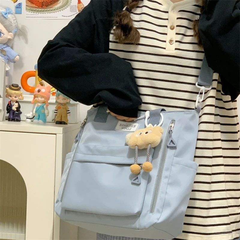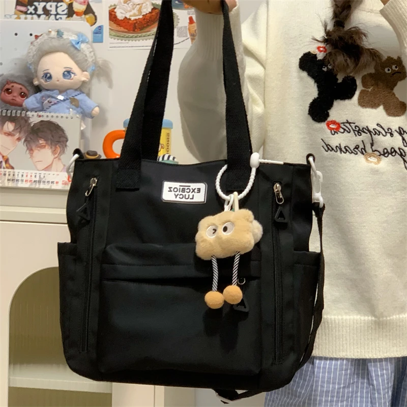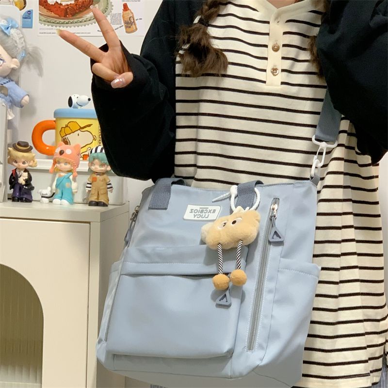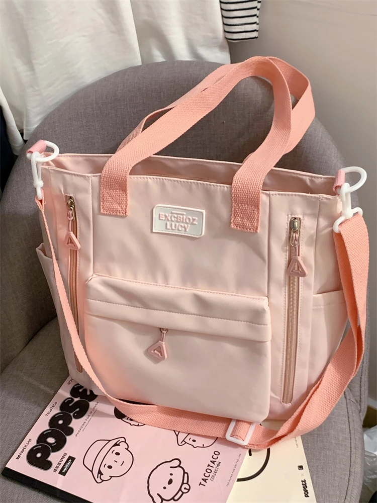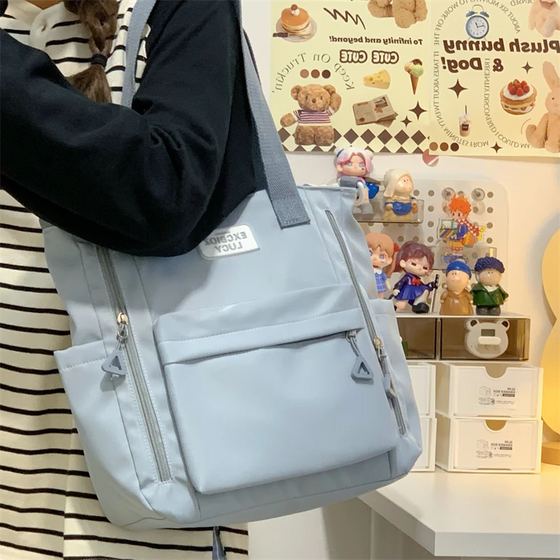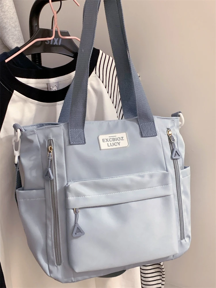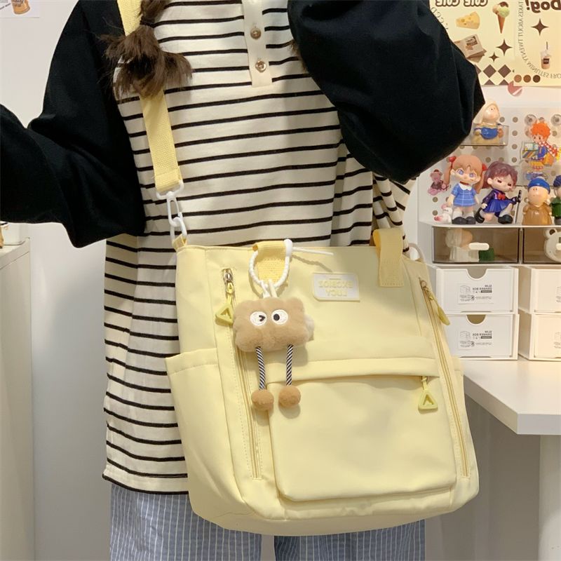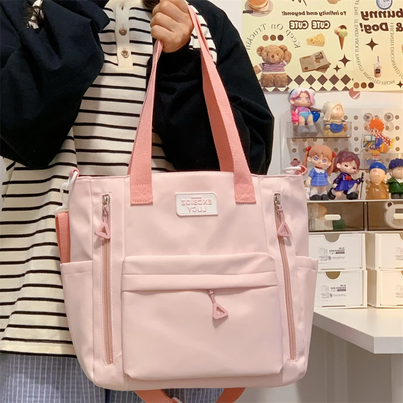 ins奶油色简约纯色百搭通勤单肩托特包学生大容量手提上课斜挎包