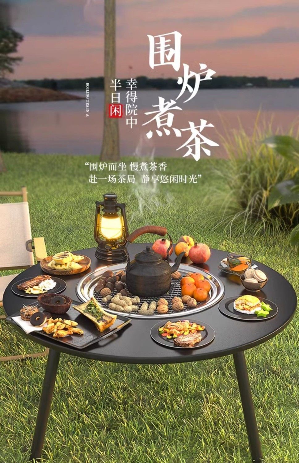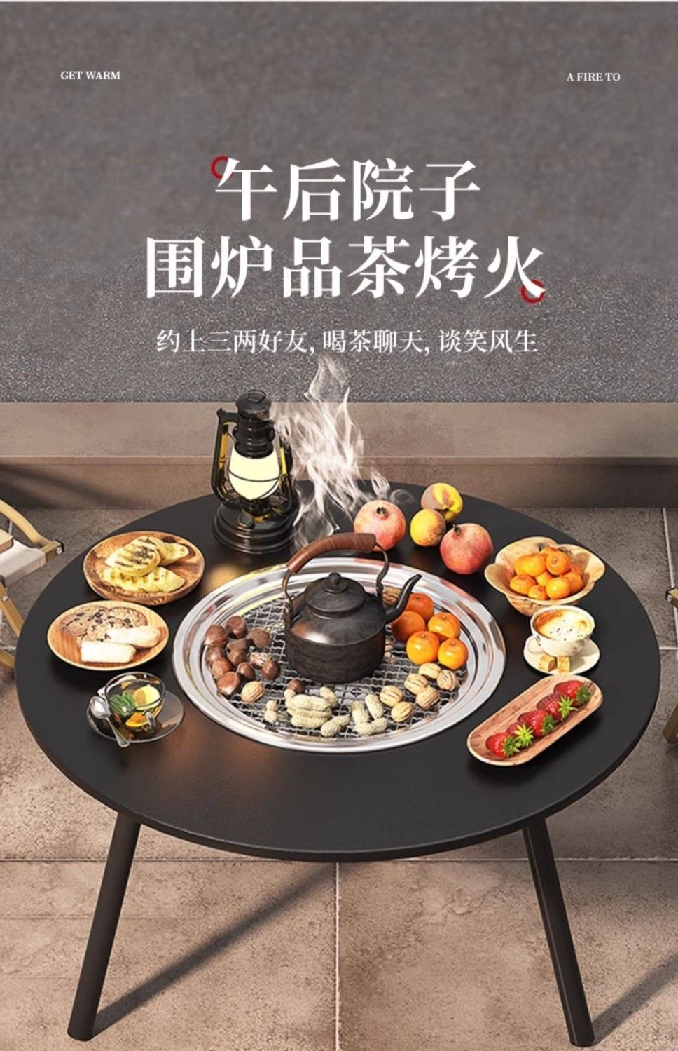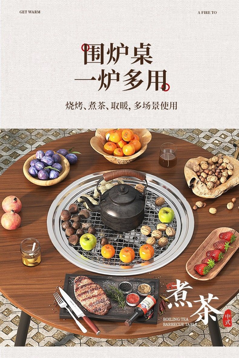 围炉煮茶烤火炉套装器具全套便携户外烧烤庭院烧烤炉套装家用器具