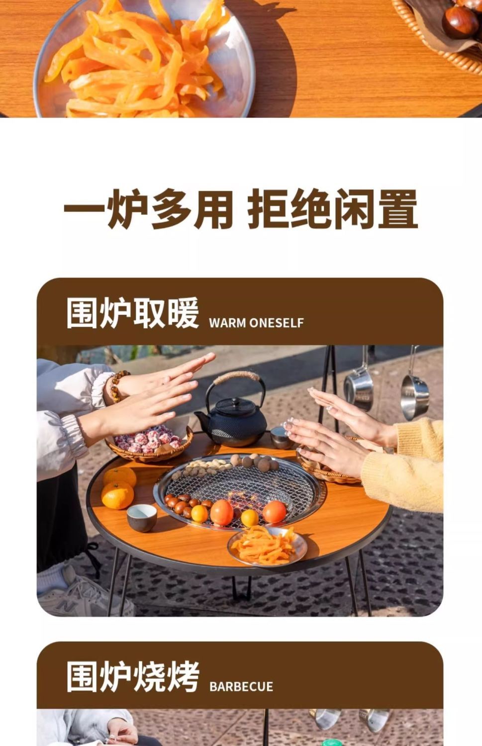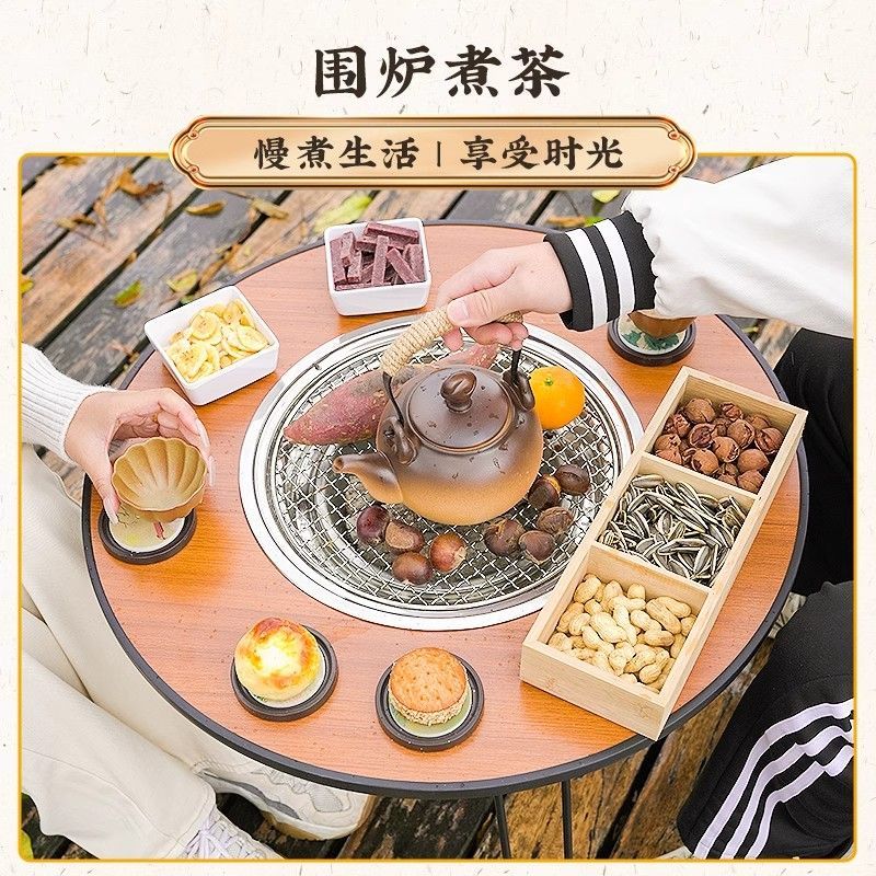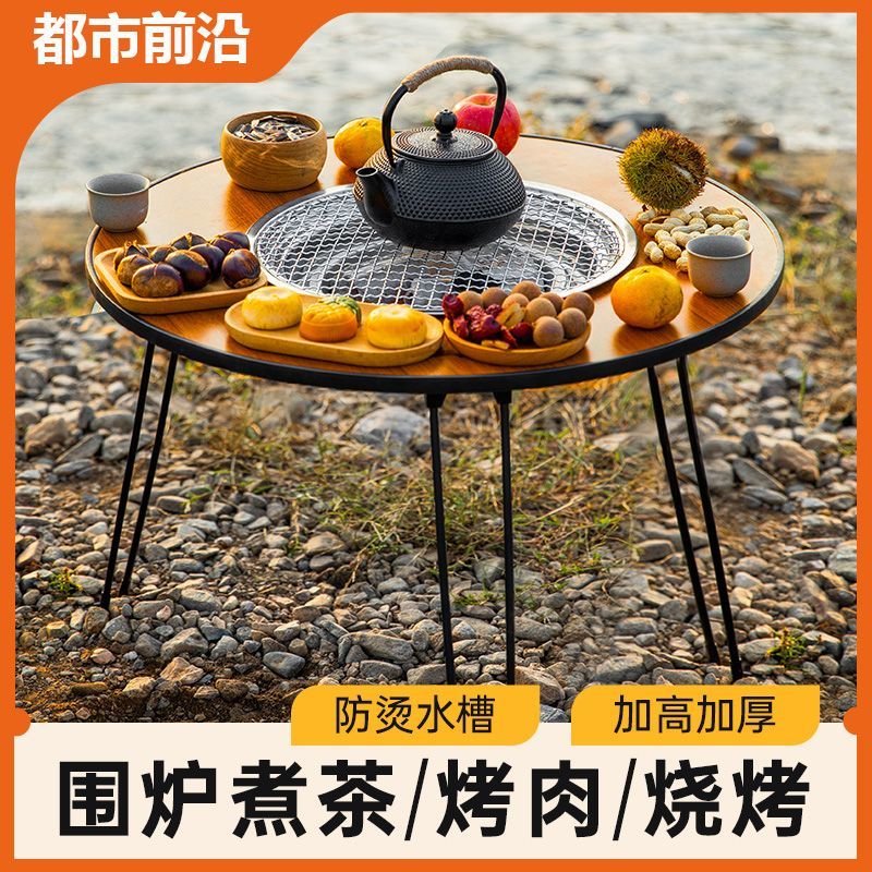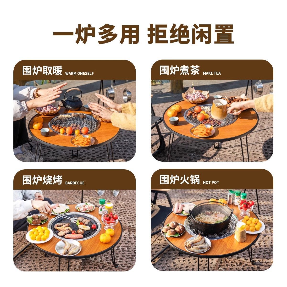 户外桌子围炉煮茶家用烧烤炉烤肉桌庭院室内便携式折叠炭烤炉套装