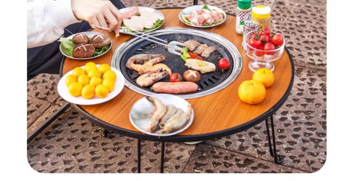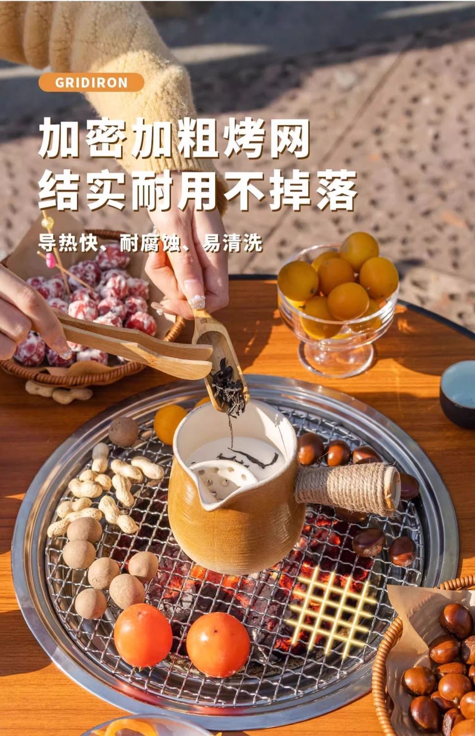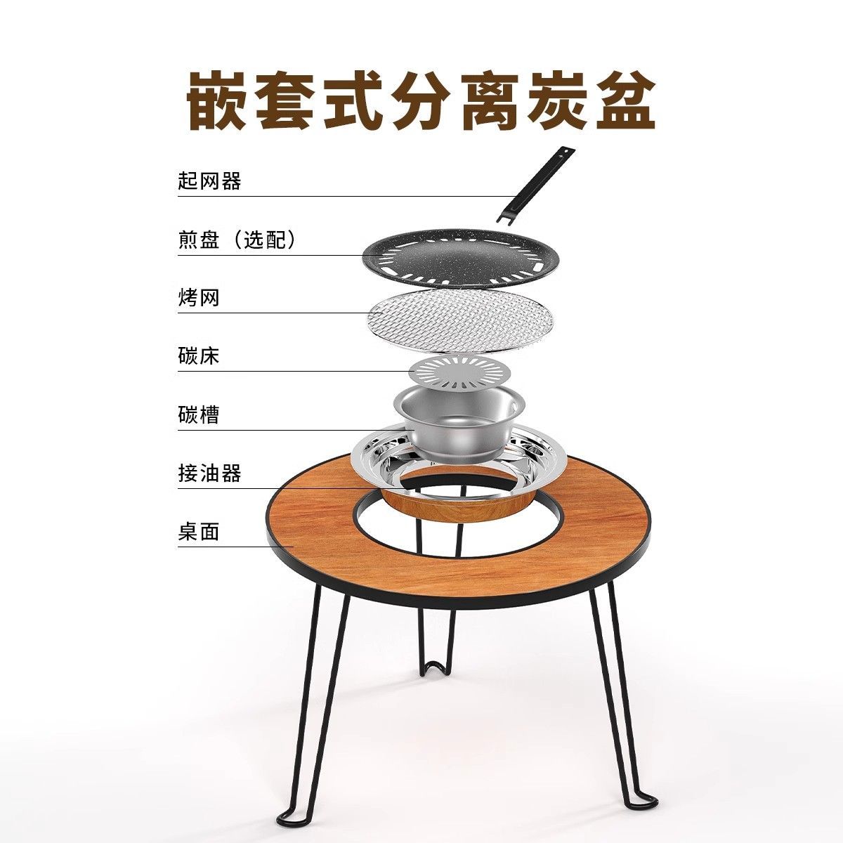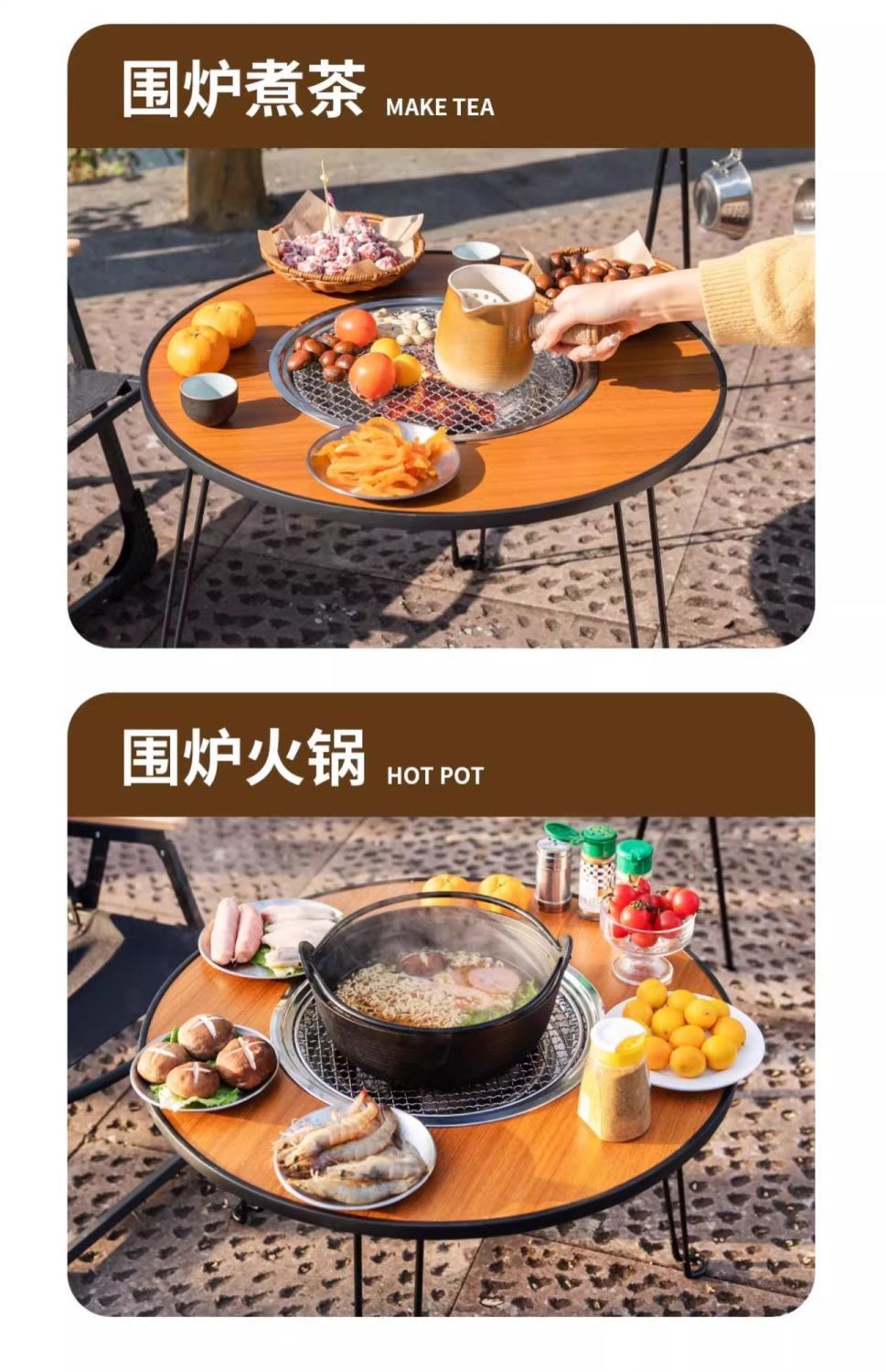 户外桌子围炉煮茶家用烧烤炉烤肉桌庭院室内便携式折叠炭烤炉套装