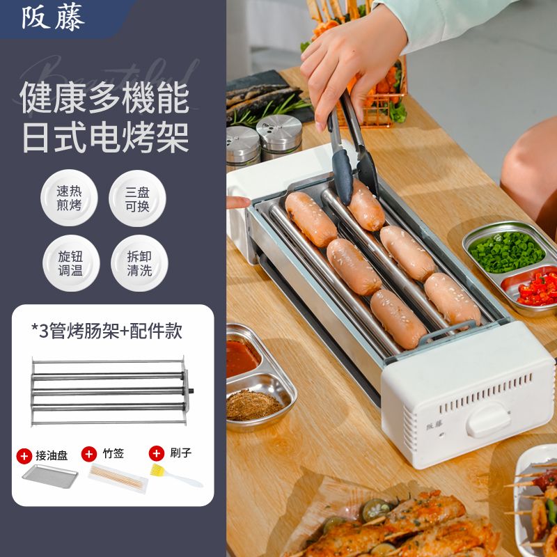 阪藤烤肠机家用小型宿舍全自动热狗机多功能三合一电烧烤盘架香肠
