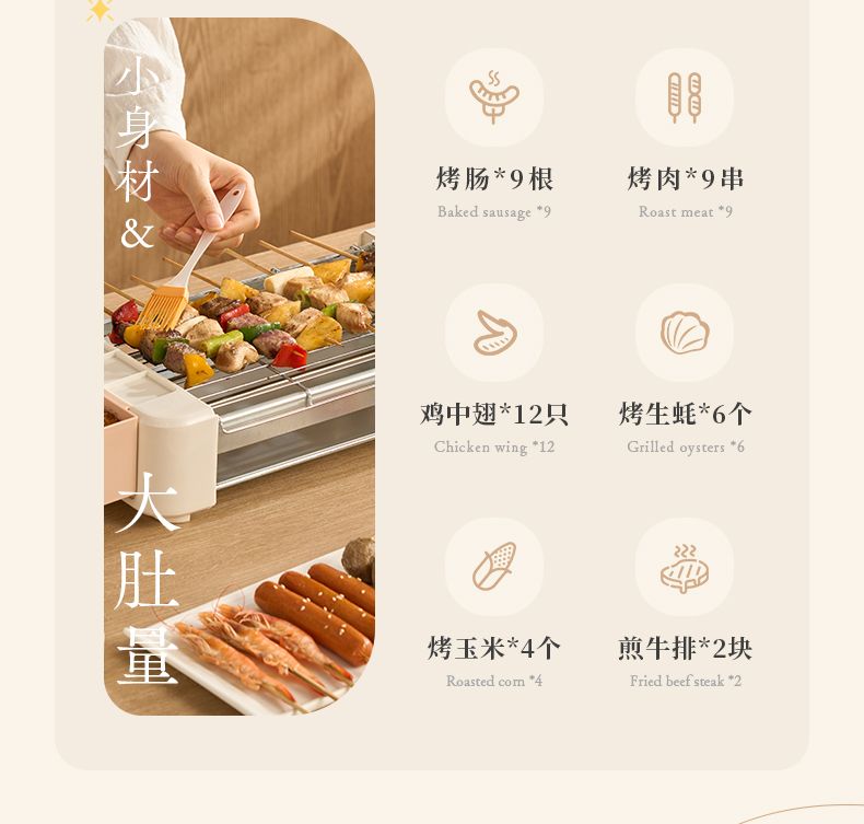 | 6-tube host send grill rack oil drip pan griddle barbecue wire 2 condiment dispenser bamboo stick(6管主机送烤架接油盘煎烤盘烧烤网2调味盒竹签) | USD $48.09 | 999999 piece available |