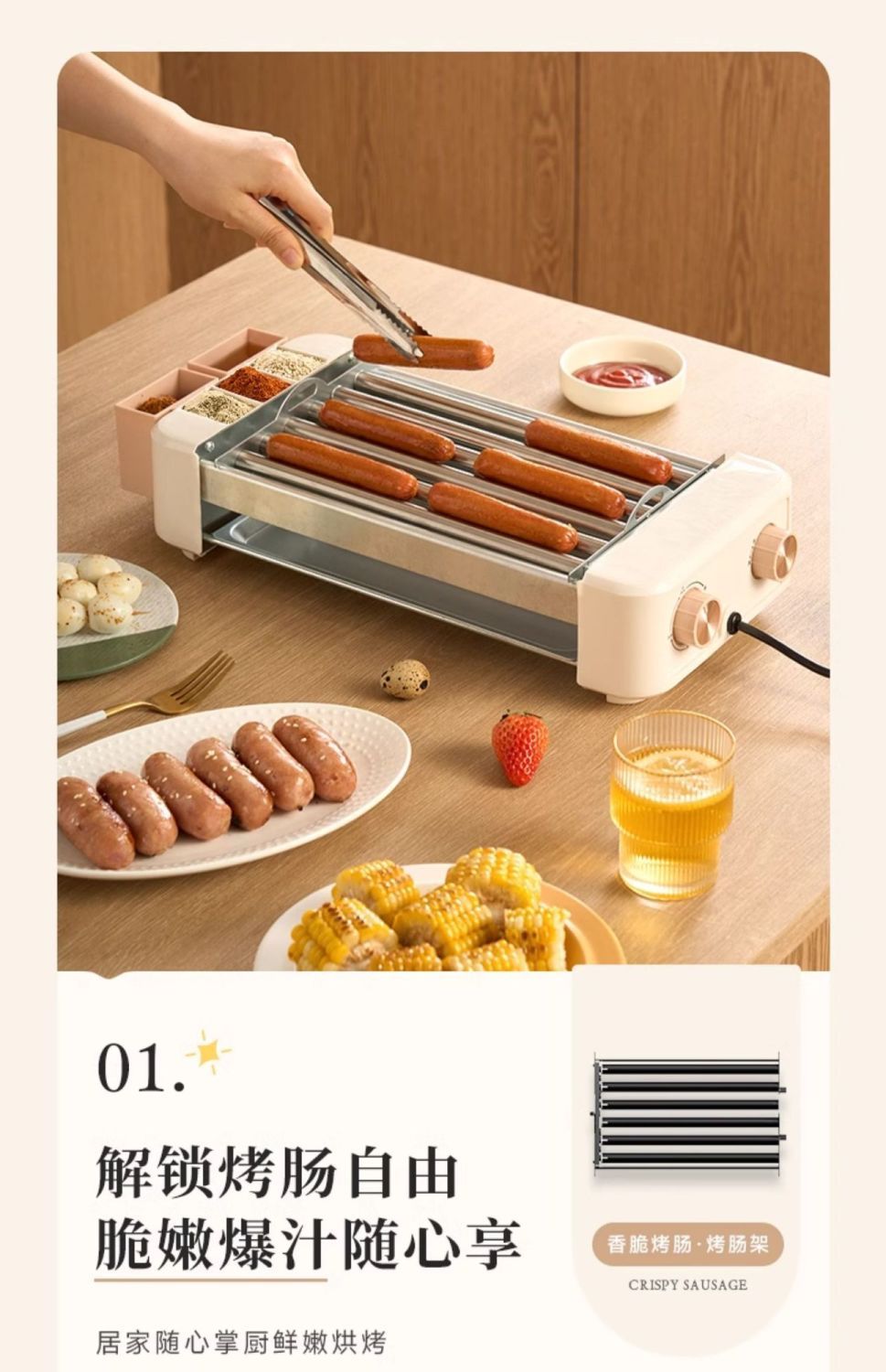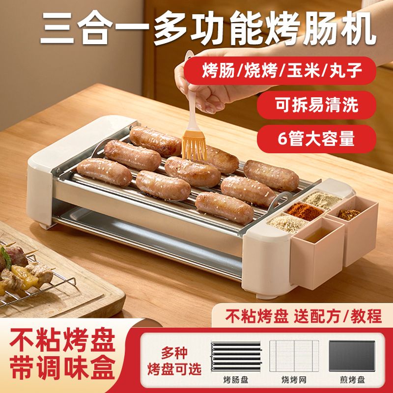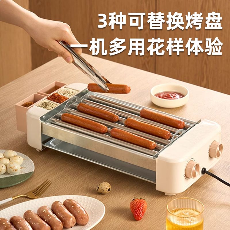全自动商用热狗机多功能三合一电烧烤盘架香肠烤肠机家用小型宿舍