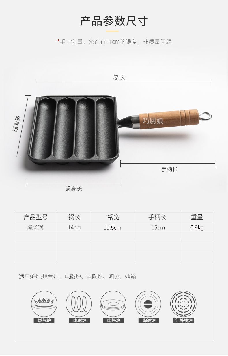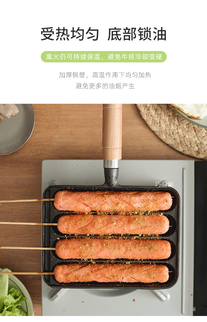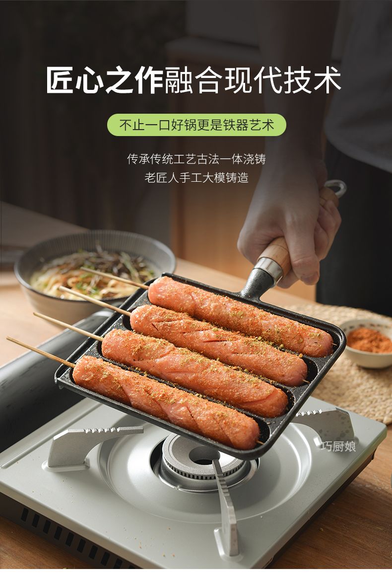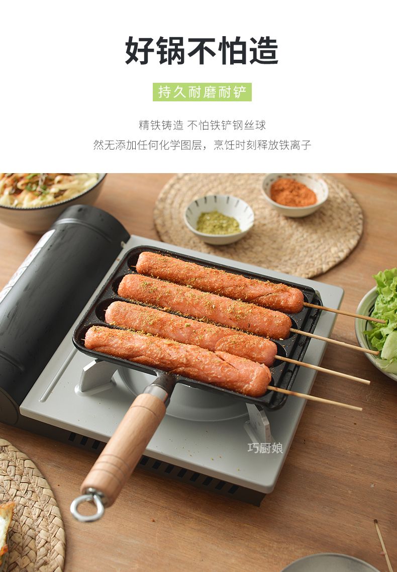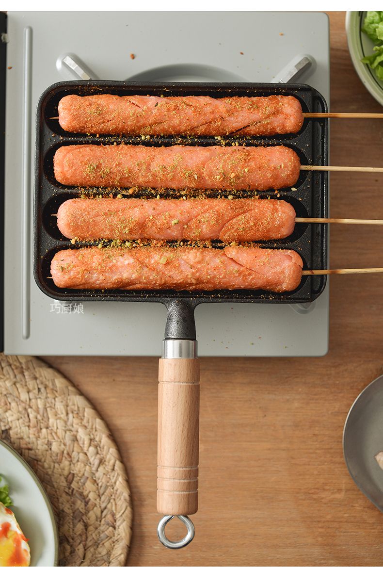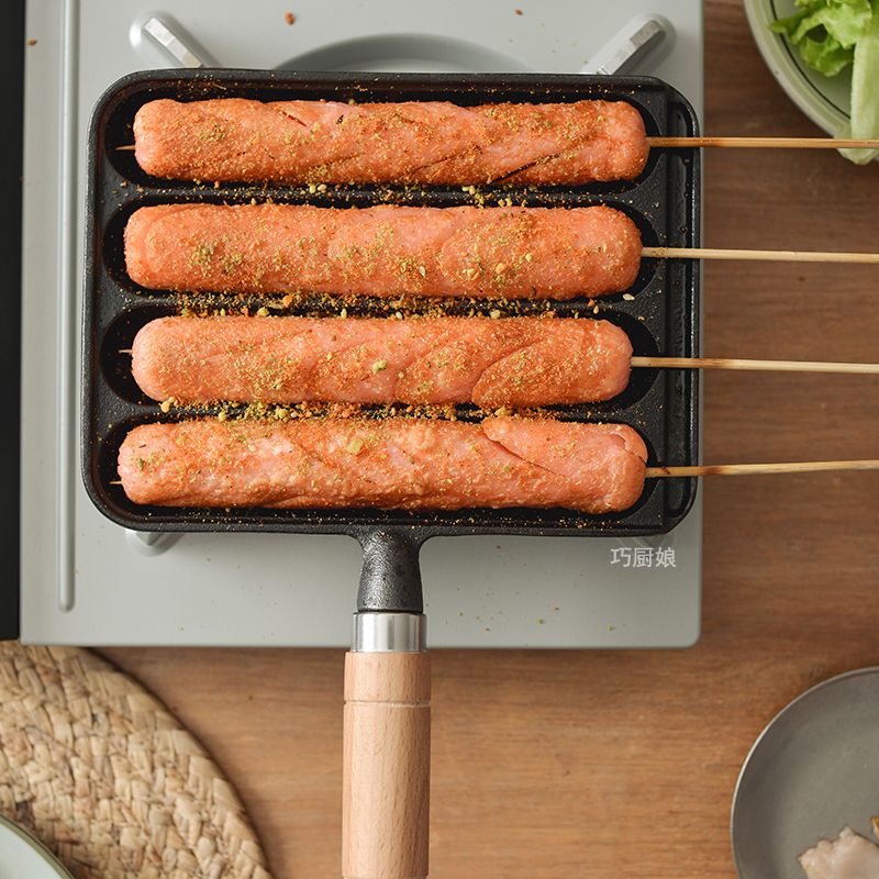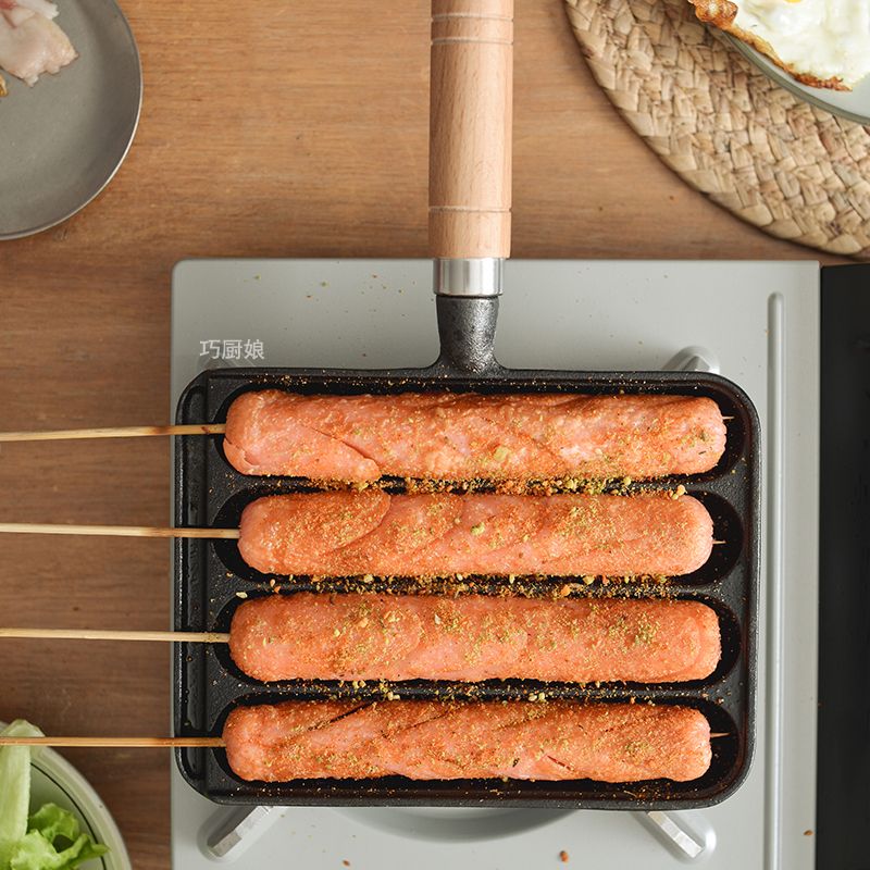 新款铸铁家用烤肠锅烤肠模具烤盘烤鱼豆腐烤章鱼小丸子烤肠机家用