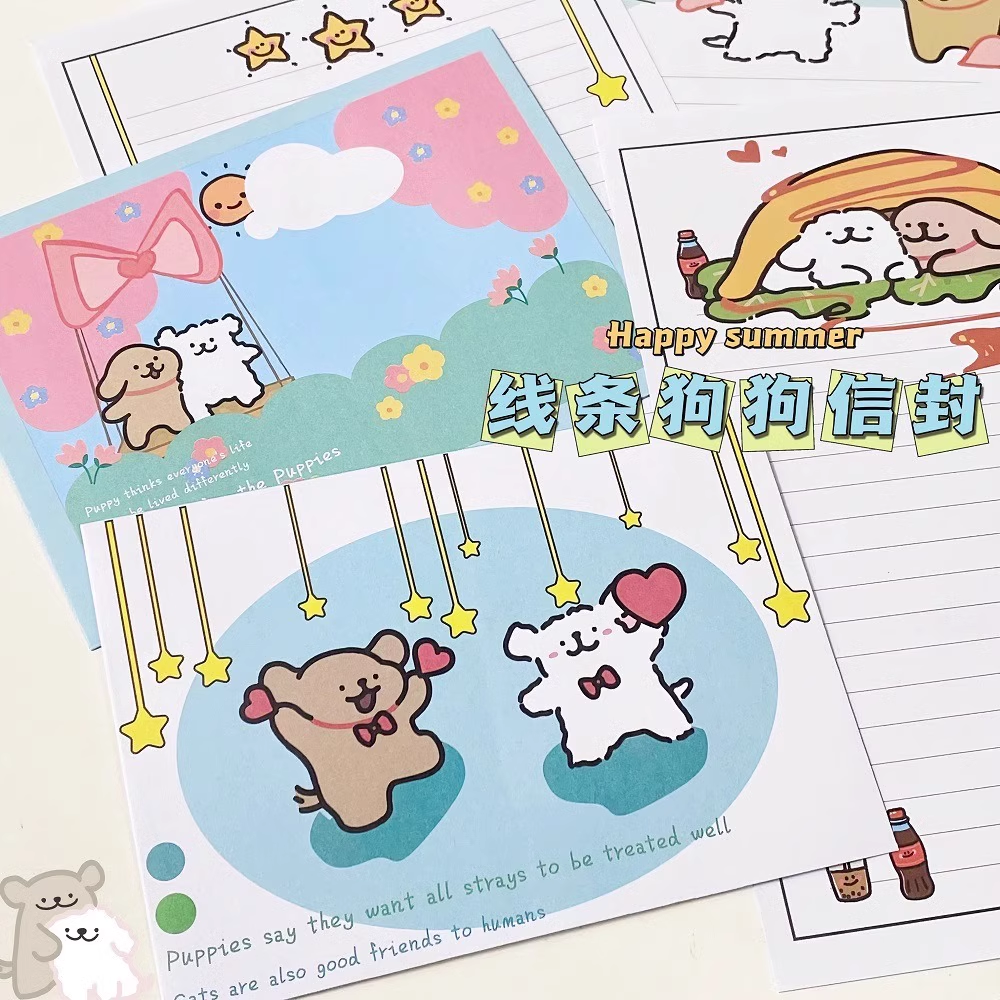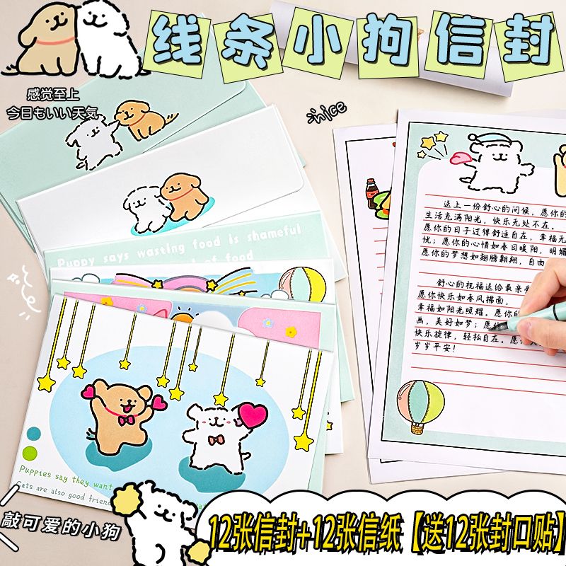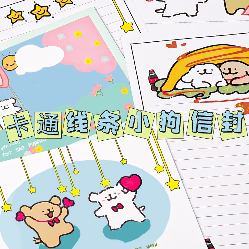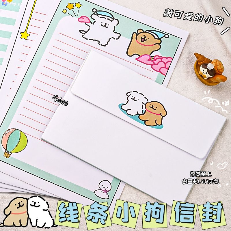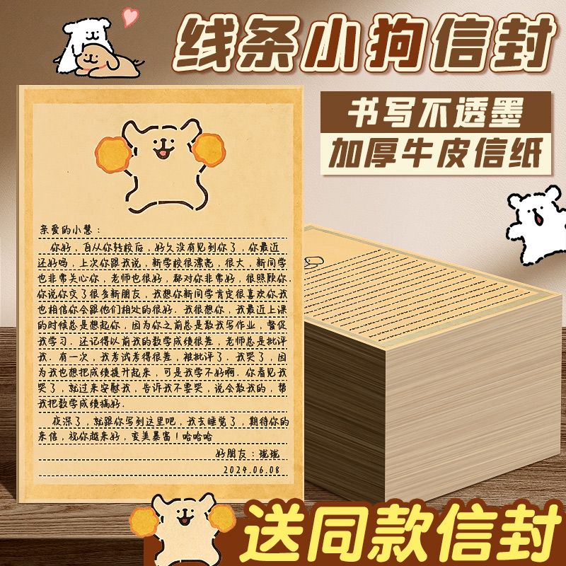 线条小狗信纸牛皮纸可爱信封生日贺卡送孩子和女友信纸浪漫高颜值