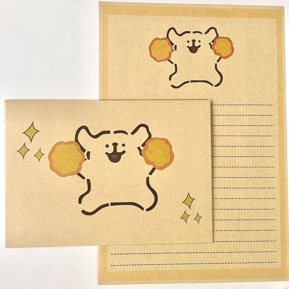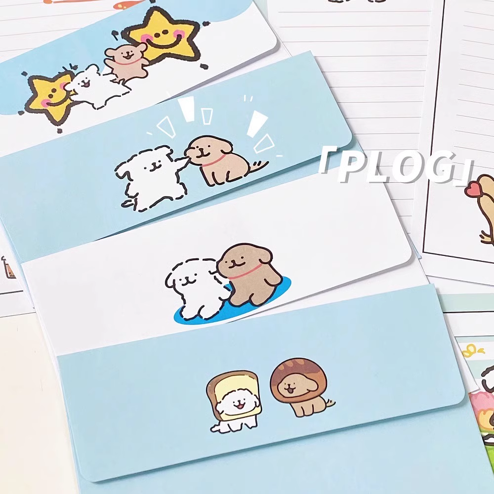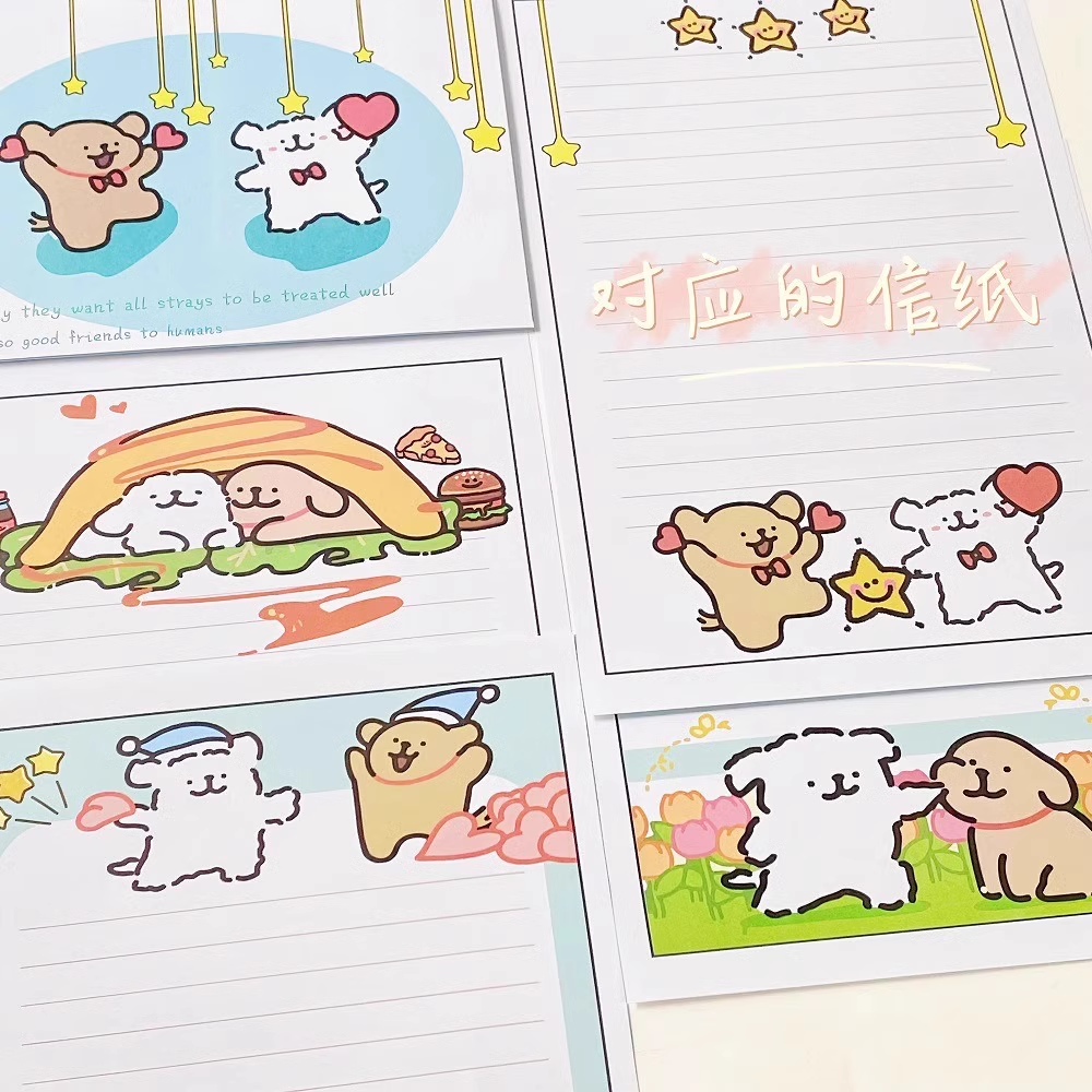 线条小狗信纸牛皮纸可爱信封生日贺卡送孩子和女友信纸浪漫高颜值