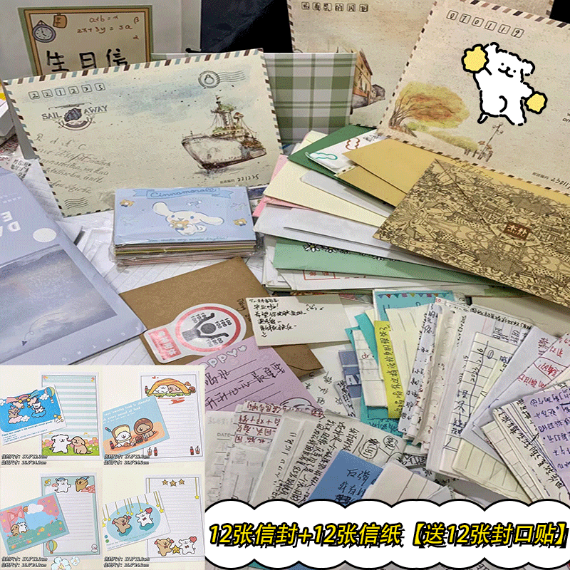 | buy two get one free: 12 envelopes +12 stationery [12 sealing paste]](买二送一:12张信封+12信纸【12封口贴】) | USD $6.09 | 999999 piece available |