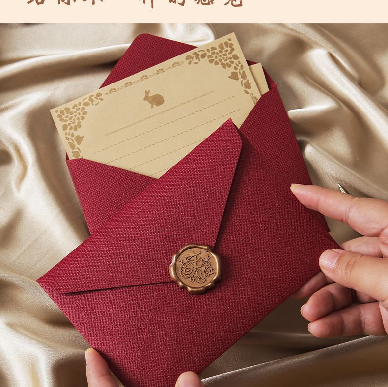 麻布信封信纸套装ins中国情书生日贺卡请柬明信片火漆复古