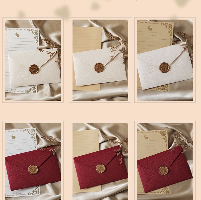 | A款-3个信封+10信纸+3火漆贴(红麻布) | USD $3.05 | 999999 piece available |