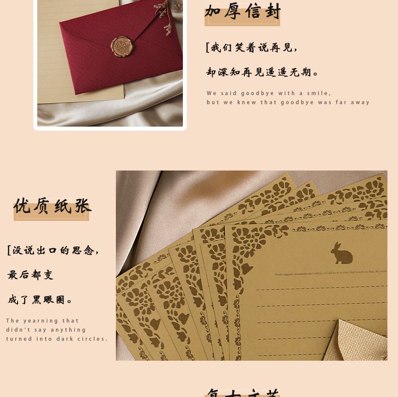 | type a- 3 envelopes +10 stationery +3 fire paint stickers (white linen)(A款-3个信封+10信纸+3火漆贴(白麻布)) | USD $3.05 | 999999 piece available |