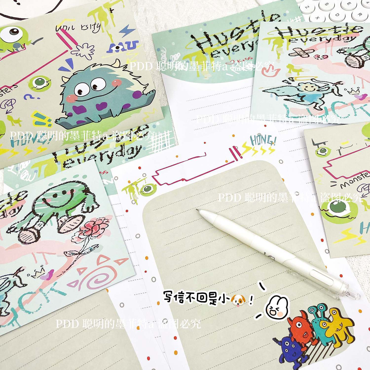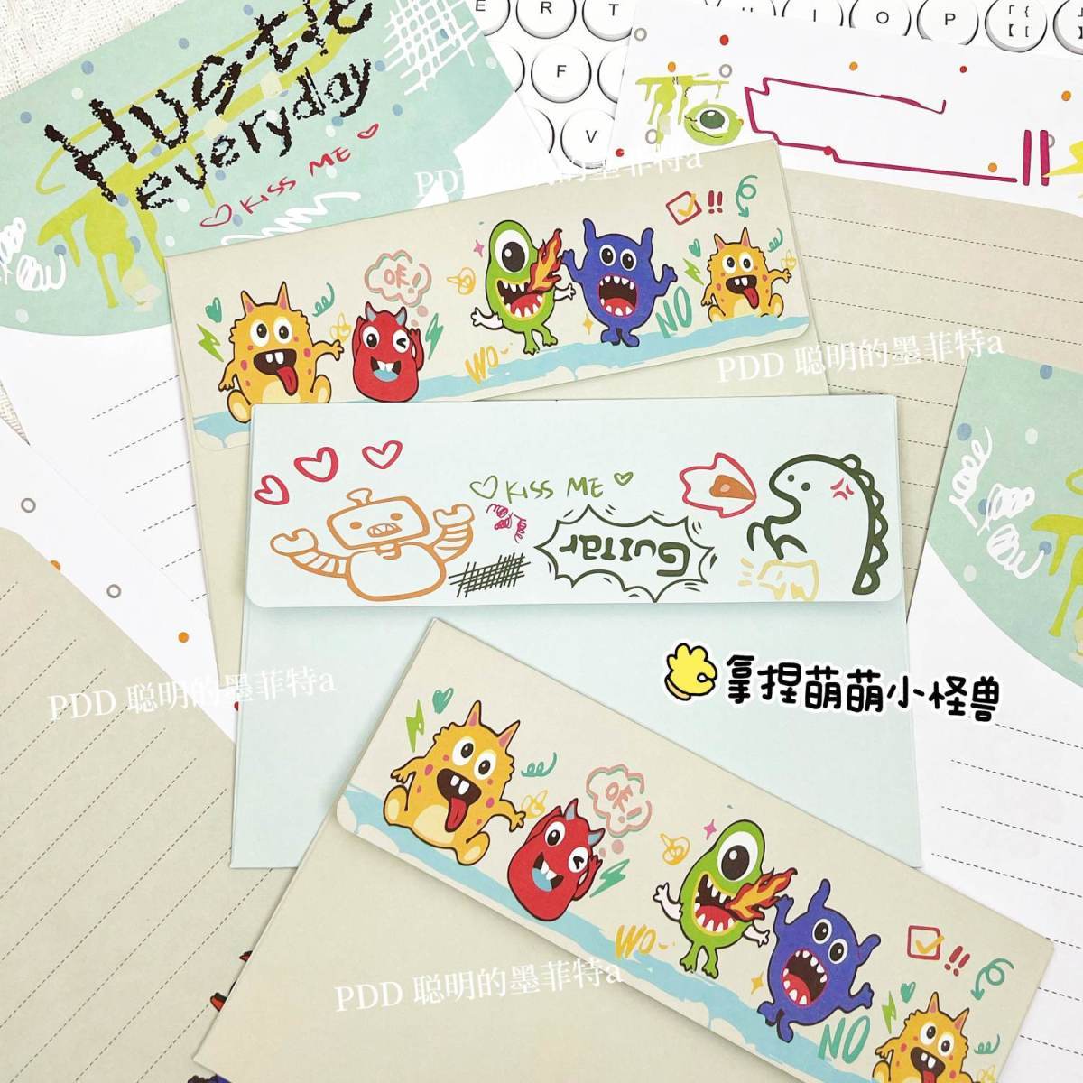 丑萌怪兽信封信纸套装生日纪念学生手写祝福留言七夕信笺礼物高级