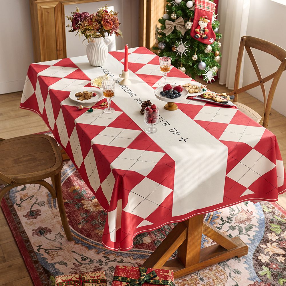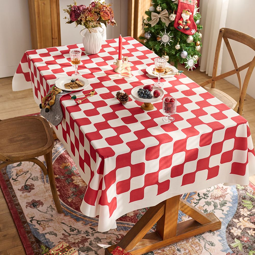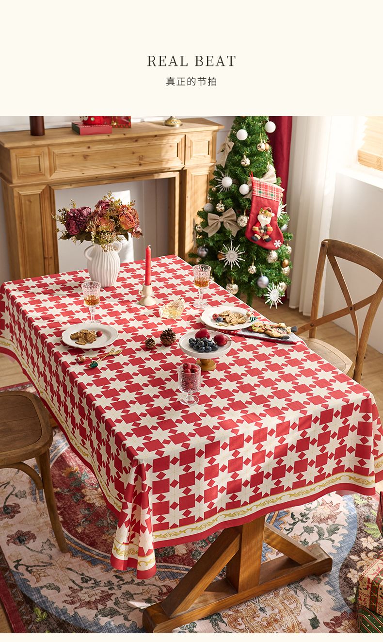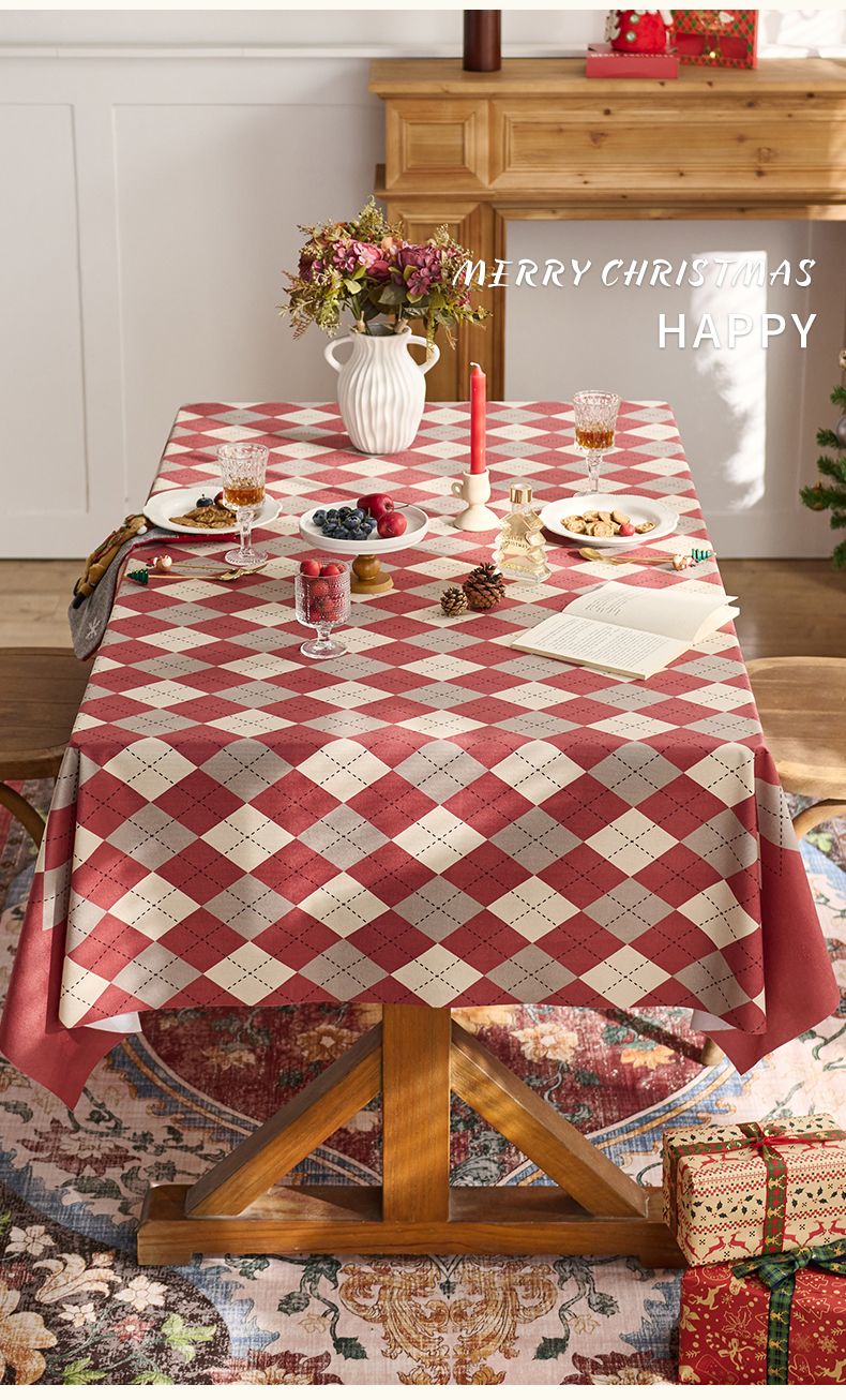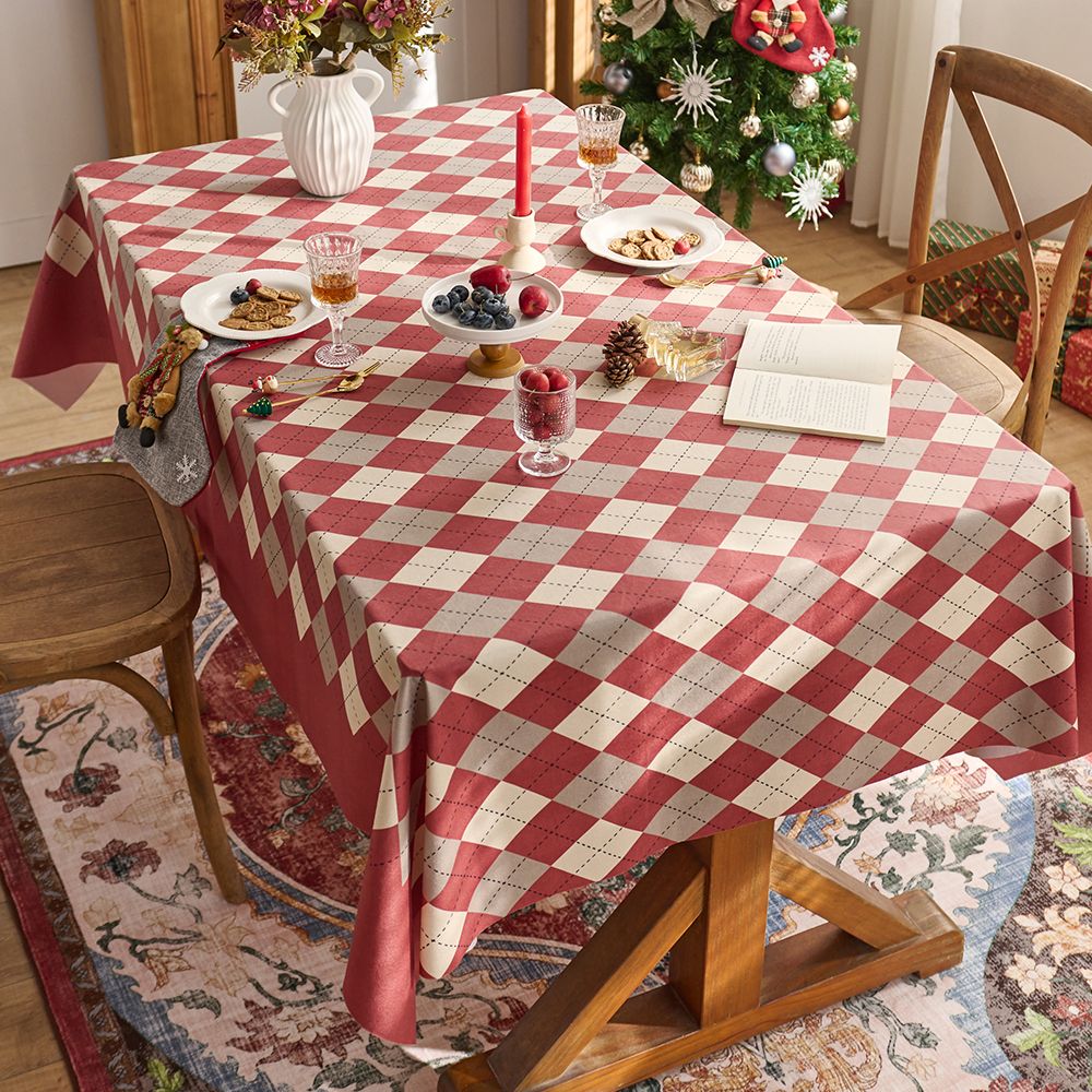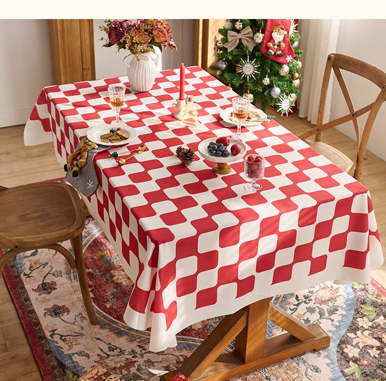 新年桌布红色喜庆圣诞节桌布氛围感桌布餐桌布格子布圣诞风装饰布