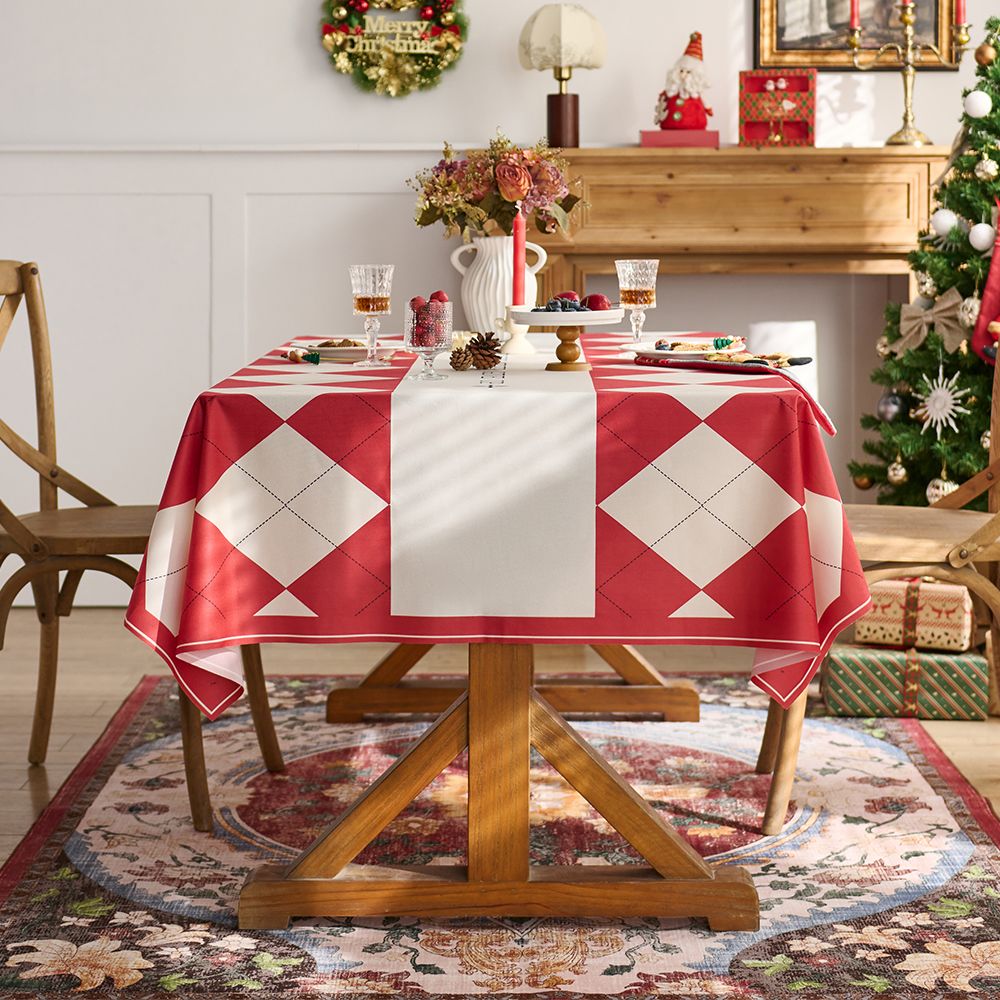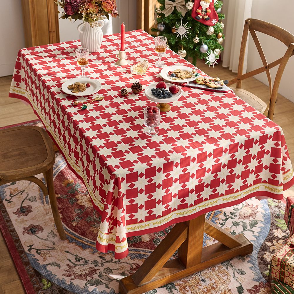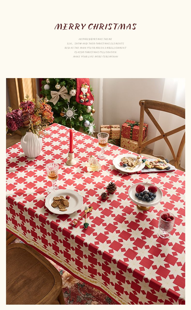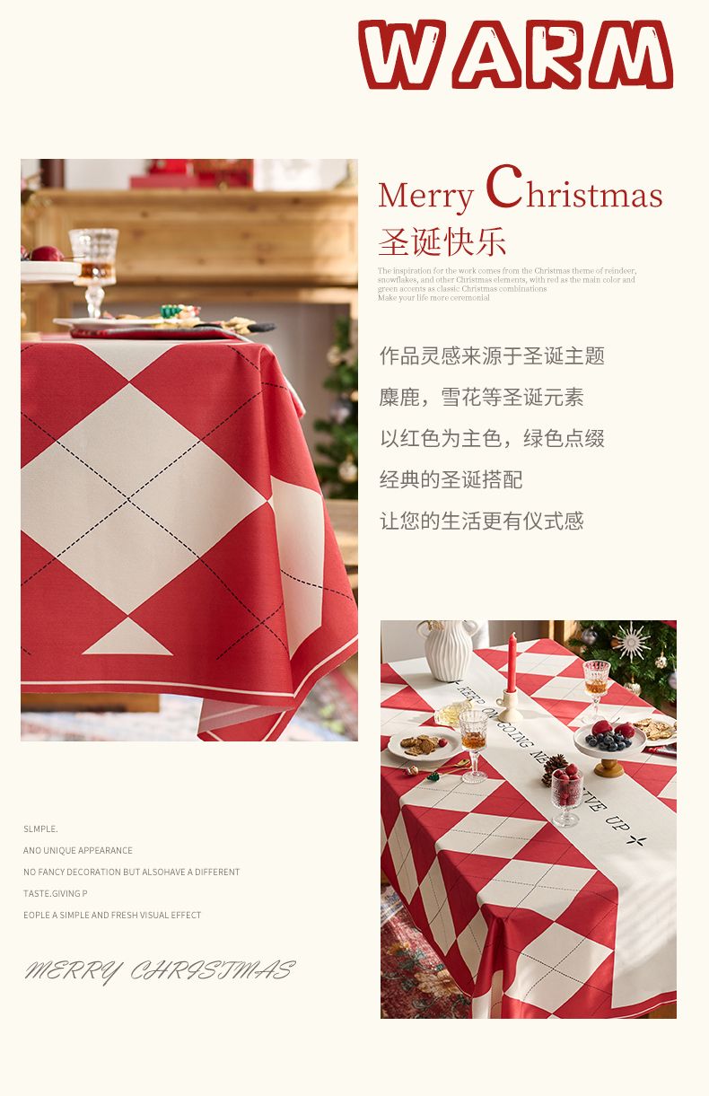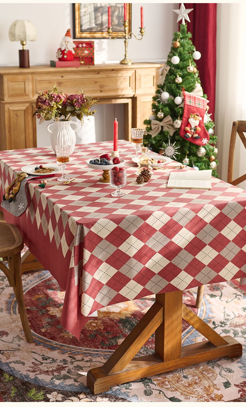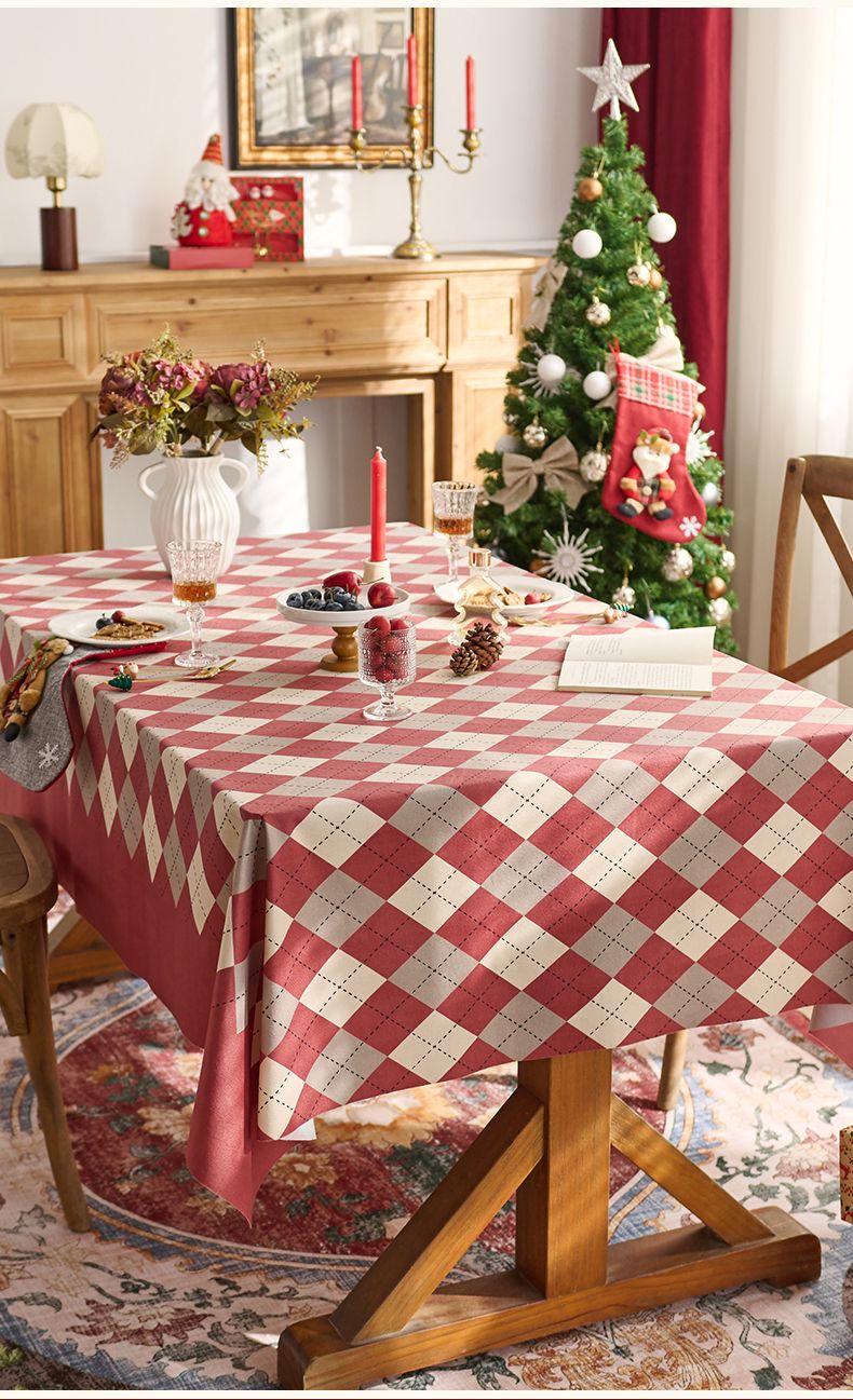 新年桌布红色喜庆圣诞节桌布氛围感桌布餐桌布格子布圣诞风装饰布