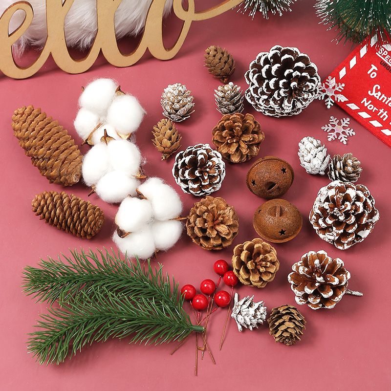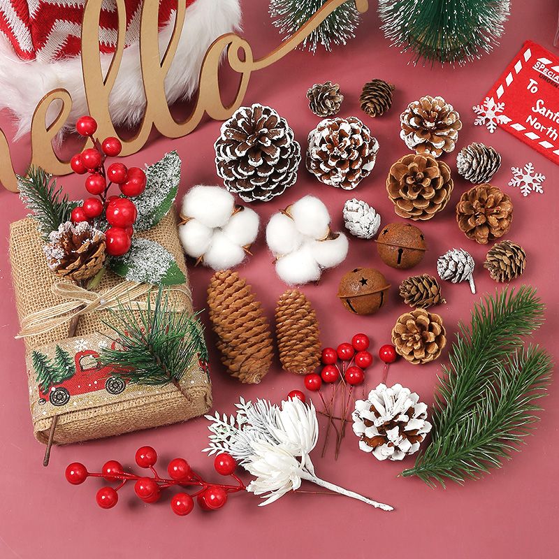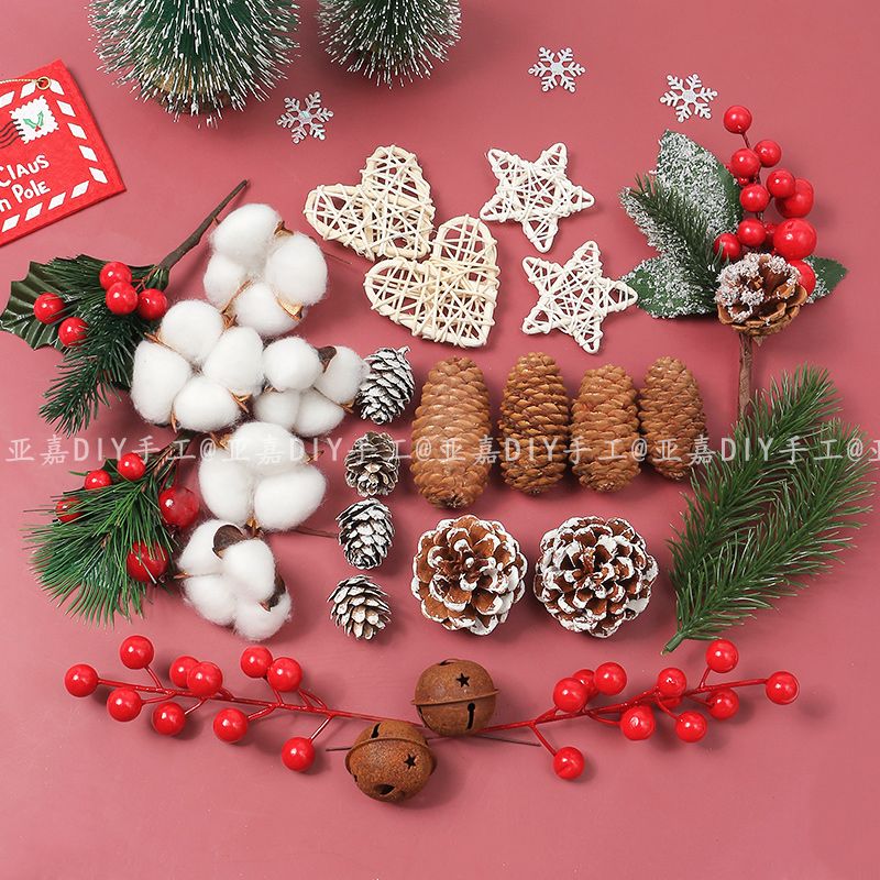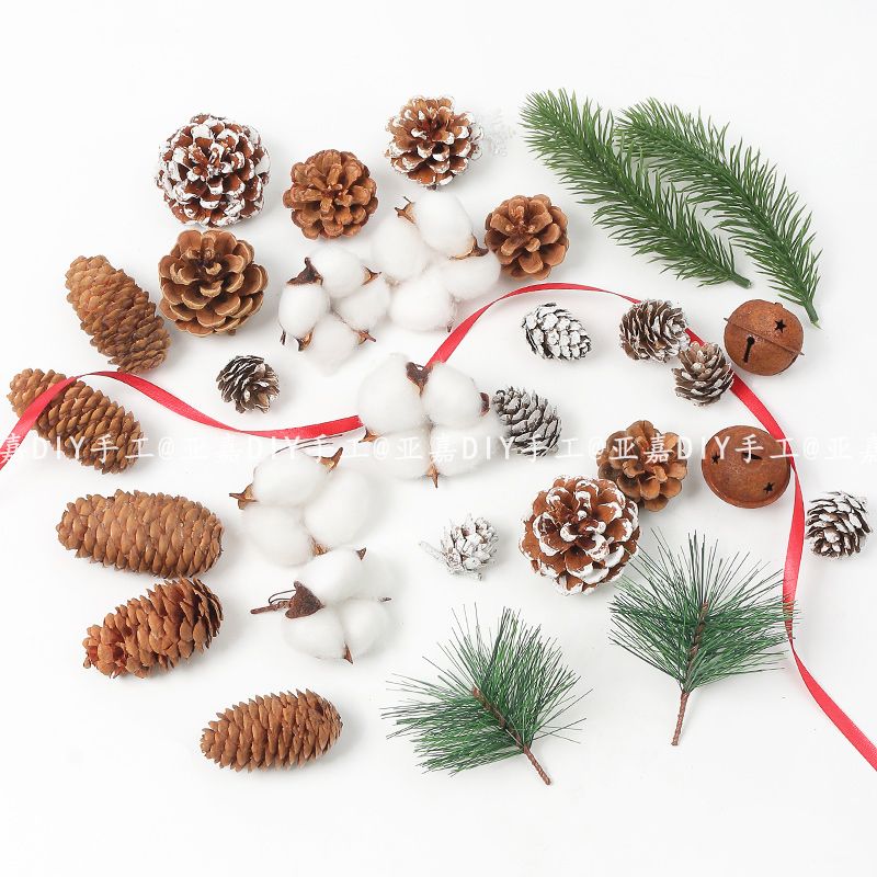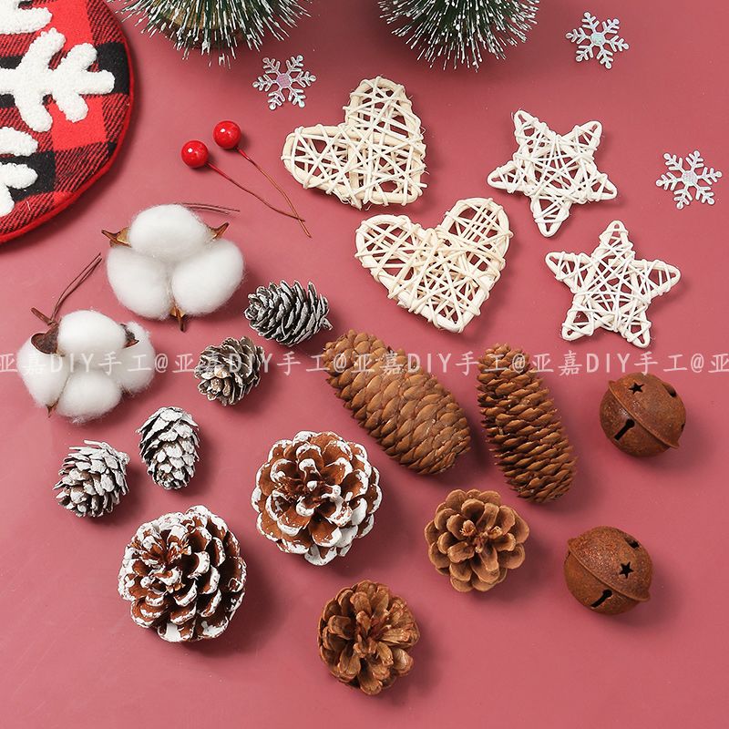 圣诞节装饰材料包 干花松果圣诞树 手工DIY礼物礼盒装饰 拍照道具