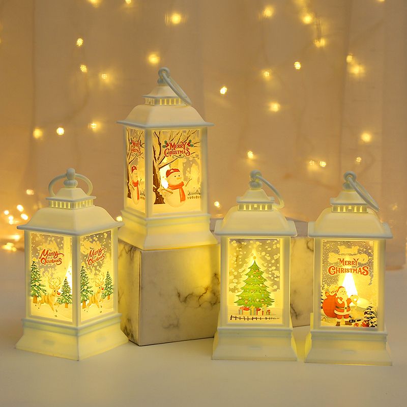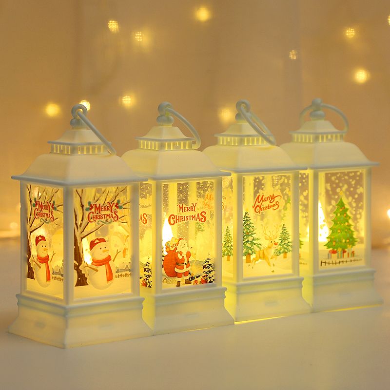 圣诞节装饰老人雪人发光油灯桌面小夜灯摆件手提风灯橱窗礼物