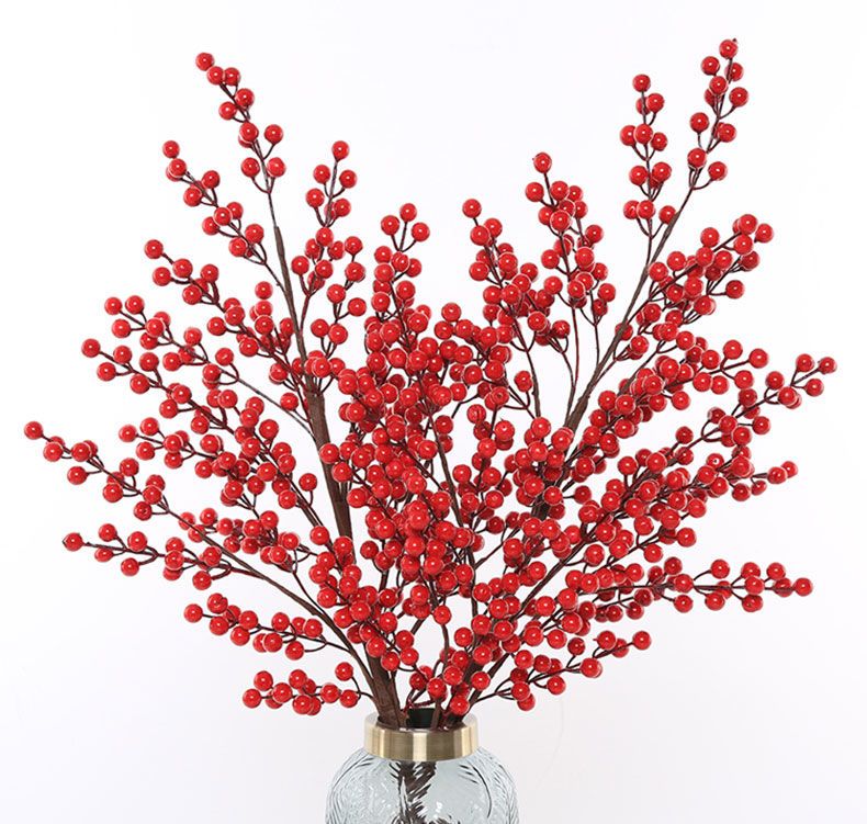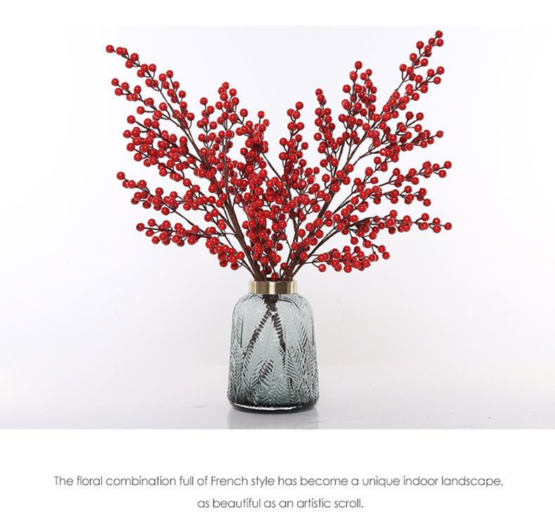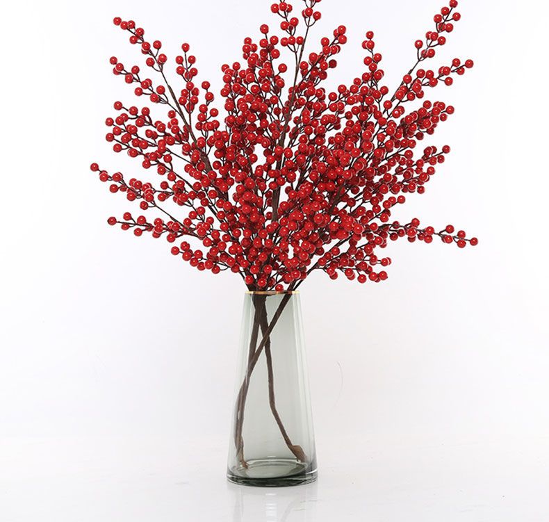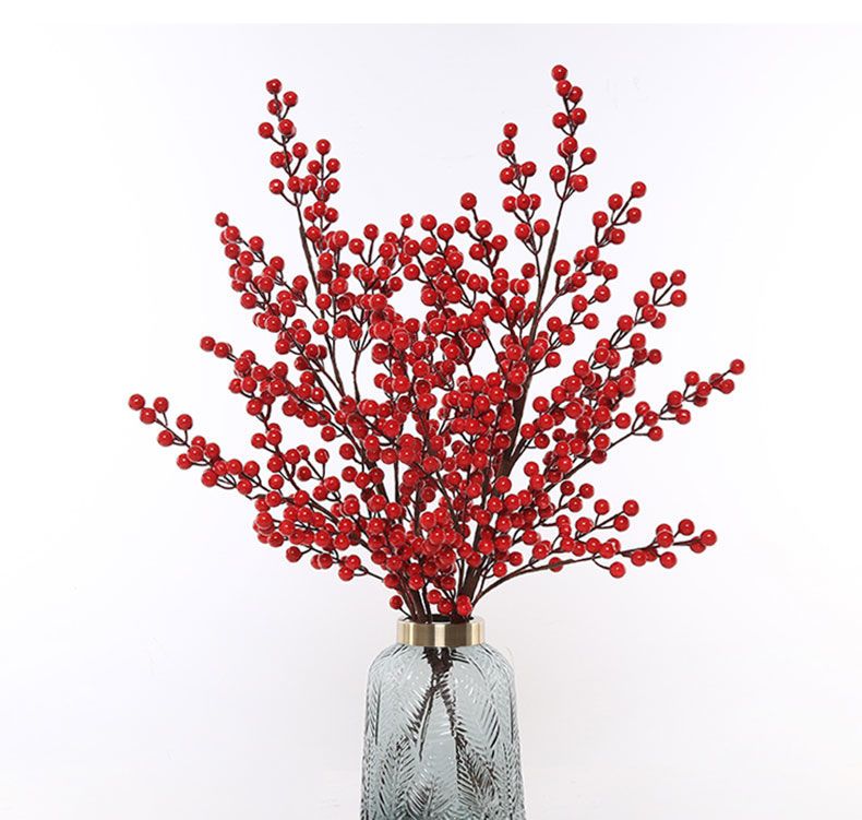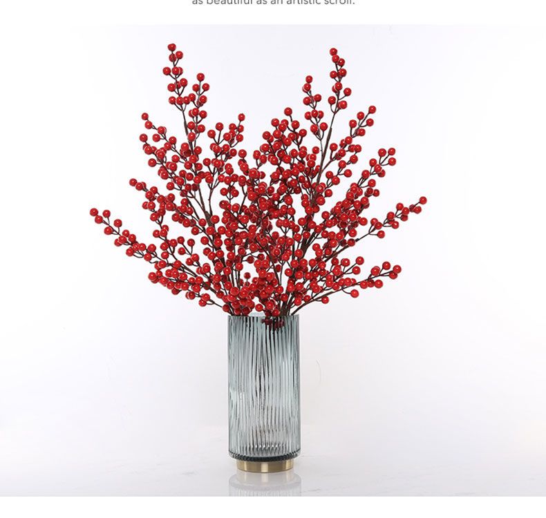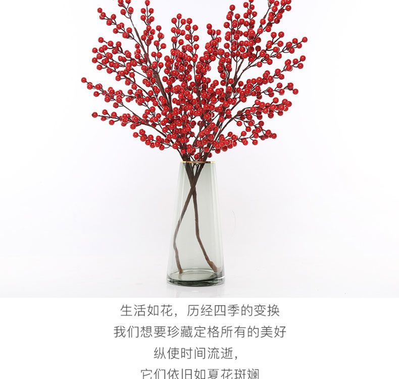 干花仿真花红果发财果相思红豆陶瓷玻璃花瓶插花圣诞新年落地摆设