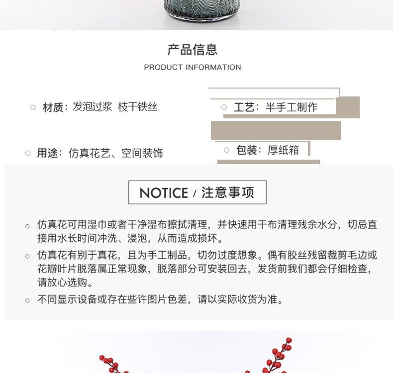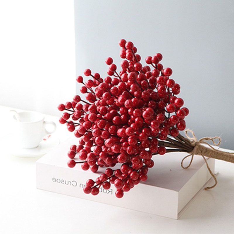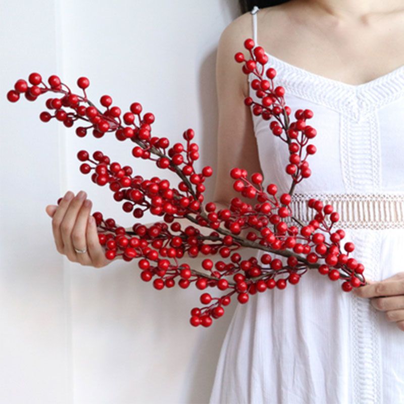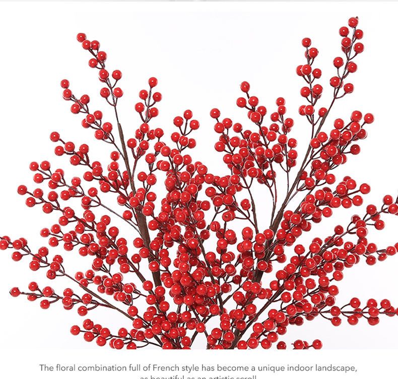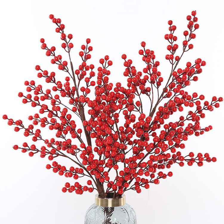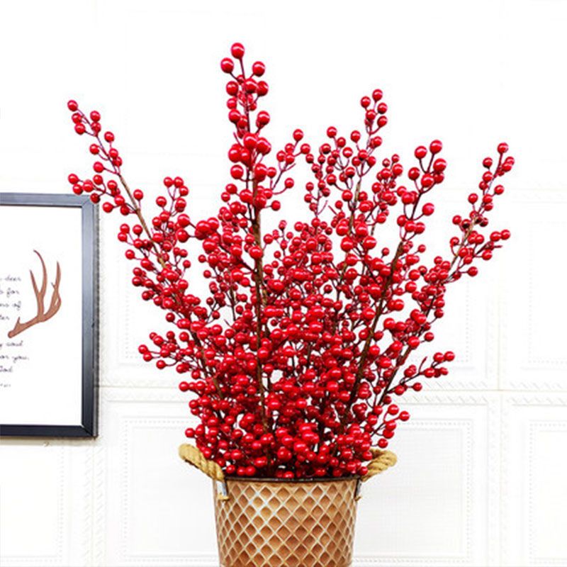 干花仿真花红果发财果相思红豆陶瓷玻璃花瓶插花圣诞新年落地摆设