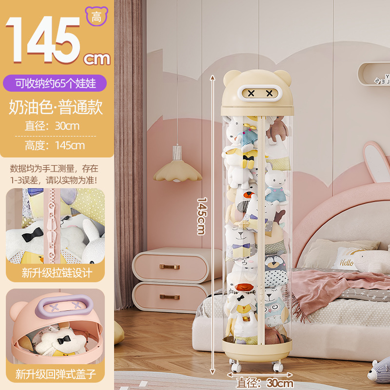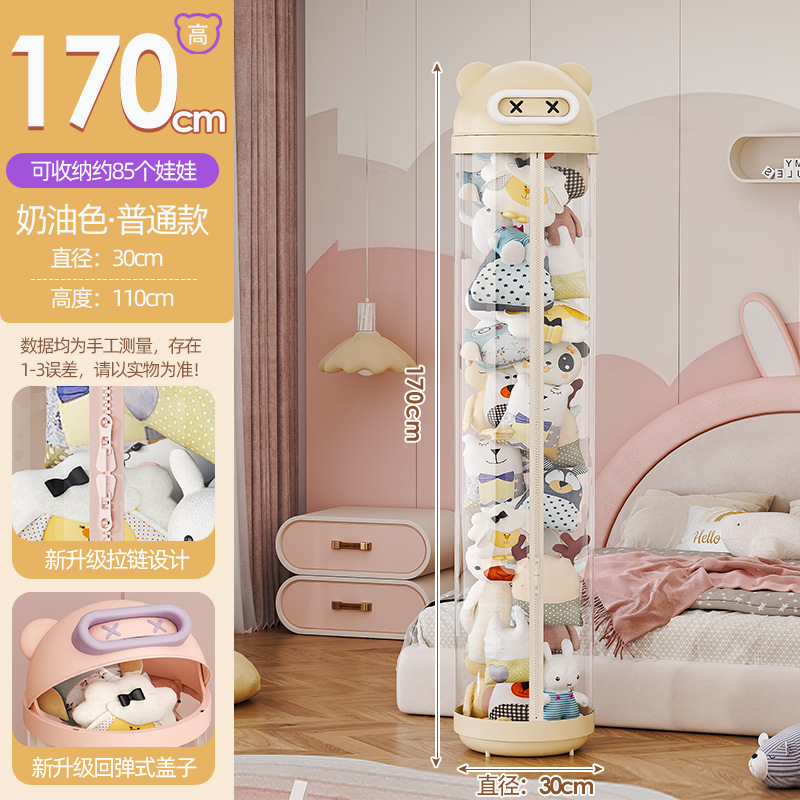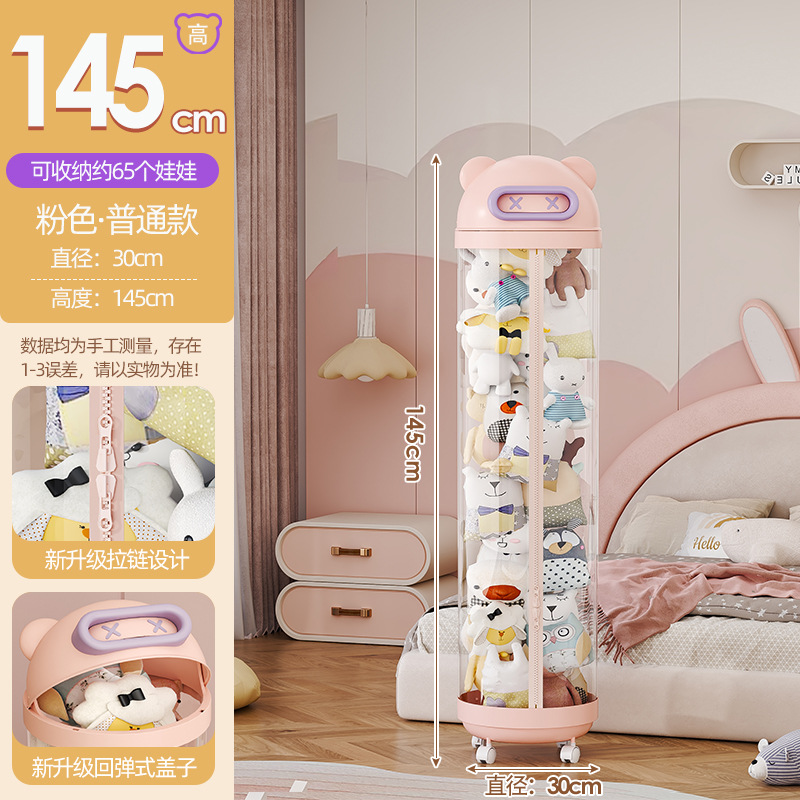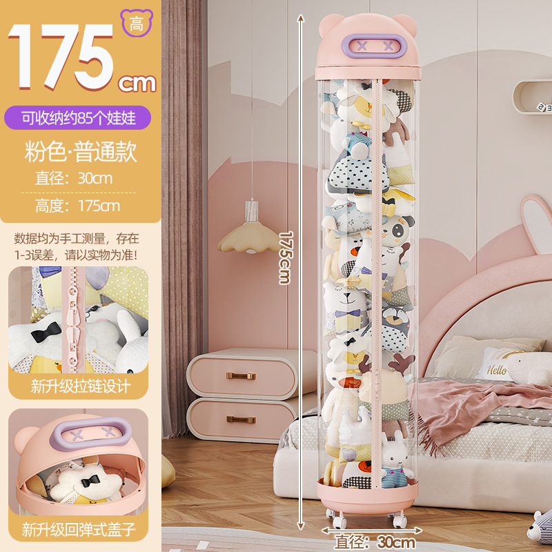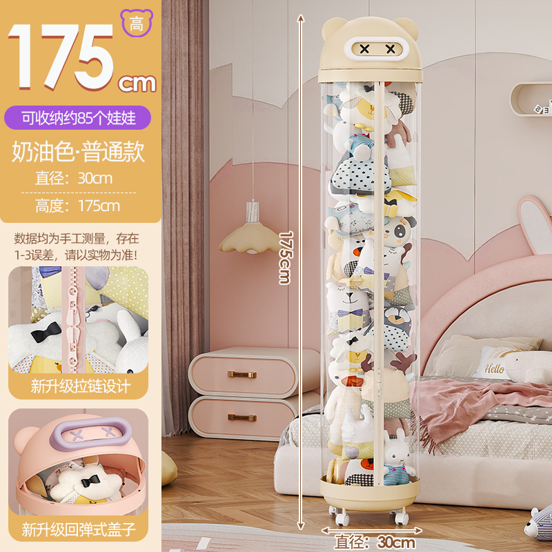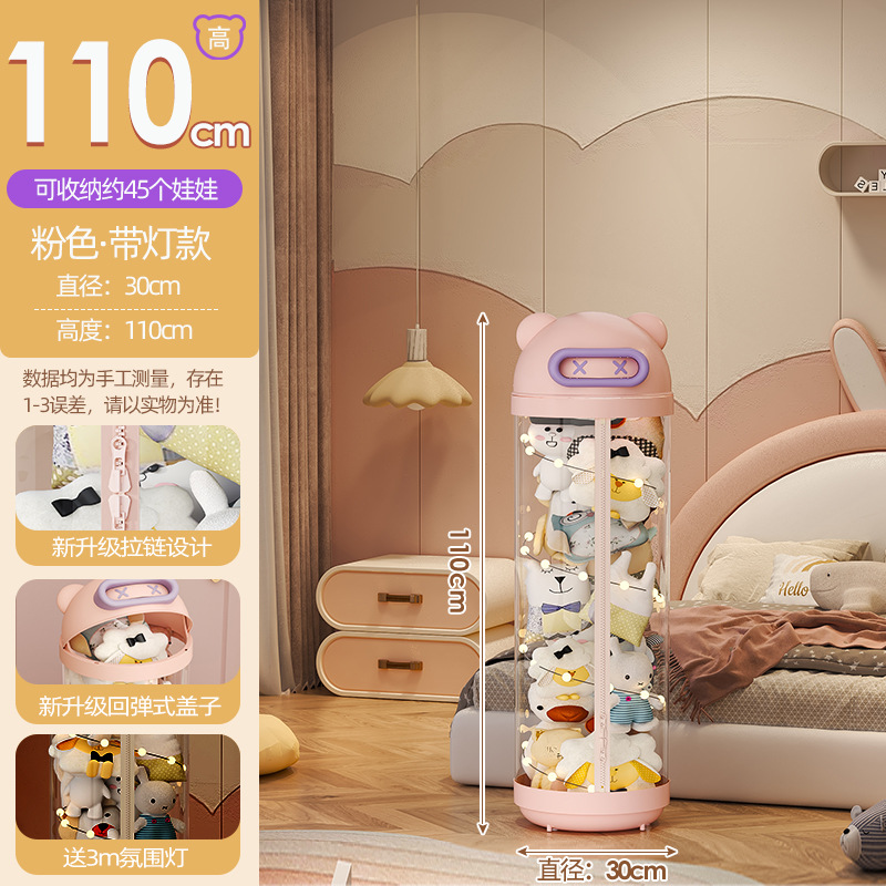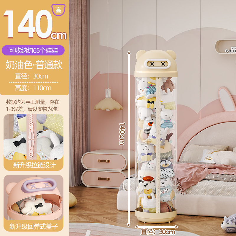 娃娃收纳桶高透明大容量儿童玩偶公仔收纳筒拉链款毛绒玩具收纳筐