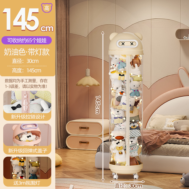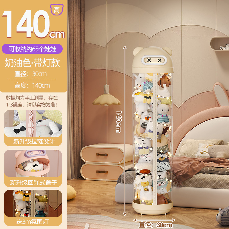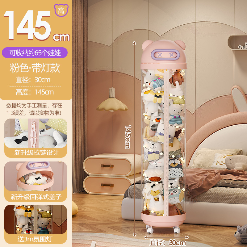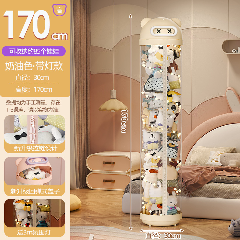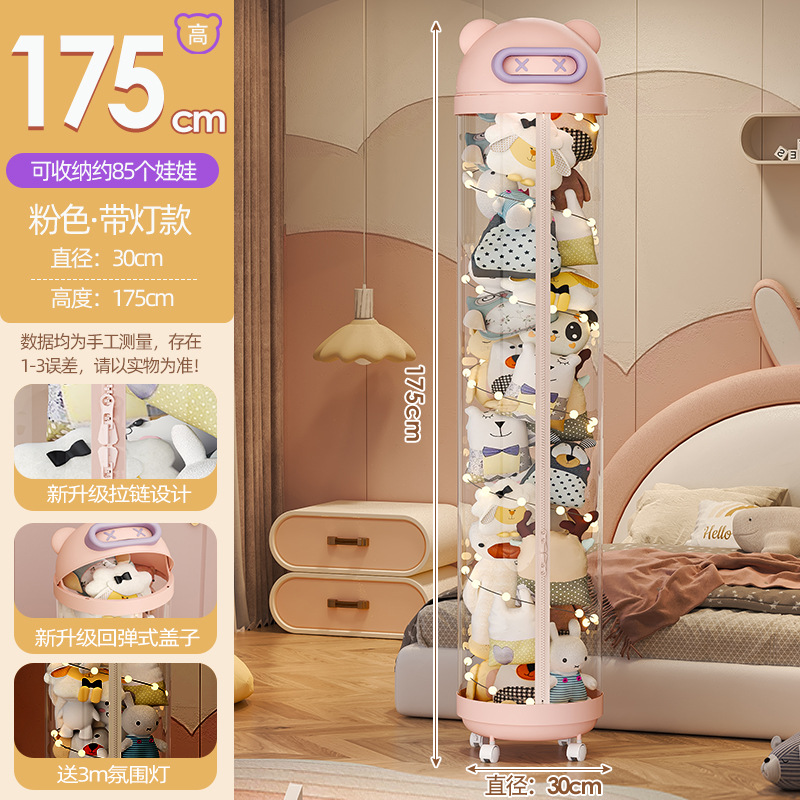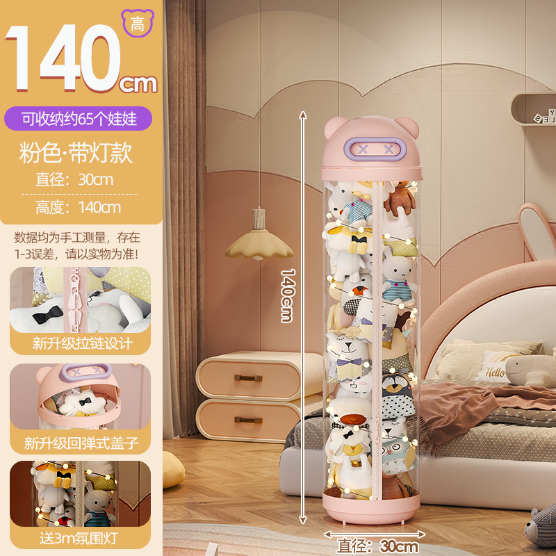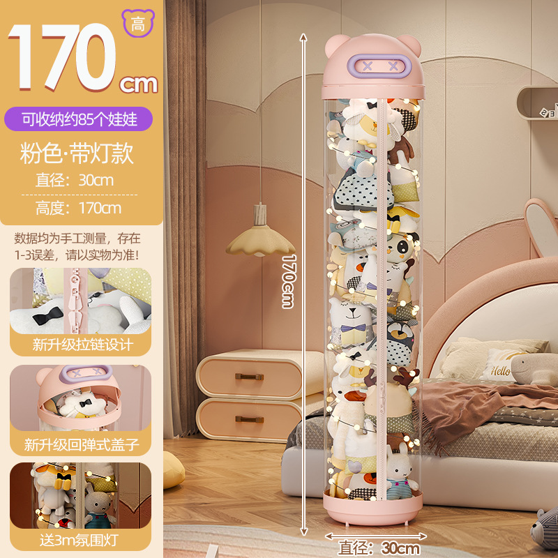 娃娃收纳桶高透明大容量儿童玩偶公仔收纳筒拉链款毛绒玩具收纳筐
