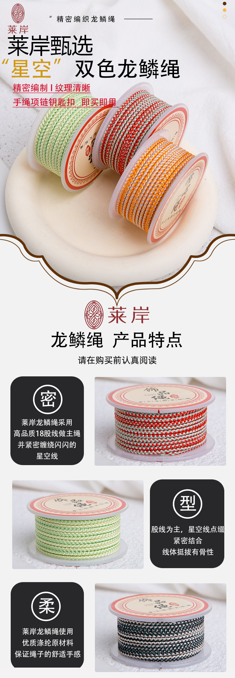 JR晶日厂家直销2.5mm龙纹成品绳星空双色耐磨 文玩手串穿珠