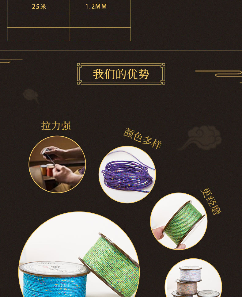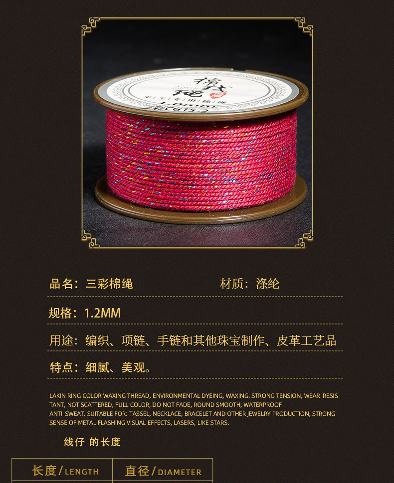 JR晶日厂家直销1.2MM藏式三彩棉线绳 文玩手串穿珠手工编织