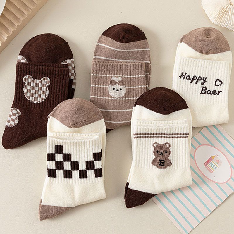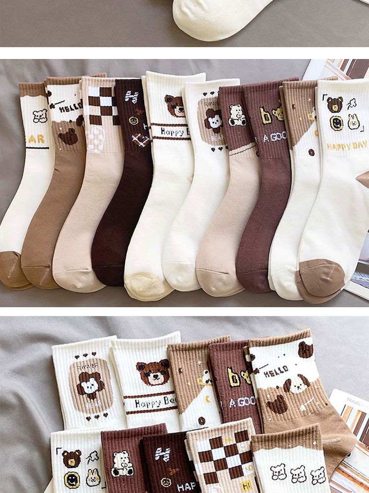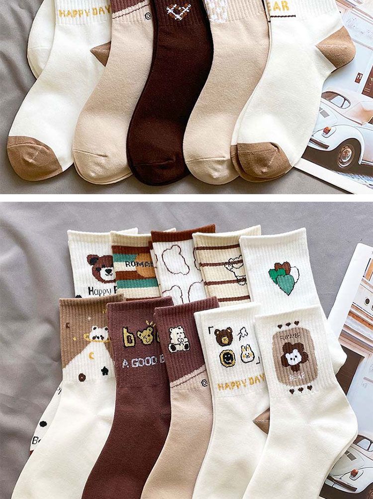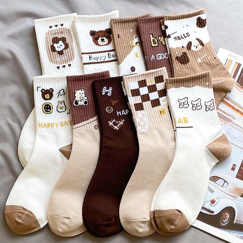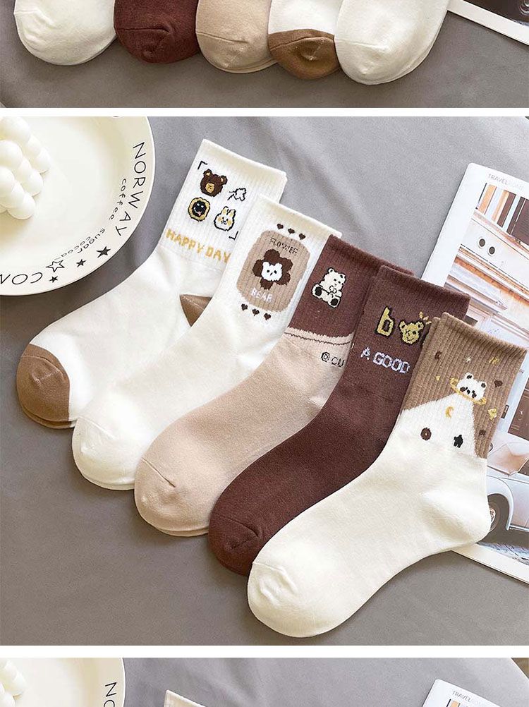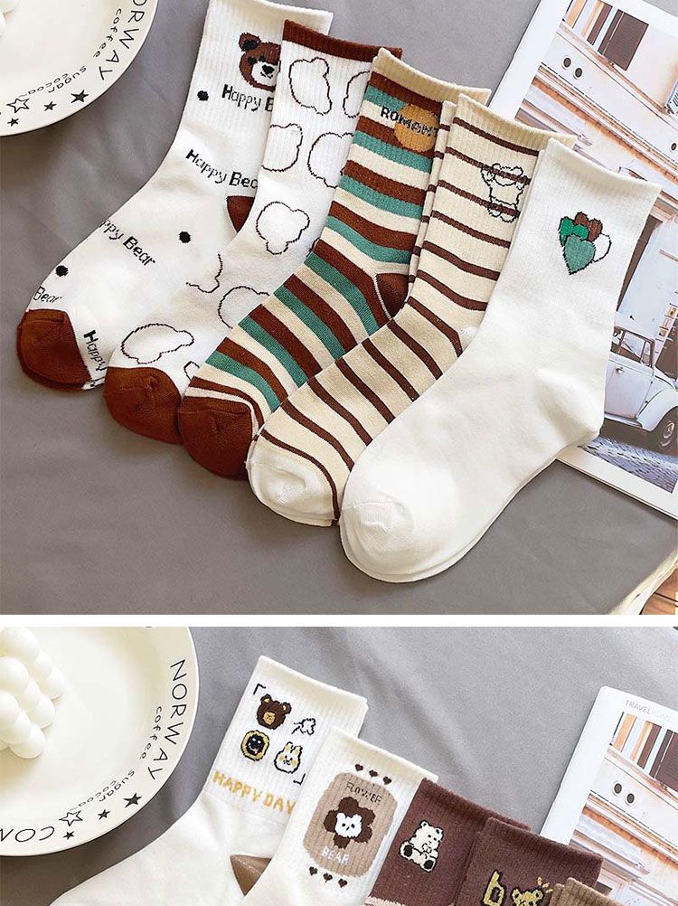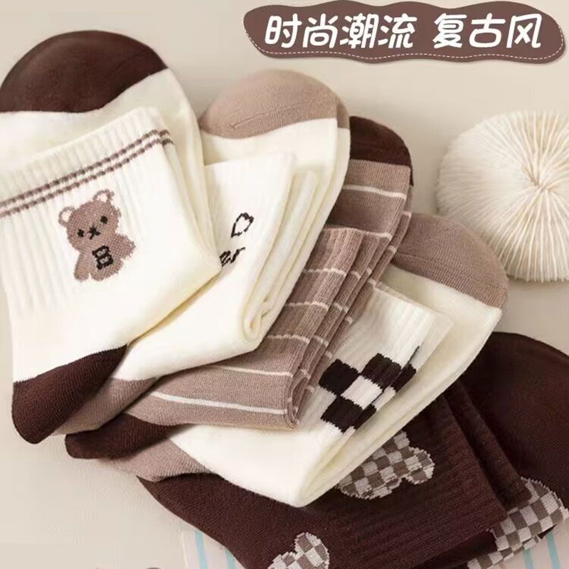 春季袜子女中筒袜深色系韩版可爱ins卡通高颜值长筒袜百搭学生棉