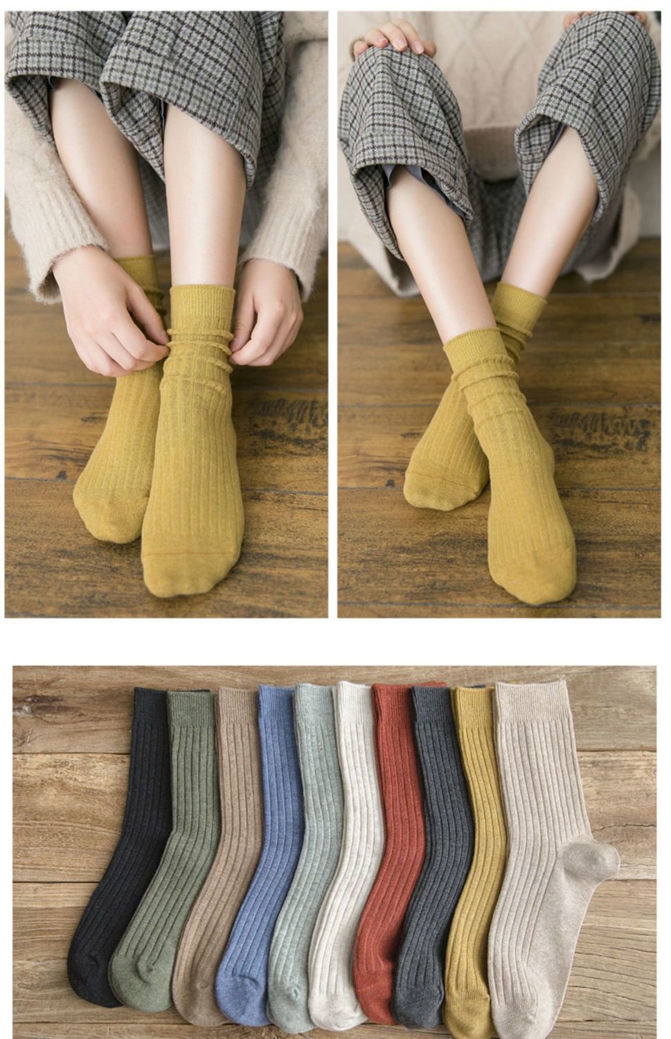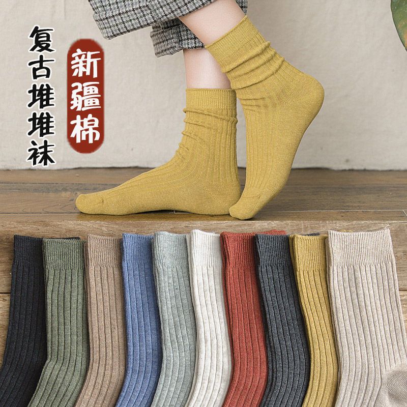 新疆棉袜子女中筒袜春秋季纯色棉袜ins百搭女长筒袜长袜女堆堆袜