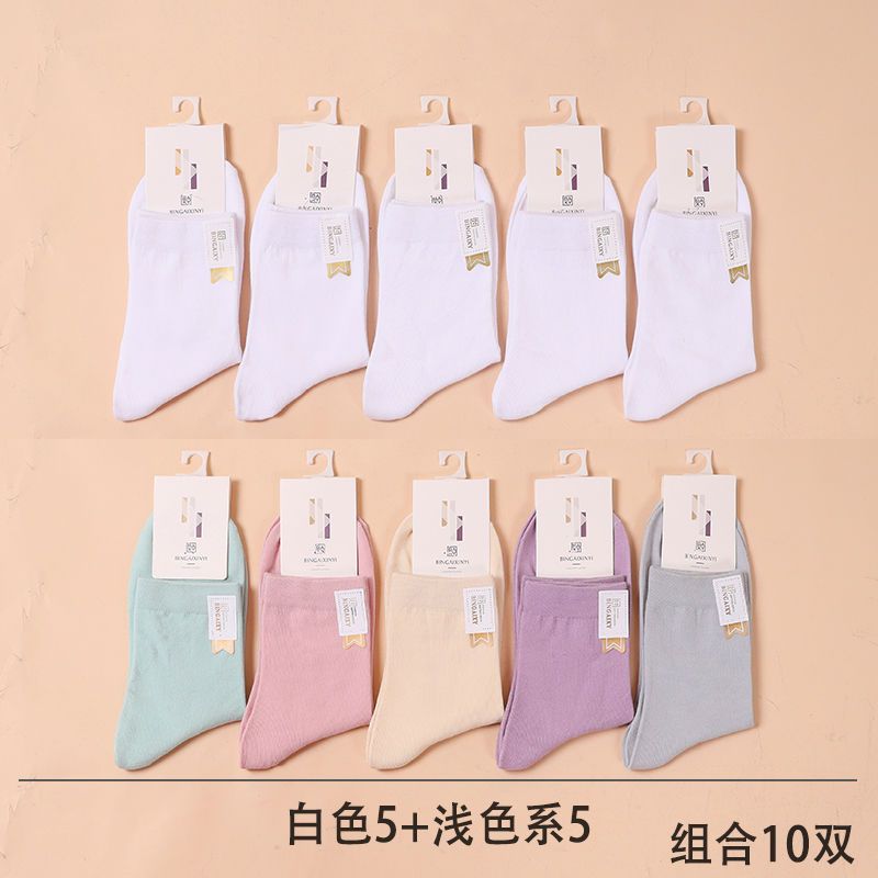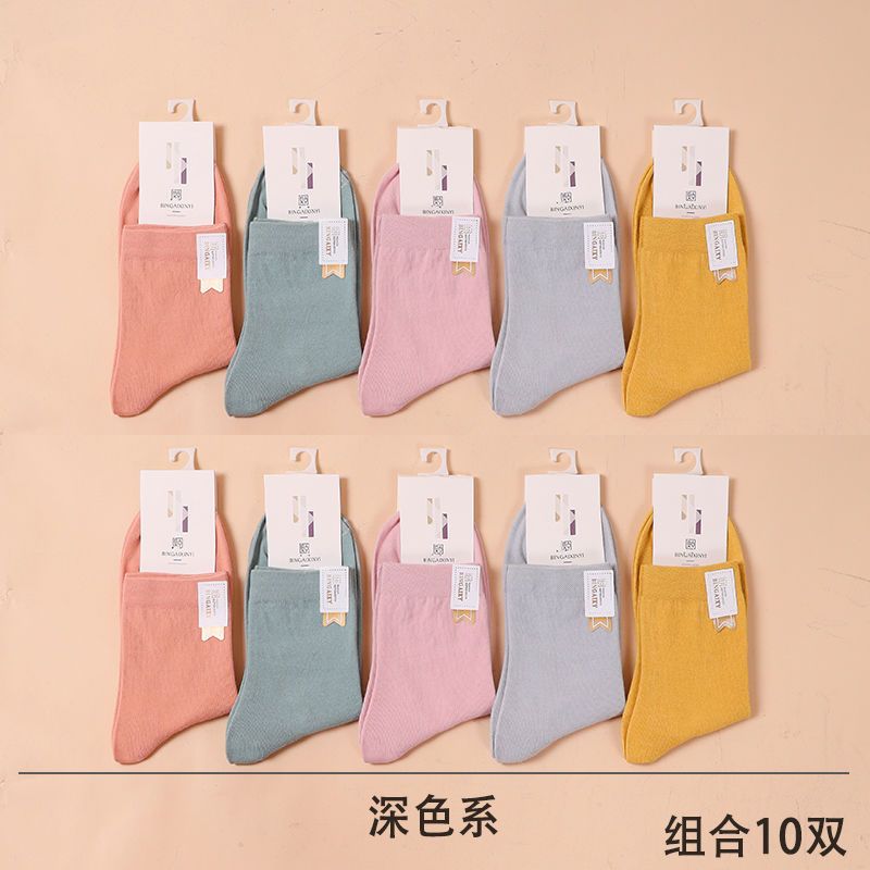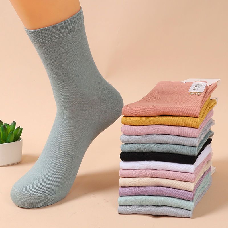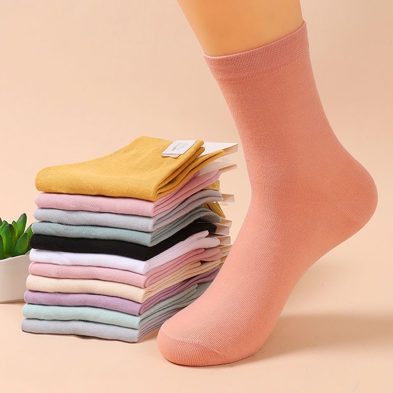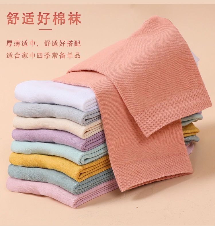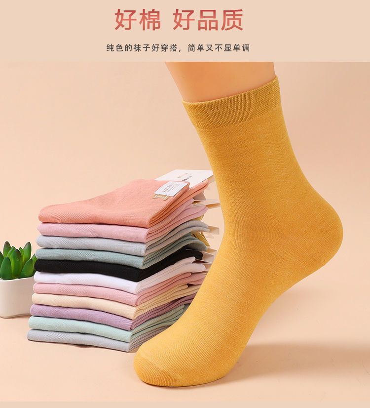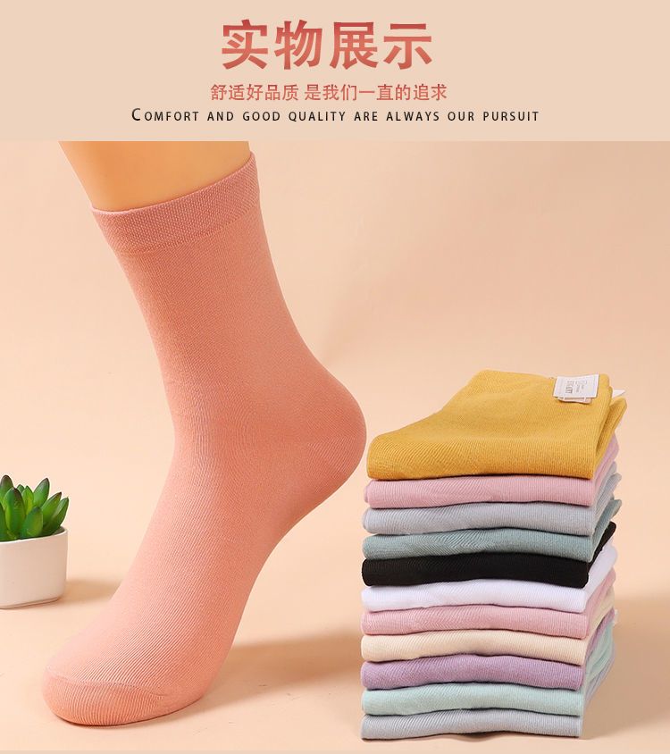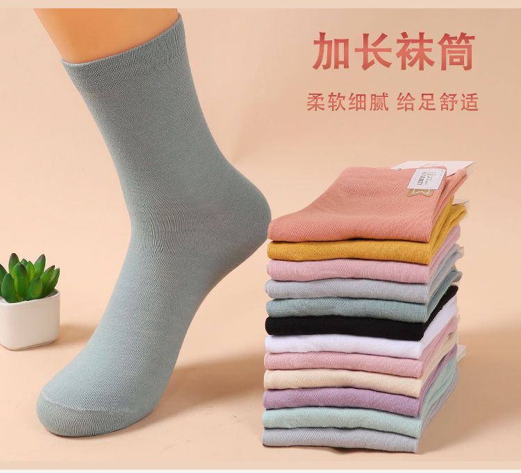 10双秋冬女士纯色中筒袜棉袜加长纯棉全棉成人袜子高筒袜长腰纯色