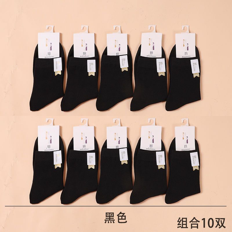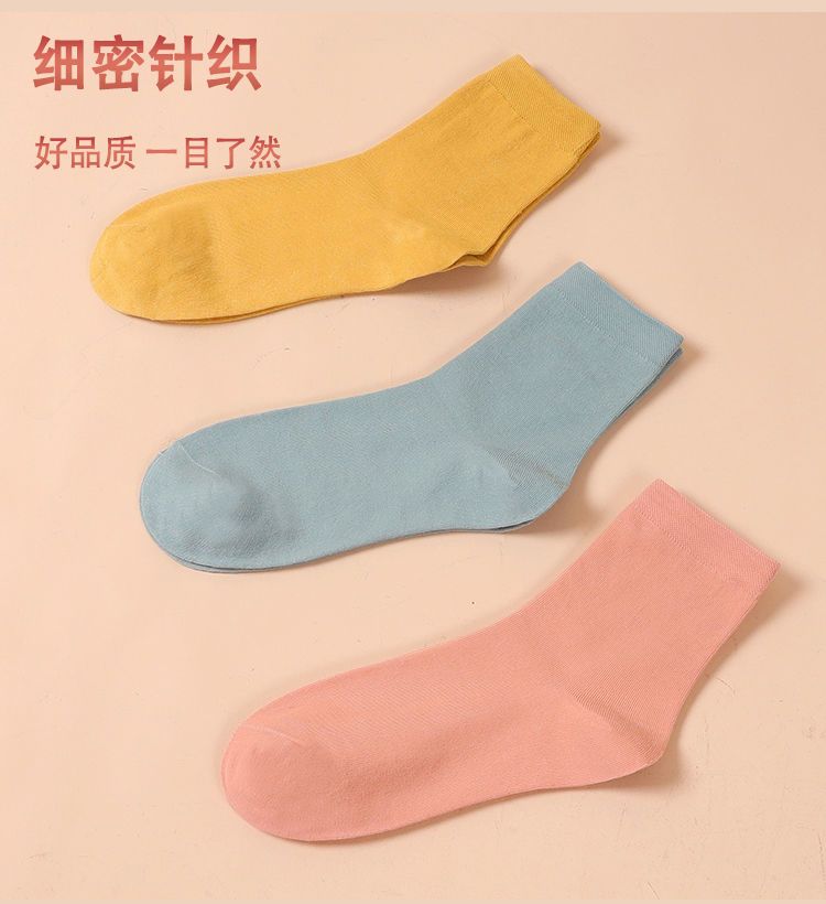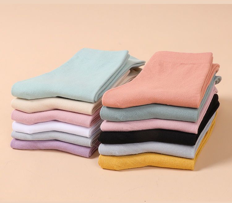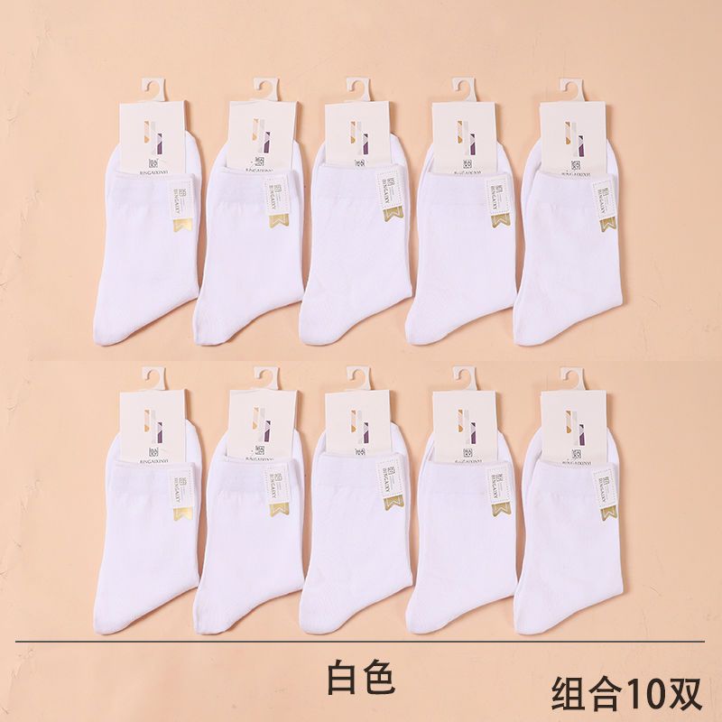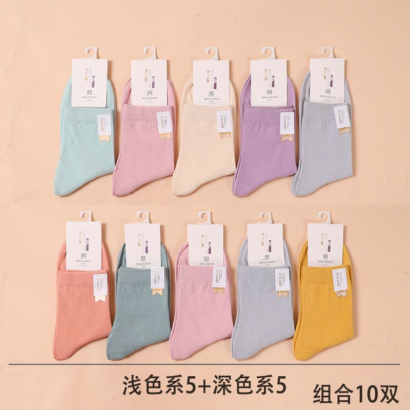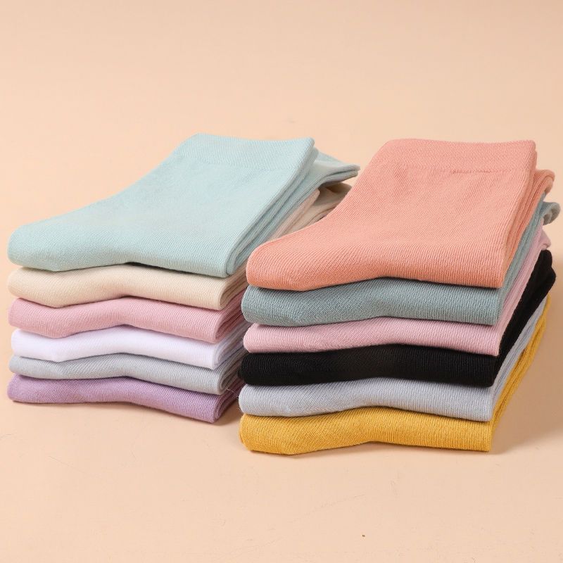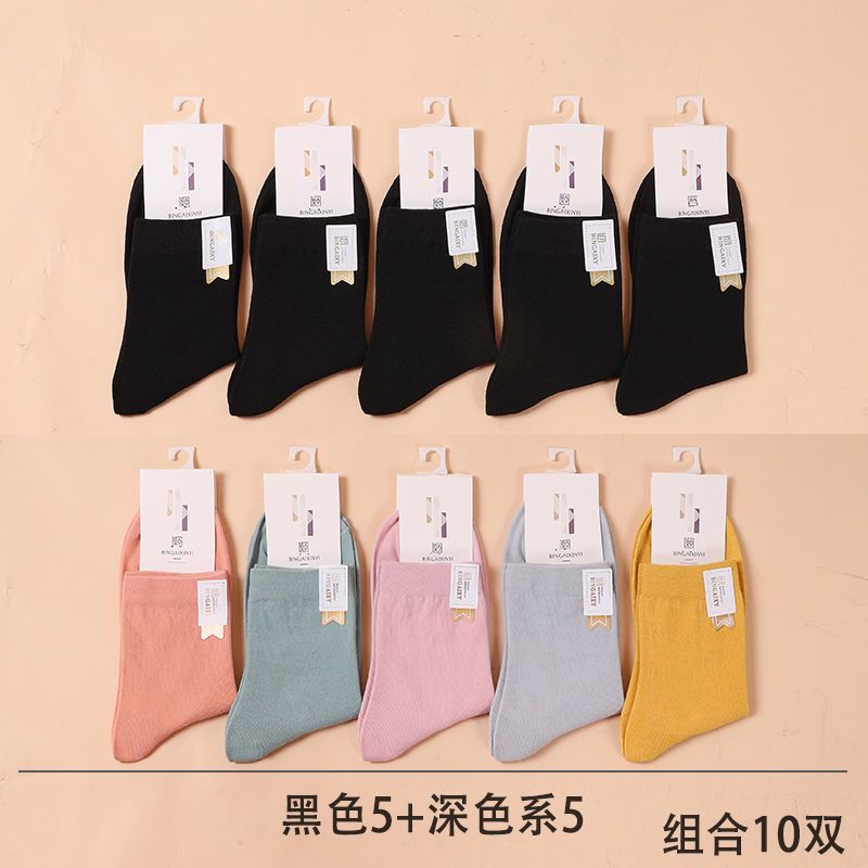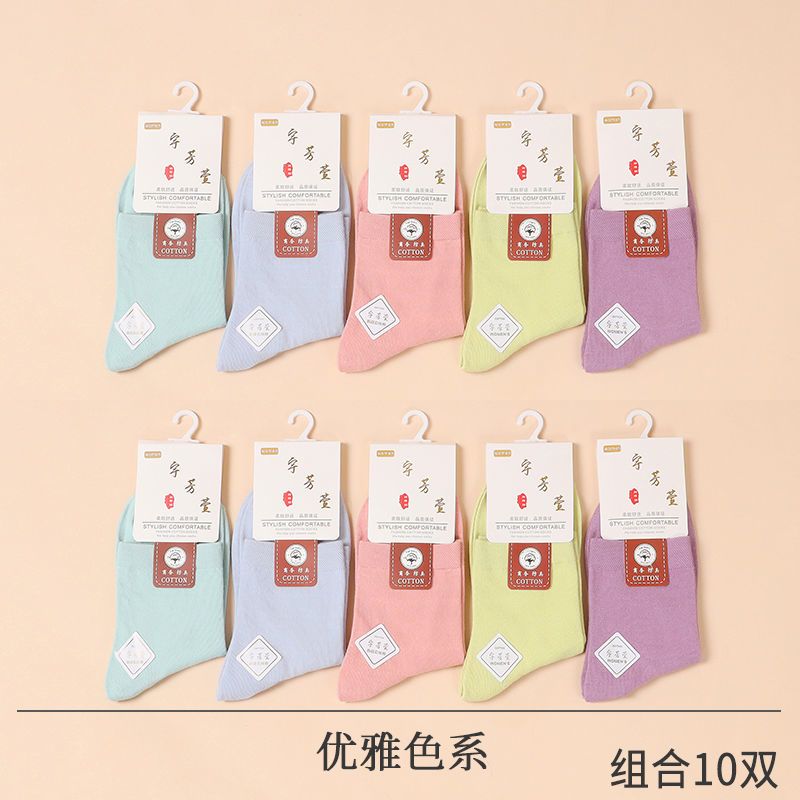 10双秋冬女士纯色中筒袜棉袜加长纯棉全棉成人袜子高筒袜长腰纯色
