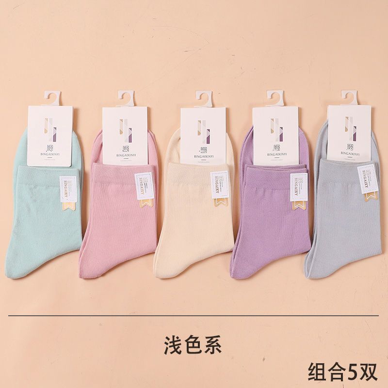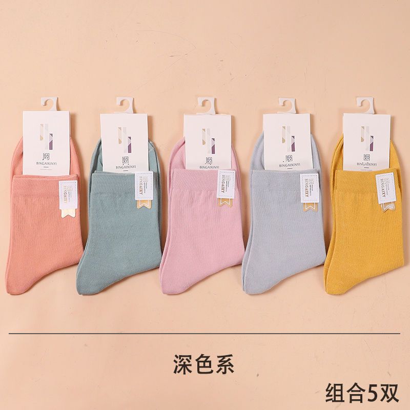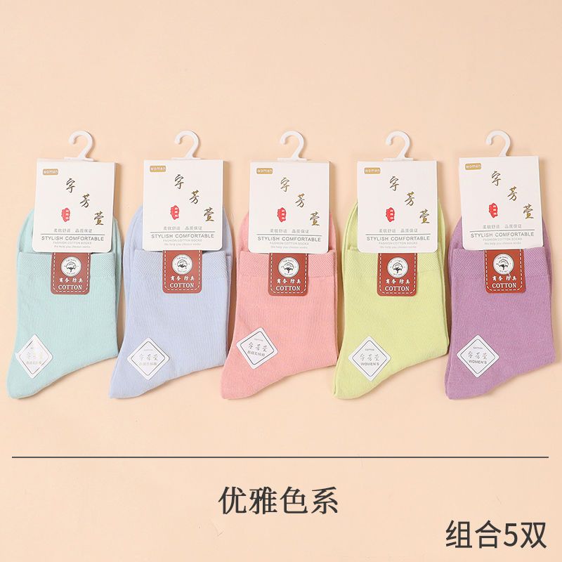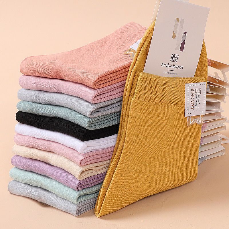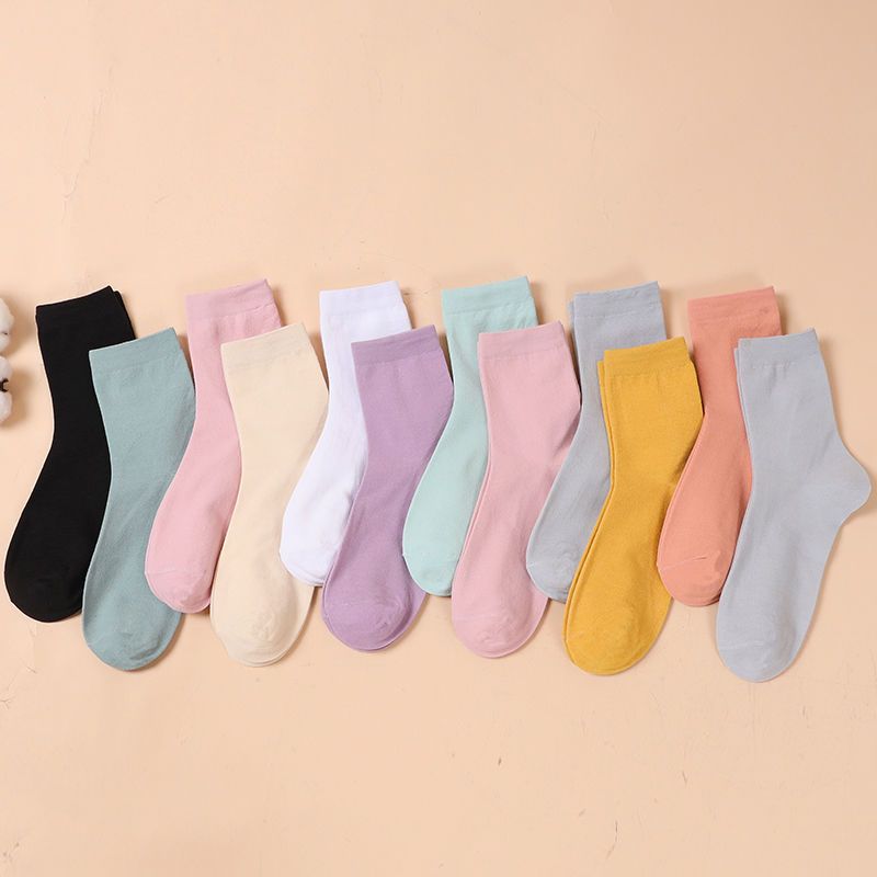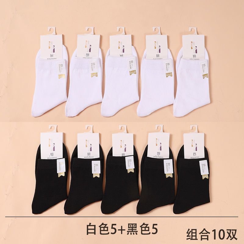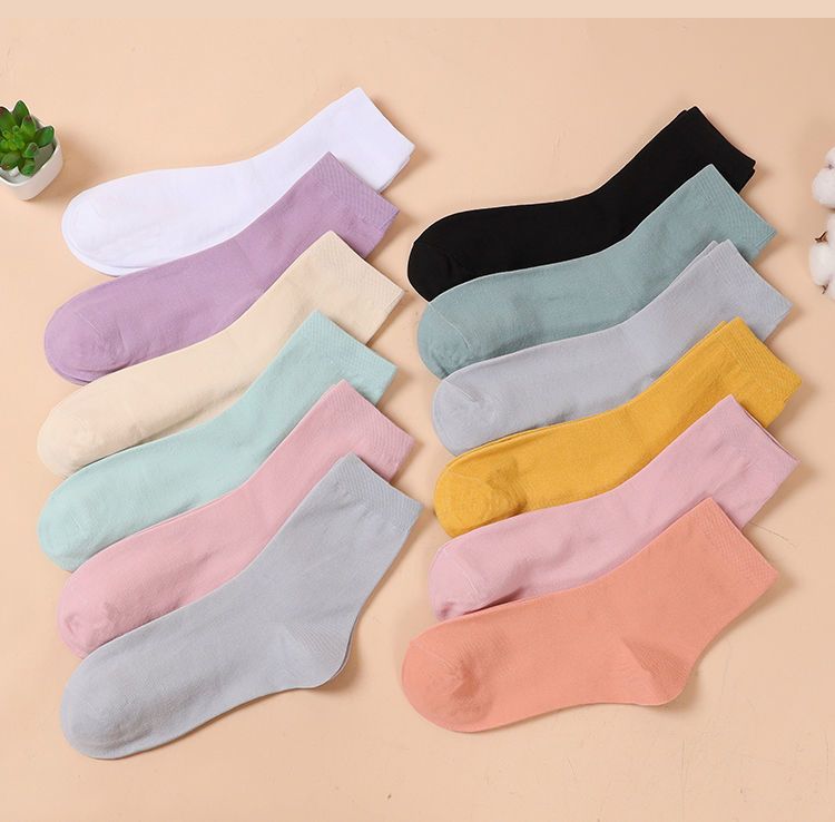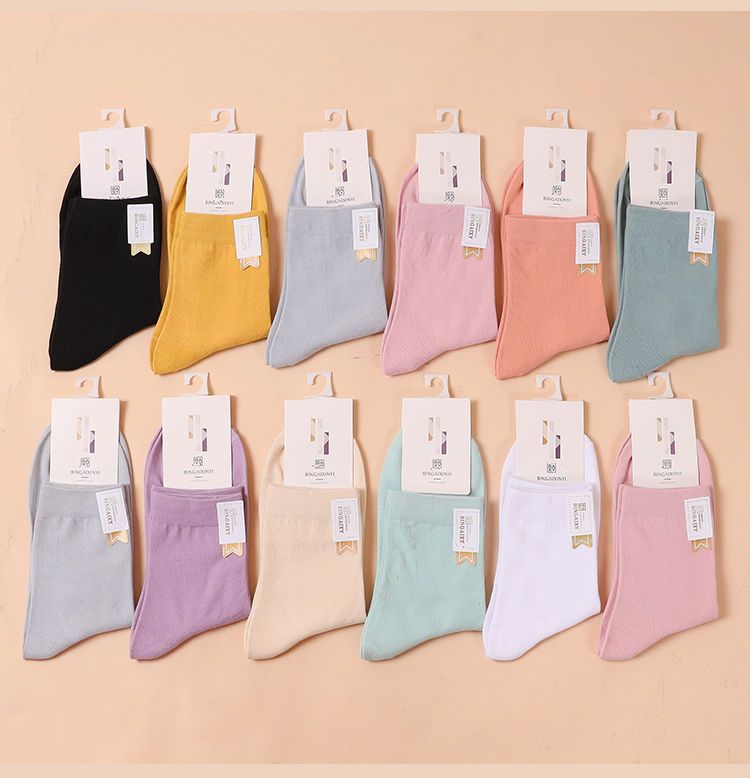 10双秋冬女士纯色中筒袜棉袜加长纯棉全棉成人袜子高筒袜长腰纯色