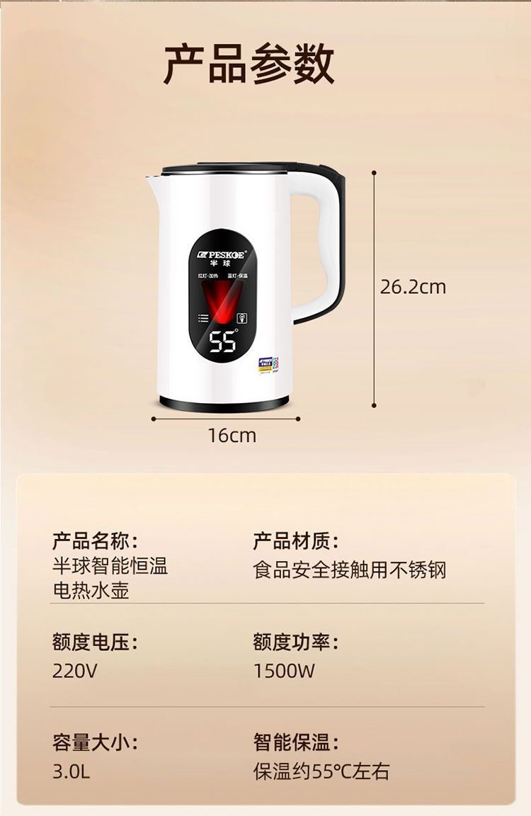 半球电水水壶家用保温一体快壶自动断电烧水壶电热煮水壶不锈钢壶