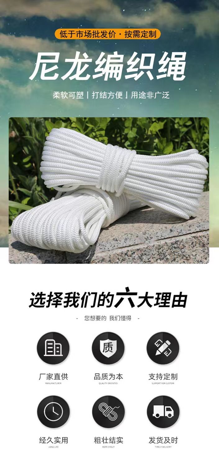 尼龙绳耐用耐磨篷布捆绑货车绳子晾衣绳白色柔软编织绳绳子大全