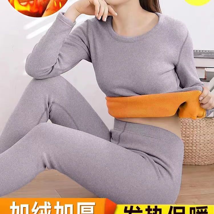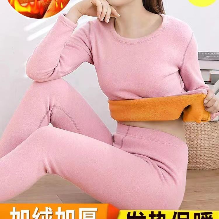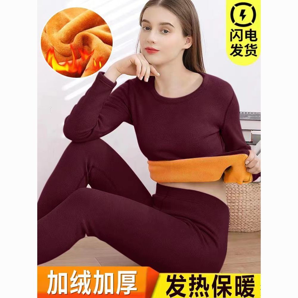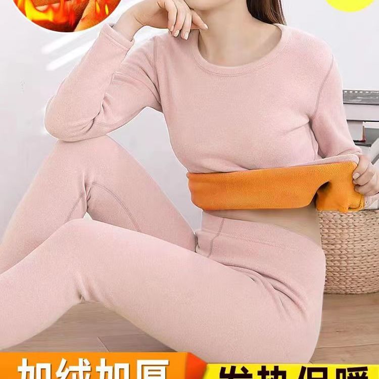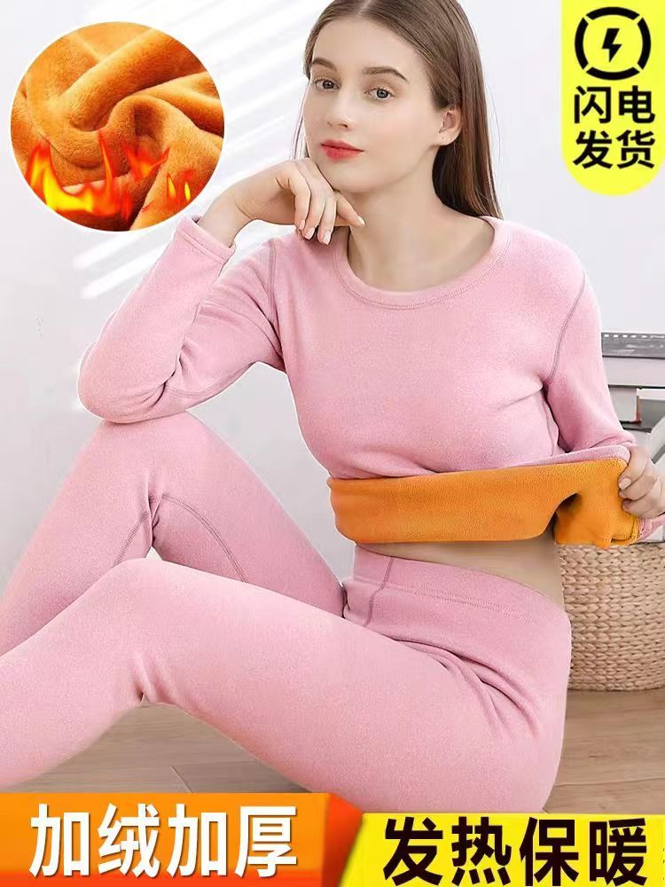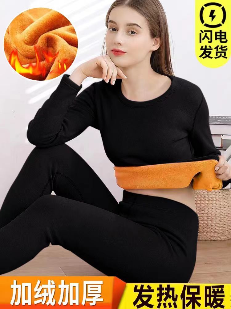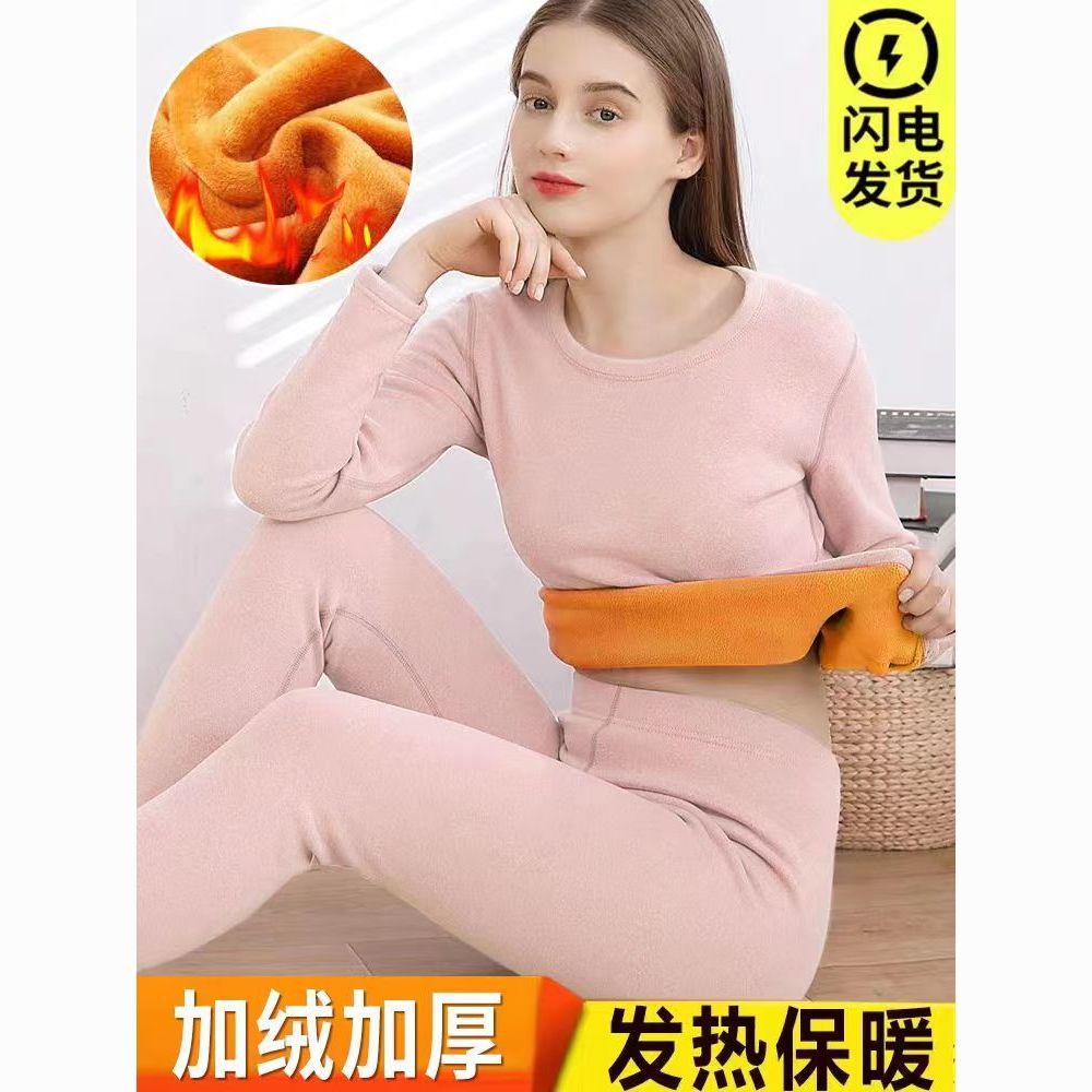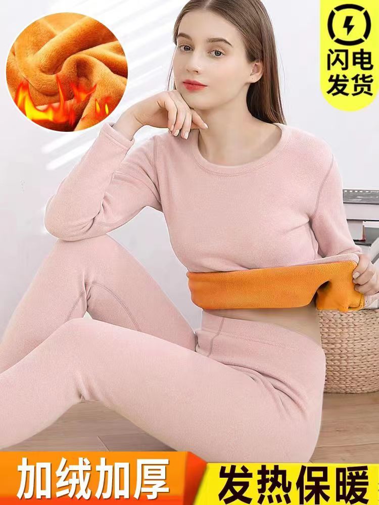超厚羊羔绒加绒加厚德自发热保暖内衣女大码套装冬季一体绒厚款