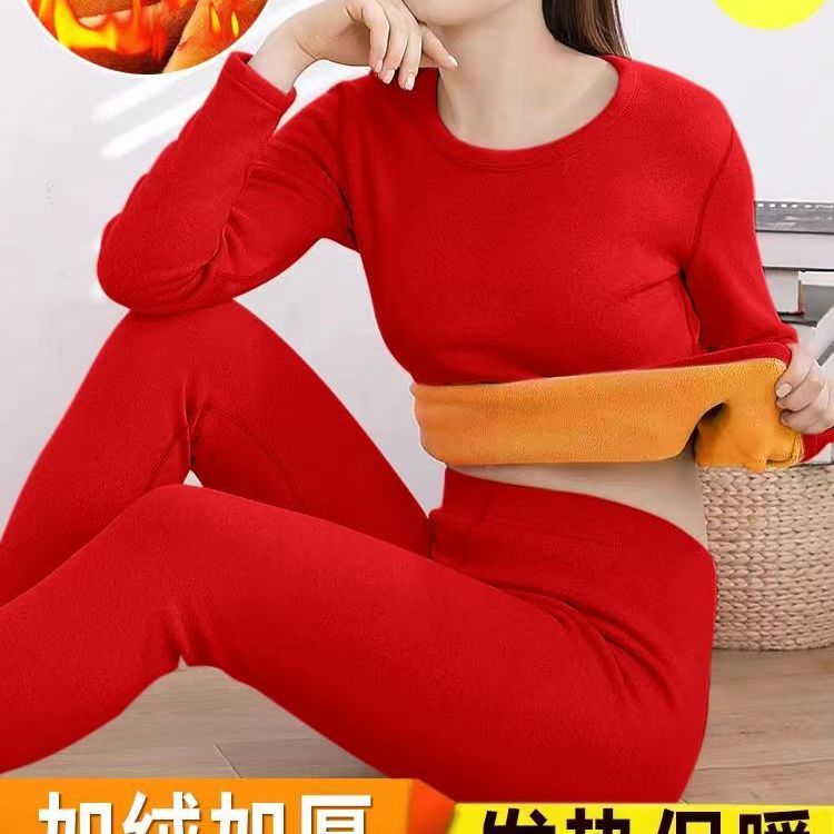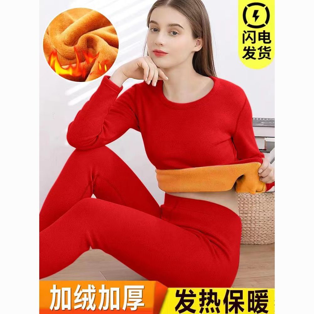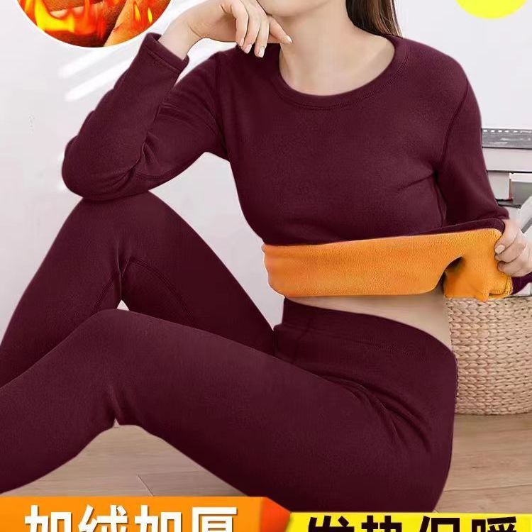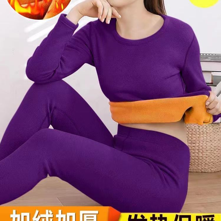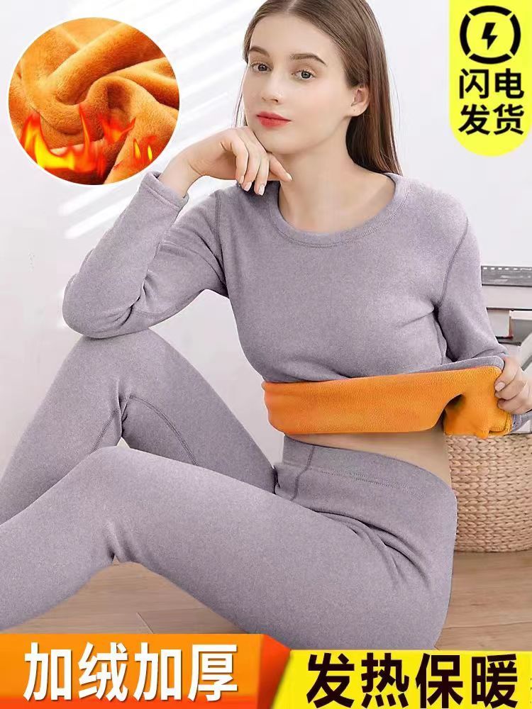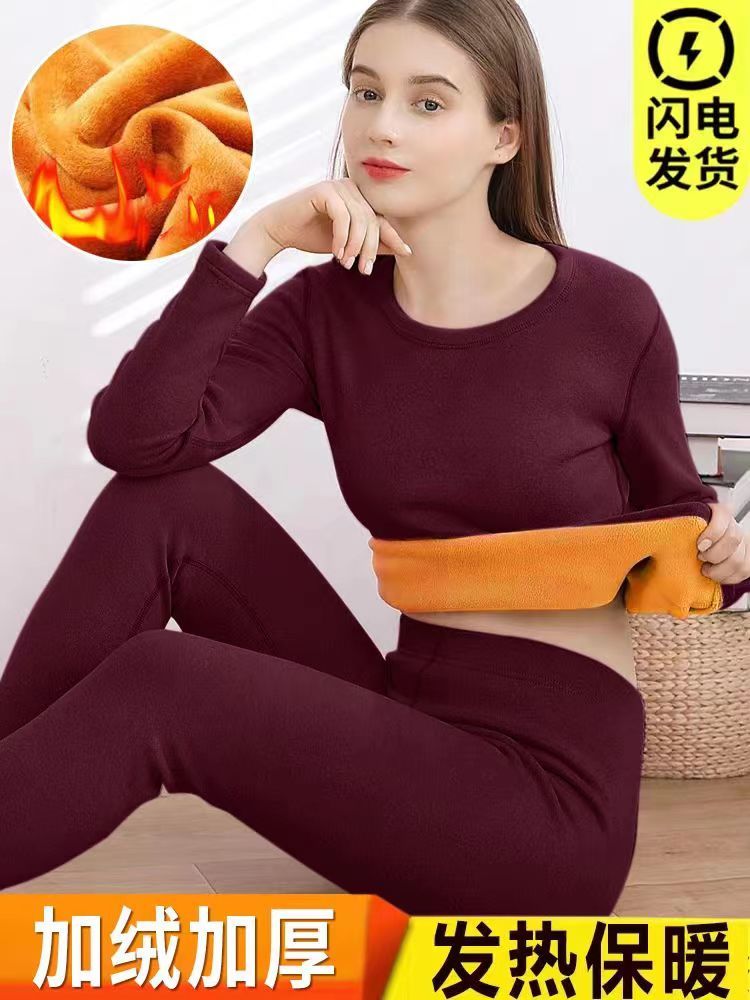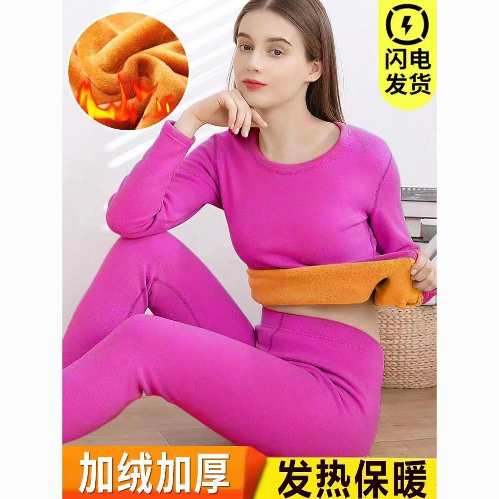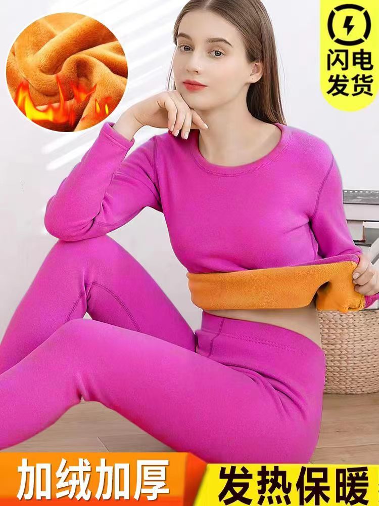 超厚羊羔绒加绒加厚德自发热保暖内衣女大码套装冬季一体绒厚款