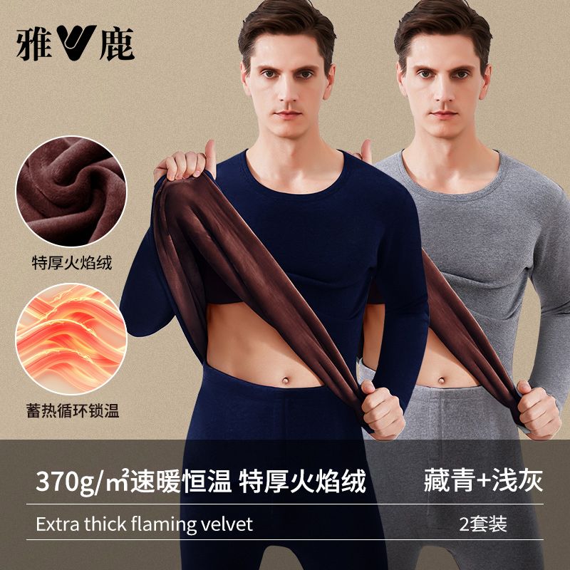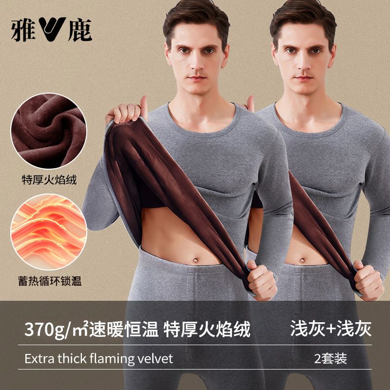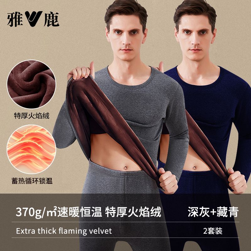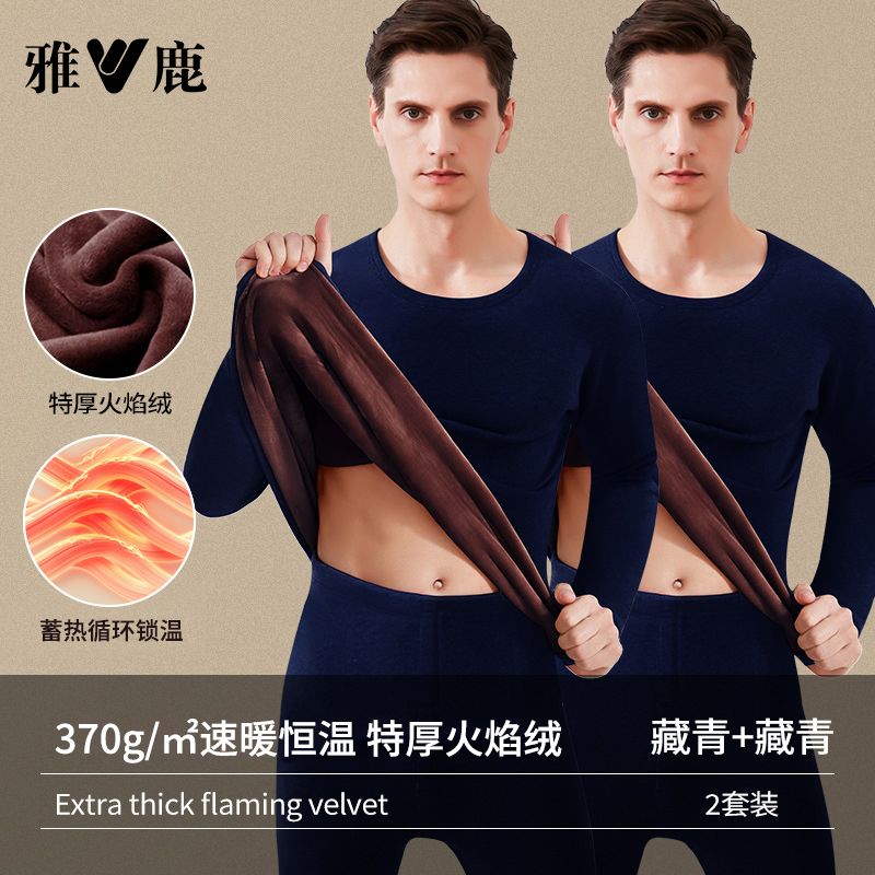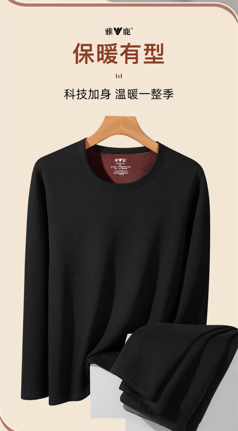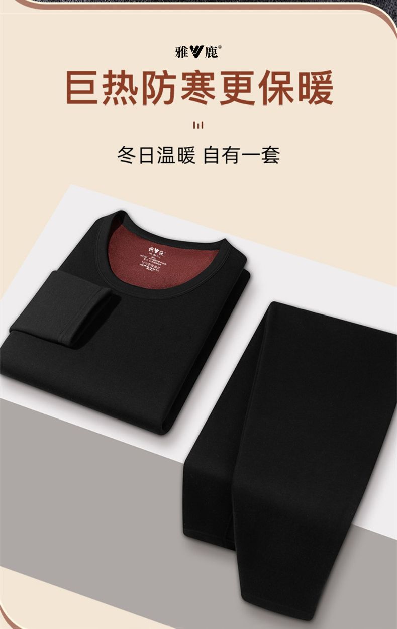 雅鹿保暖内衣男士加绒加厚套装秋衣秋裤冬天打底棉毛衫保暖衣男
