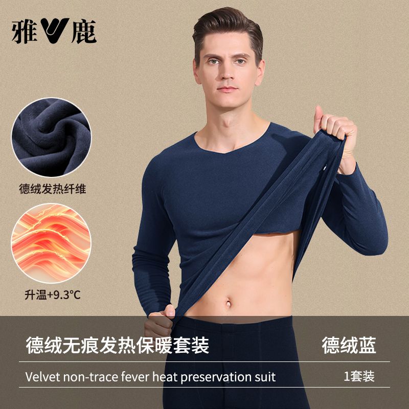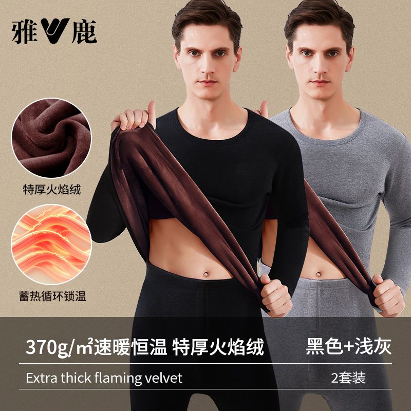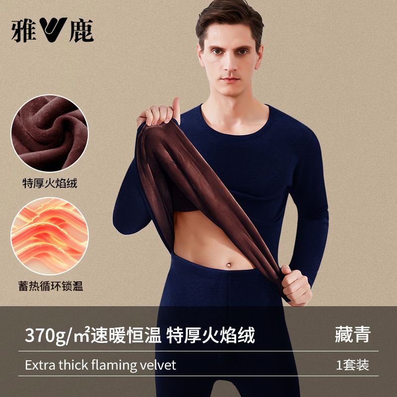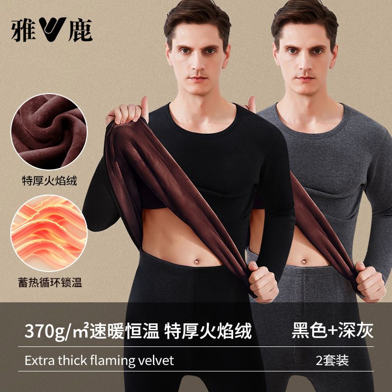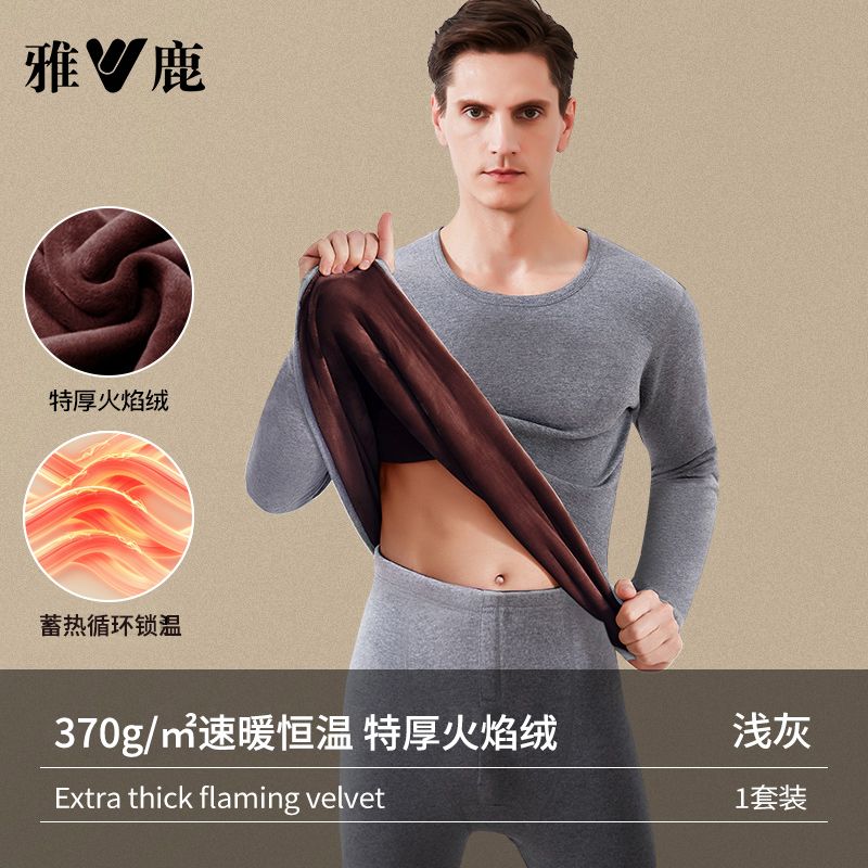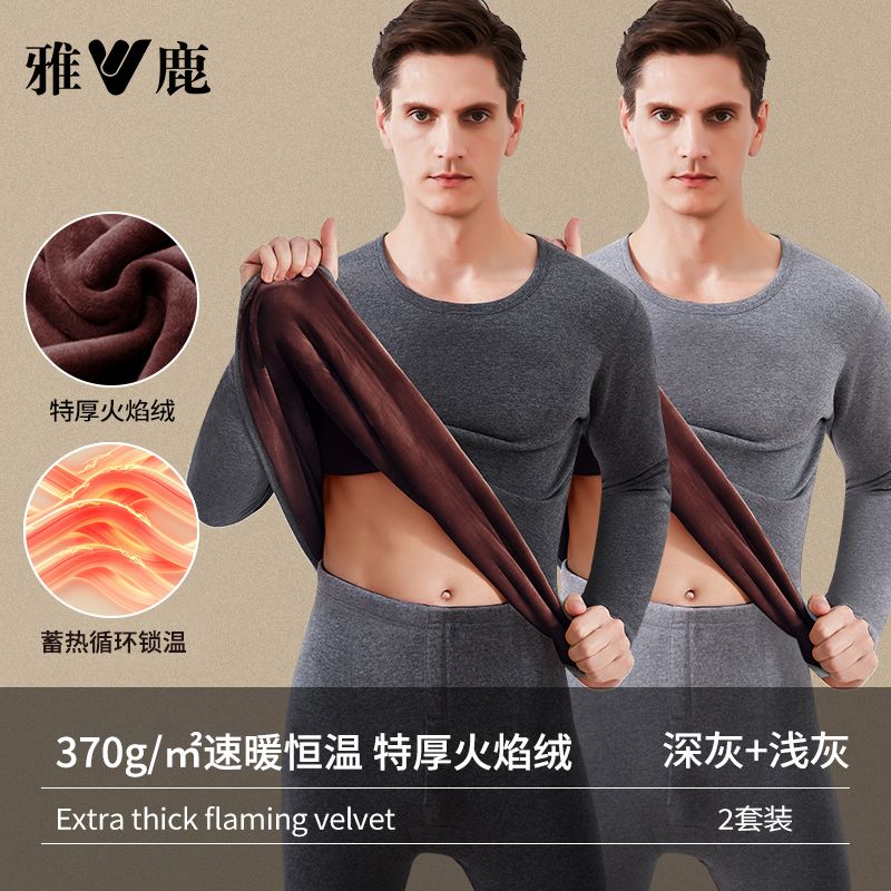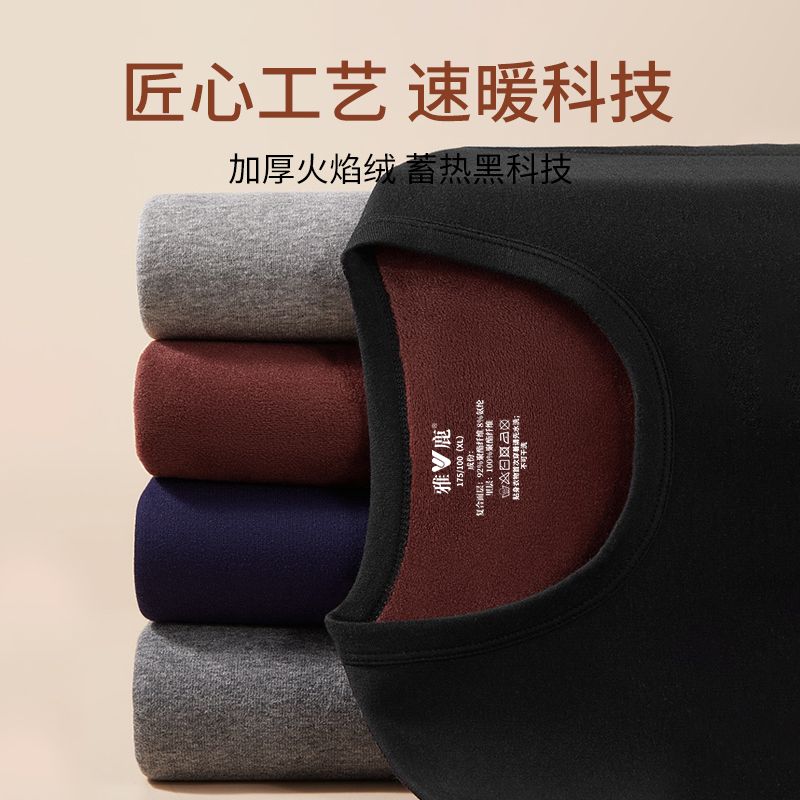 雅鹿保暖内衣男士加绒加厚套装秋衣秋裤冬天打底棉毛衫保暖衣男